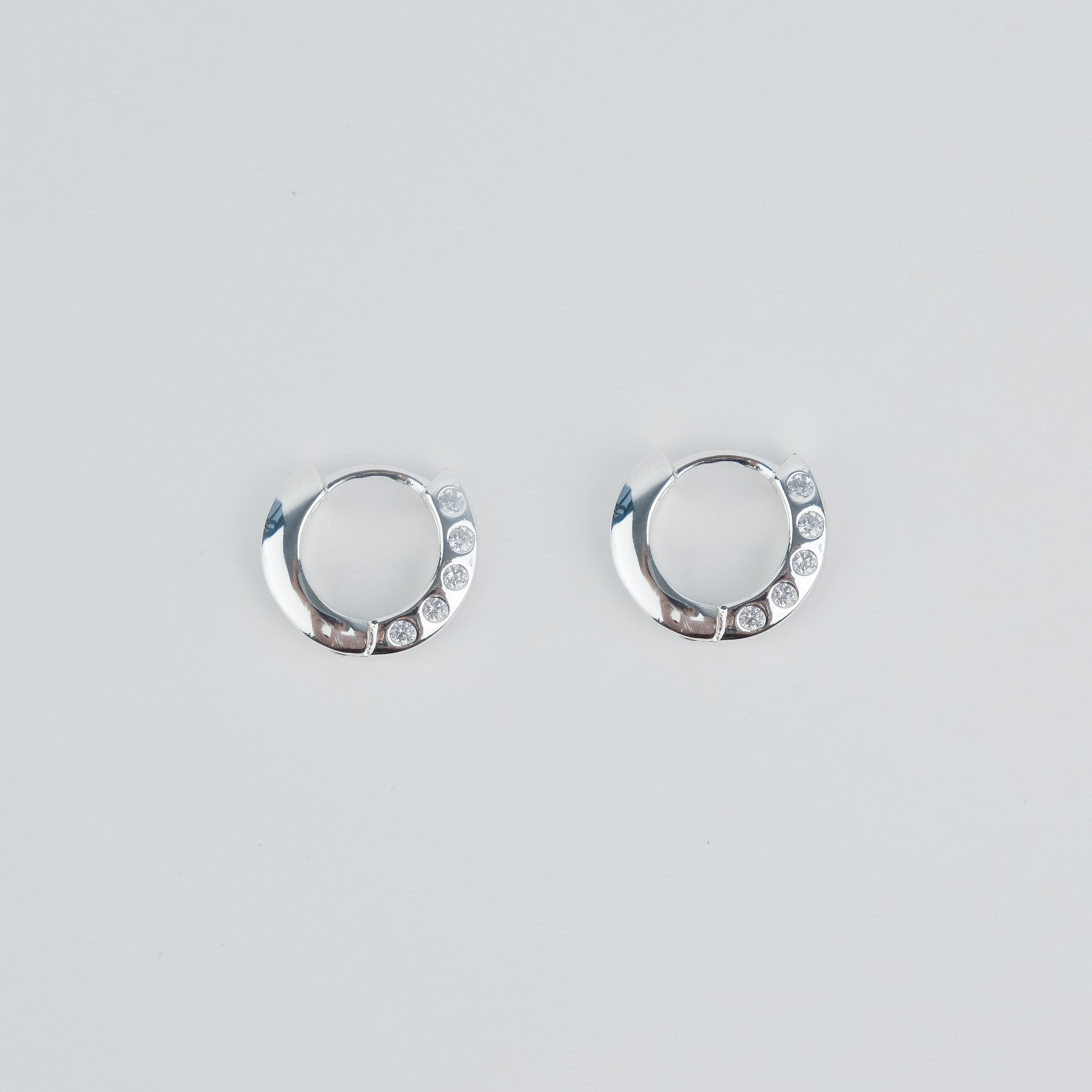 Silver Plated huggies with CZ side detailSize:16mm x 3.5mm