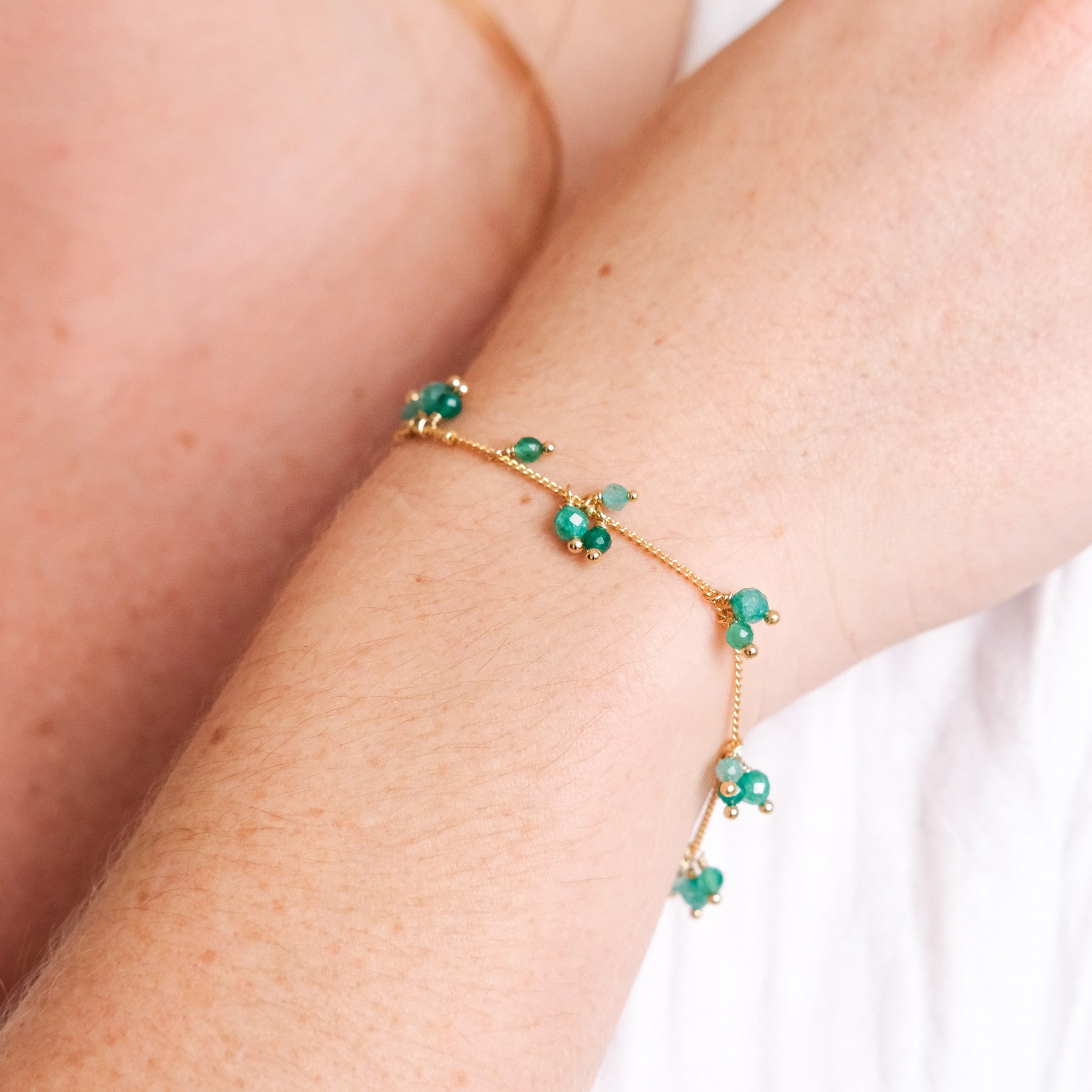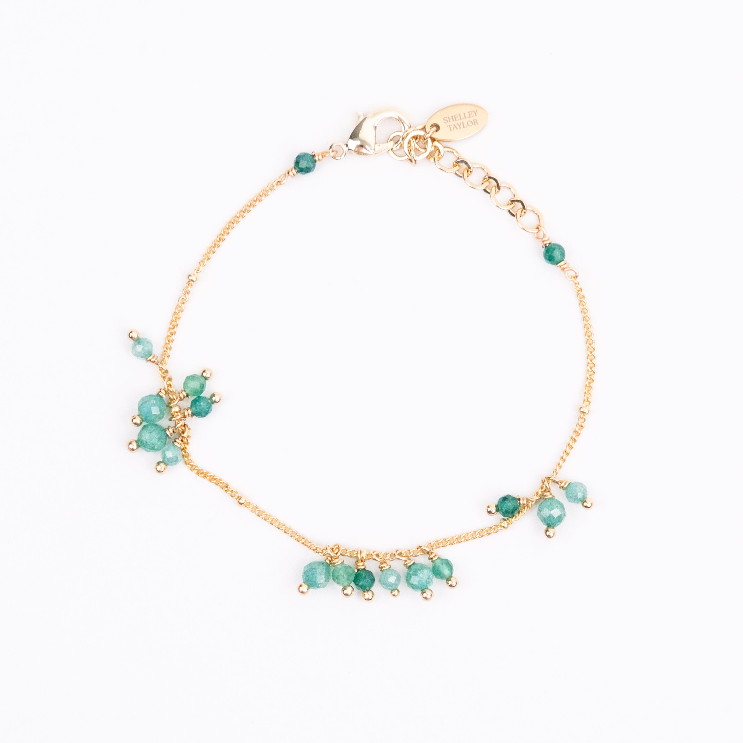 Clusters of different shades of Green Jade on a fine Sterling Silver Gold Plated Bracelet