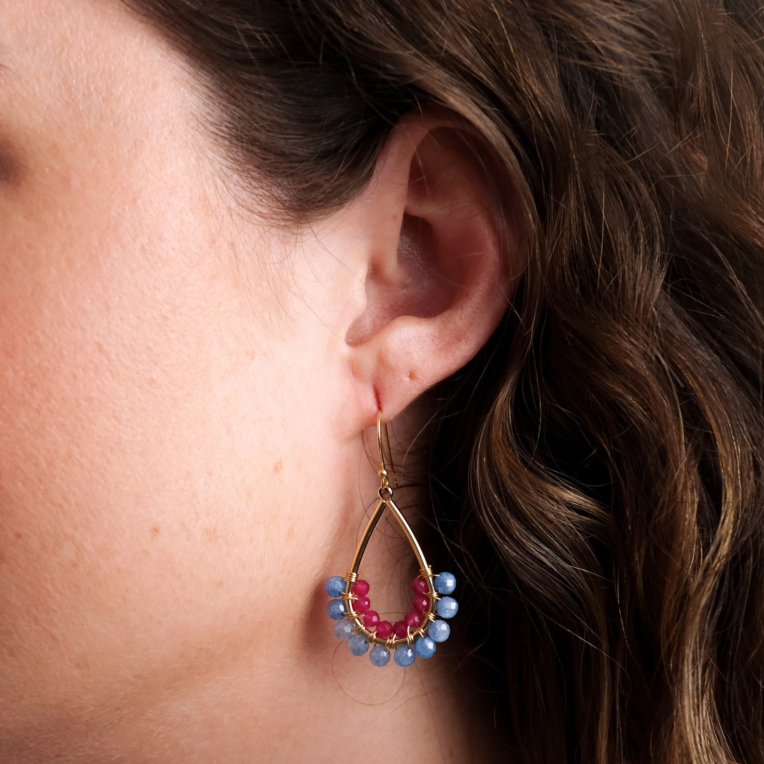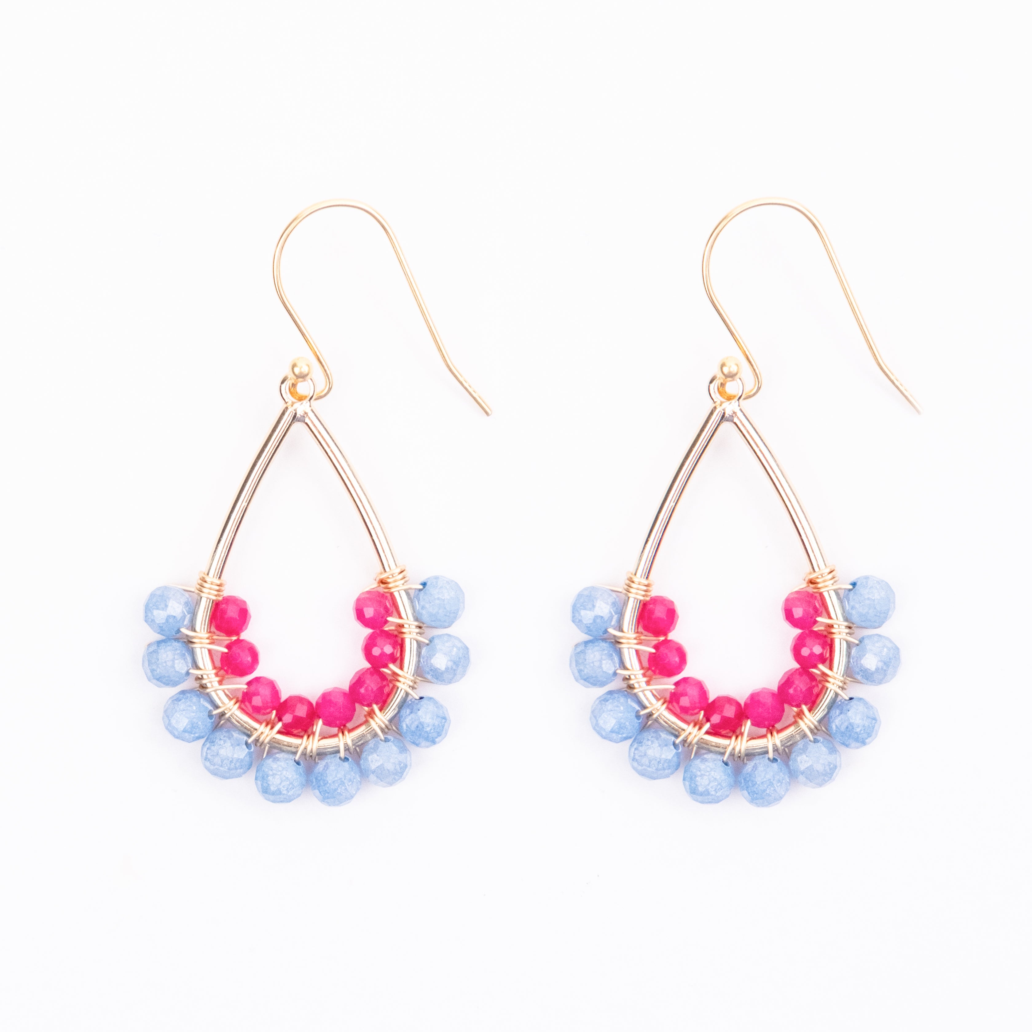 Chunky Cornflower Jade and Fuchsia Jade Drop Earrings