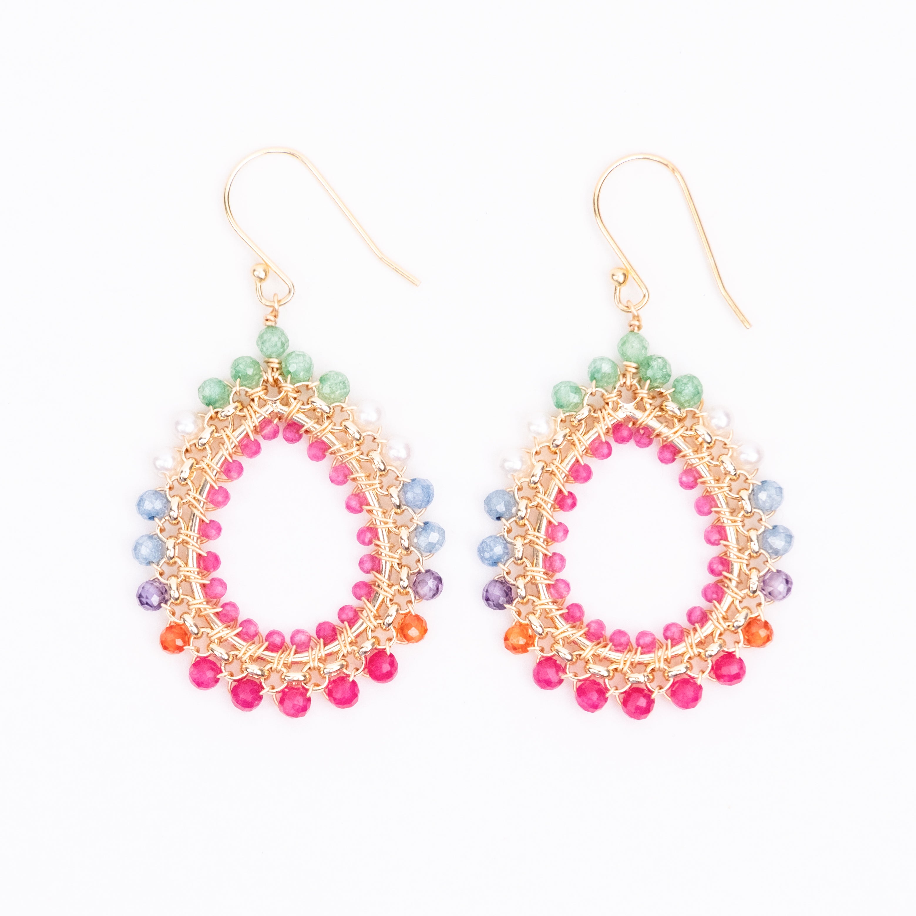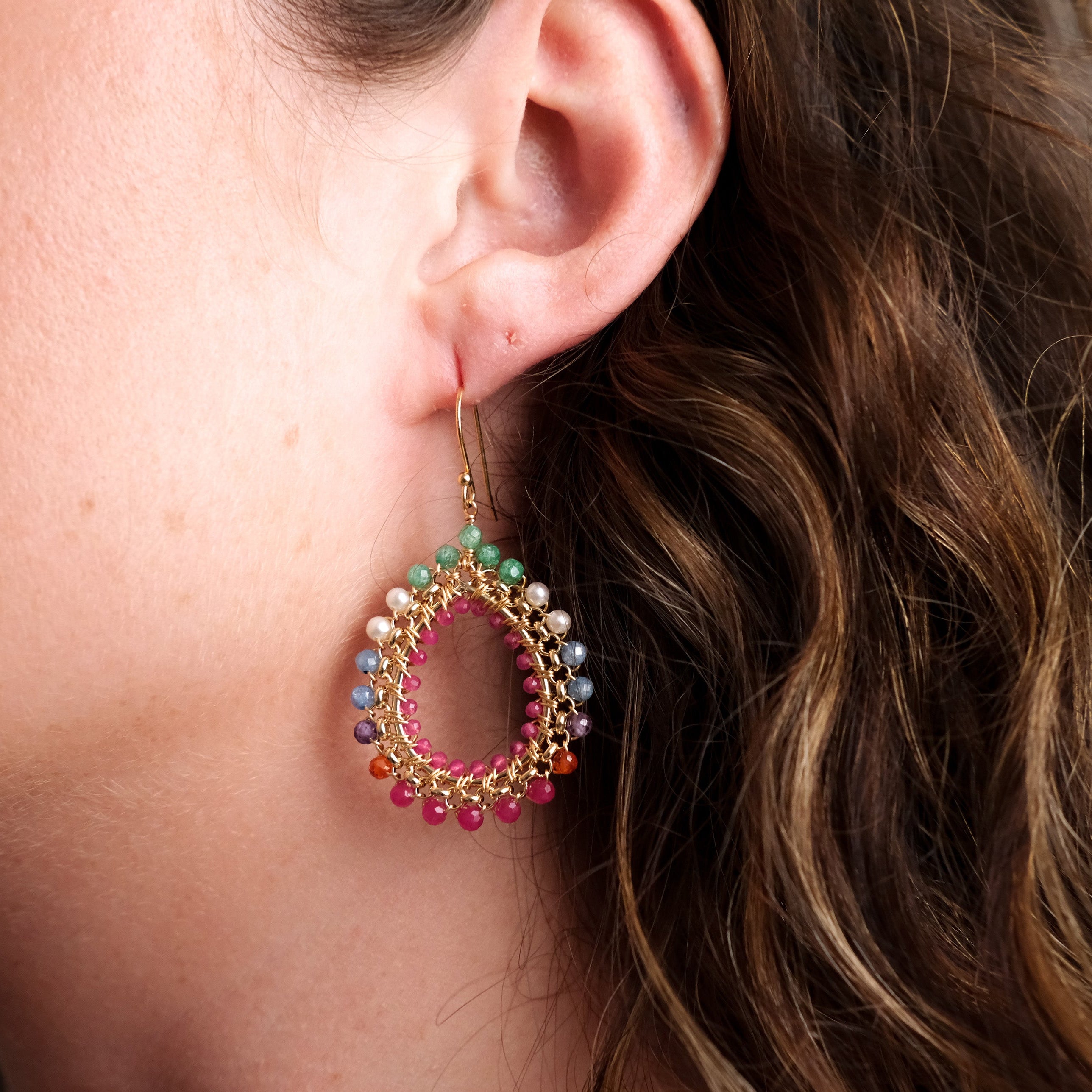 This is the perfect Resort earring. Handmade using a stunning mixture of Garnets, pink Tourmaline, Freshwater pearls, Cornflower Jade, Carnelian and Amethysts