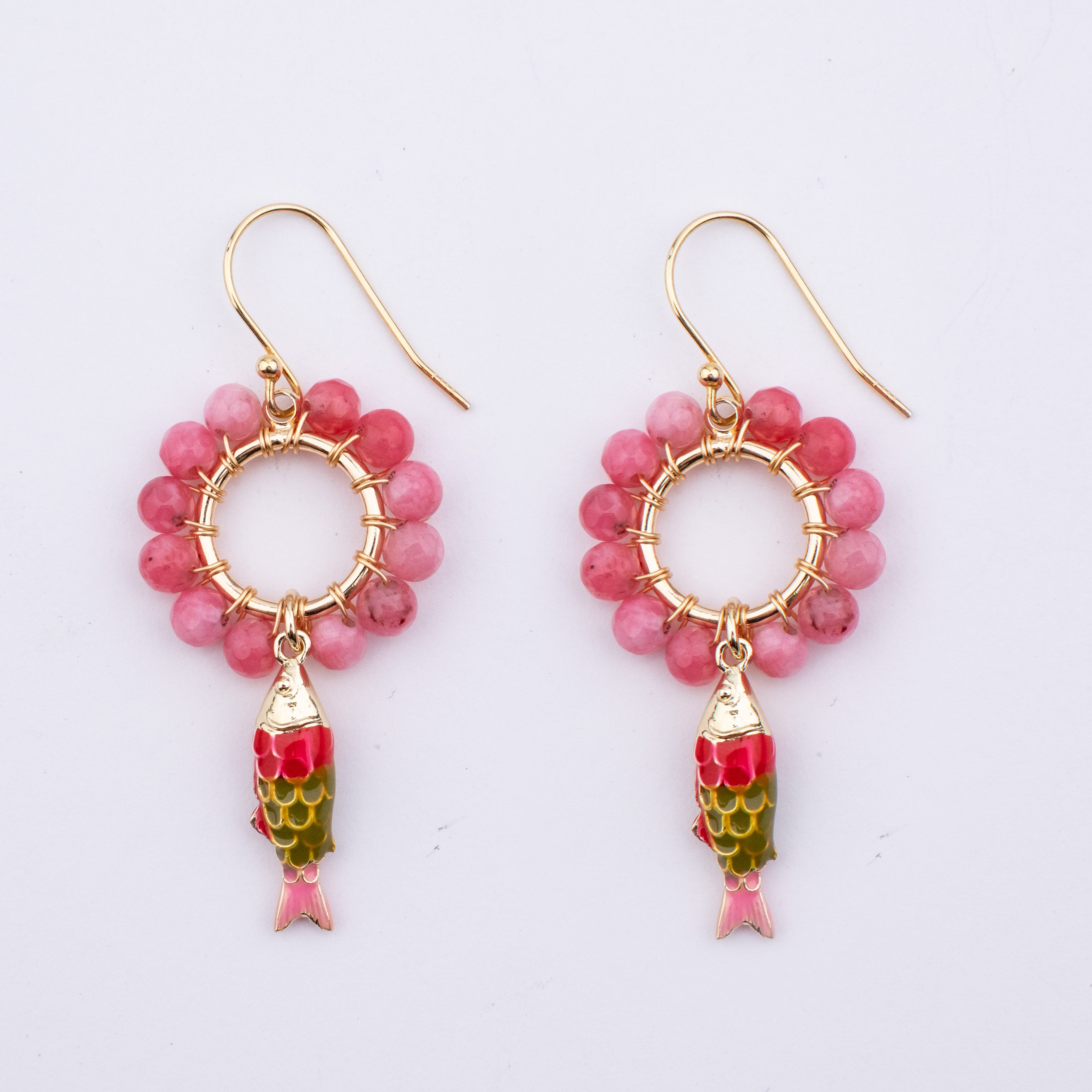 Lime Green Agate Hand Woven with a Multi Colour Enamel Fish