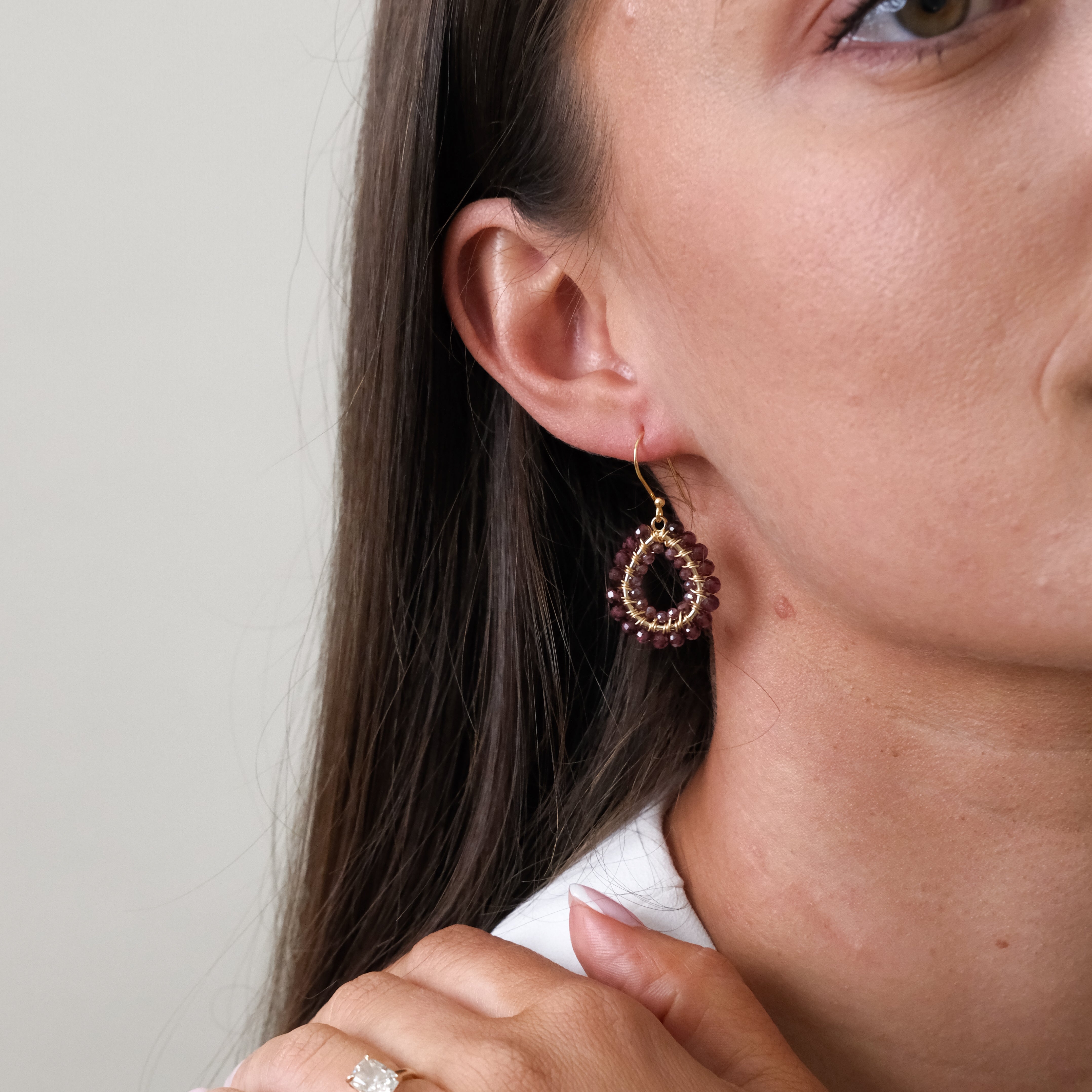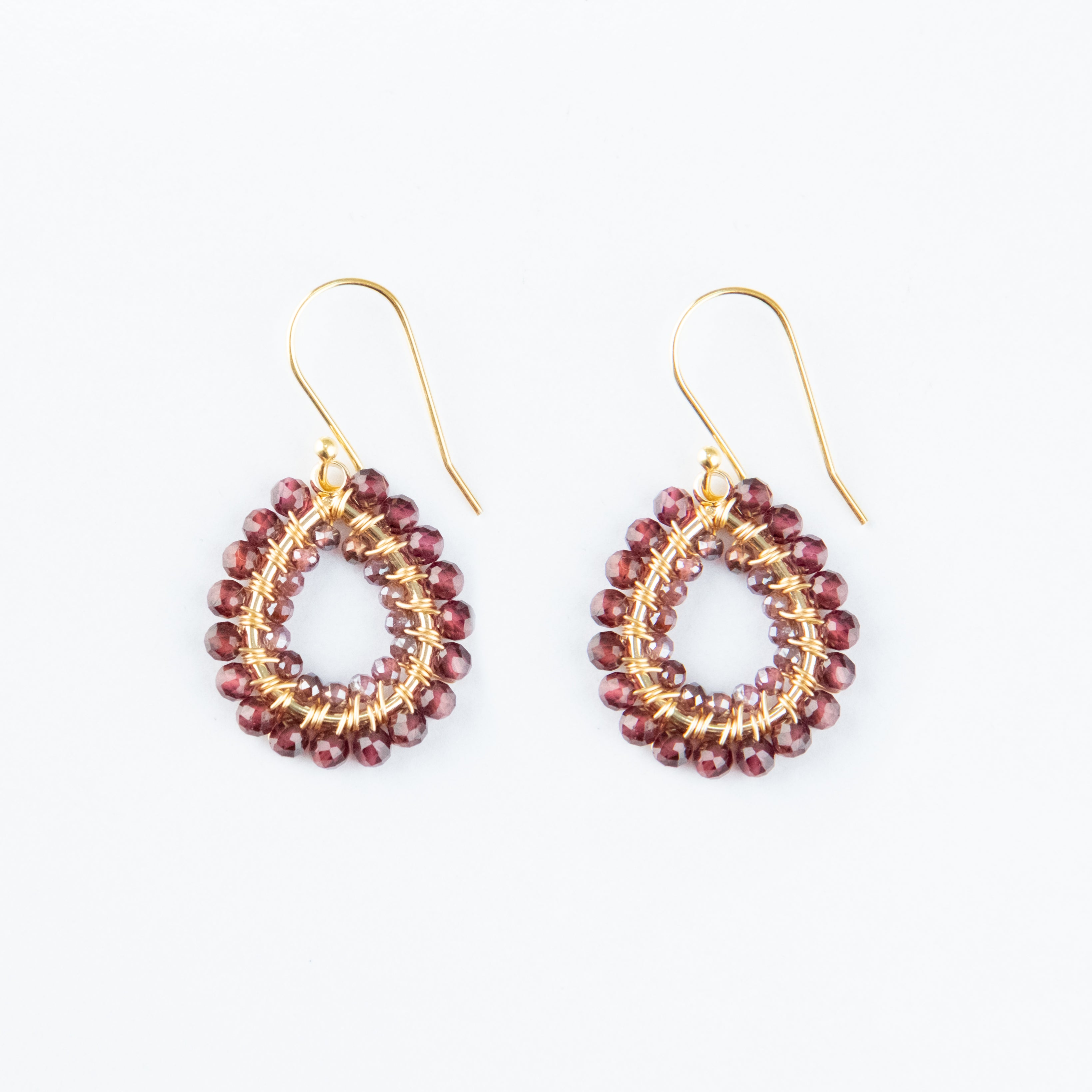 Brass based and gold plated hoops wired with a Double layer of Faceted Garnets