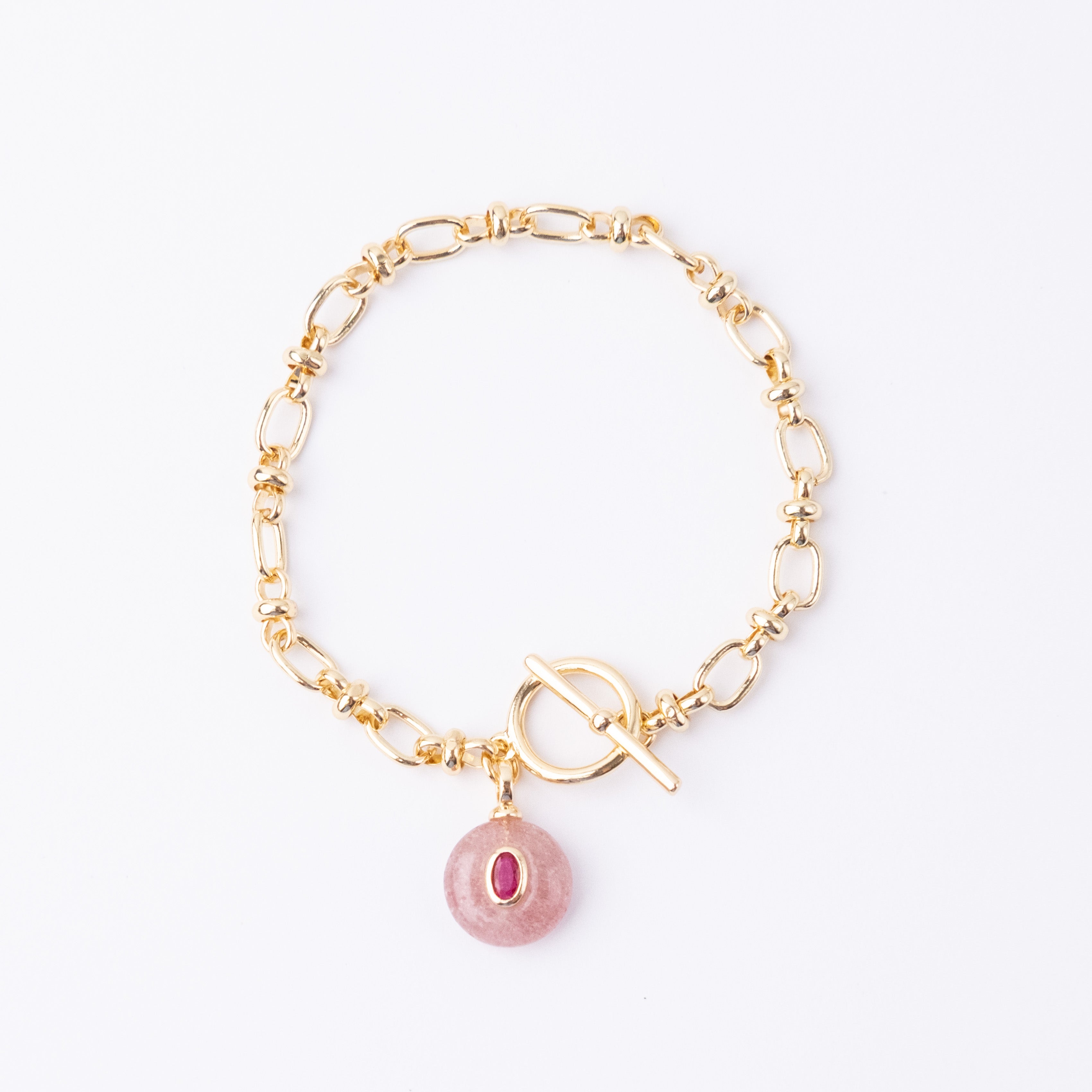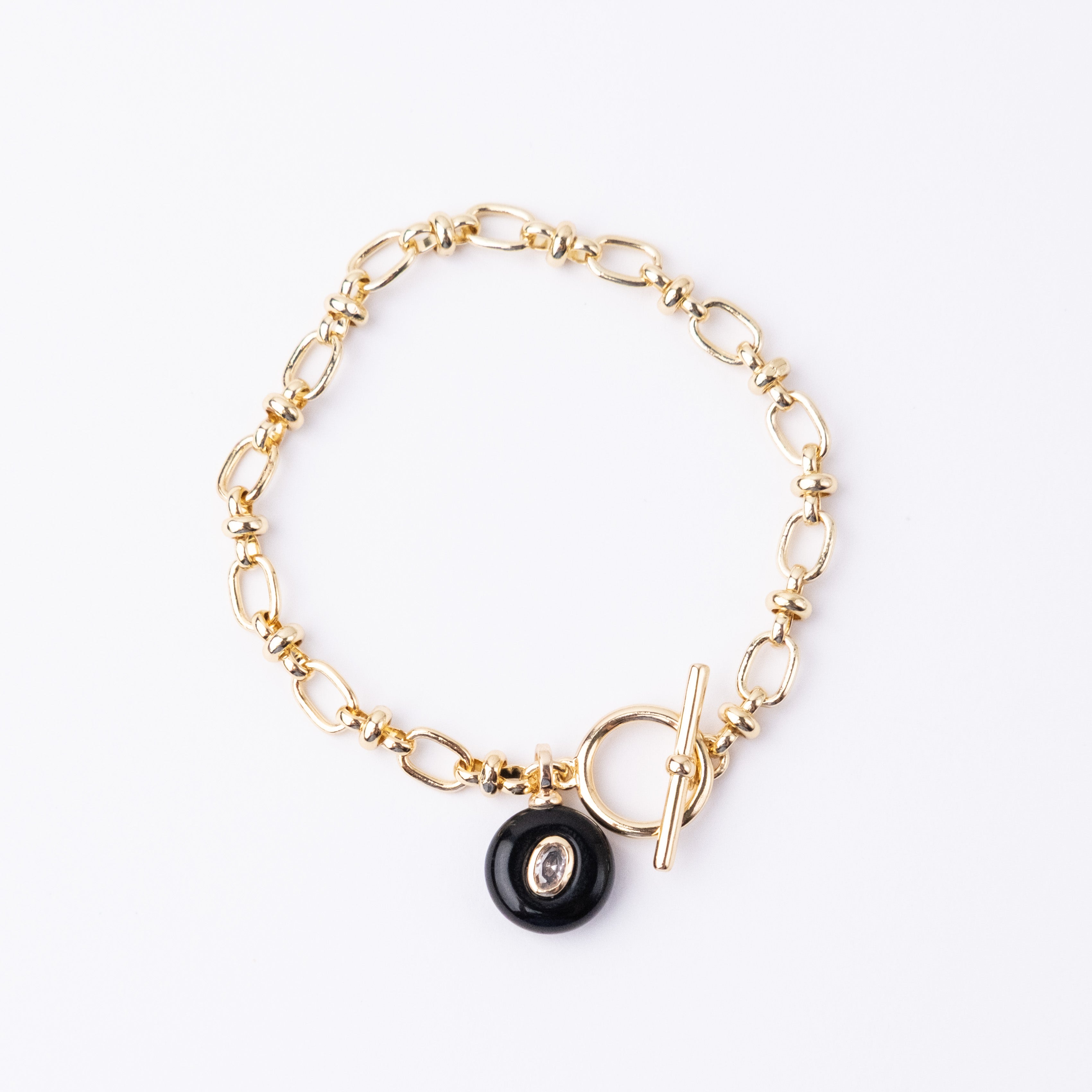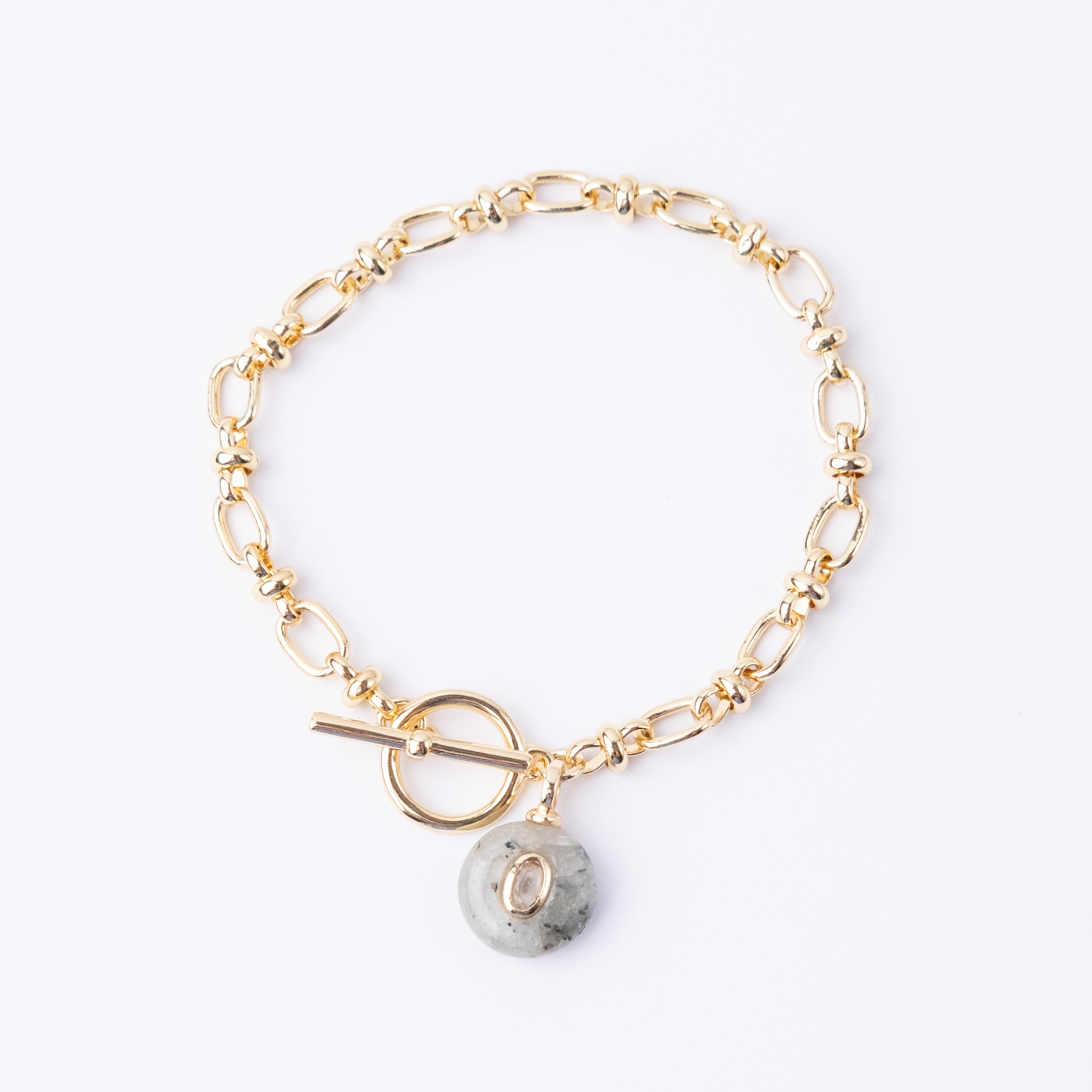 Gold plated chain with semi-precious stone charm with a CZ detail. Fastened with a Fob