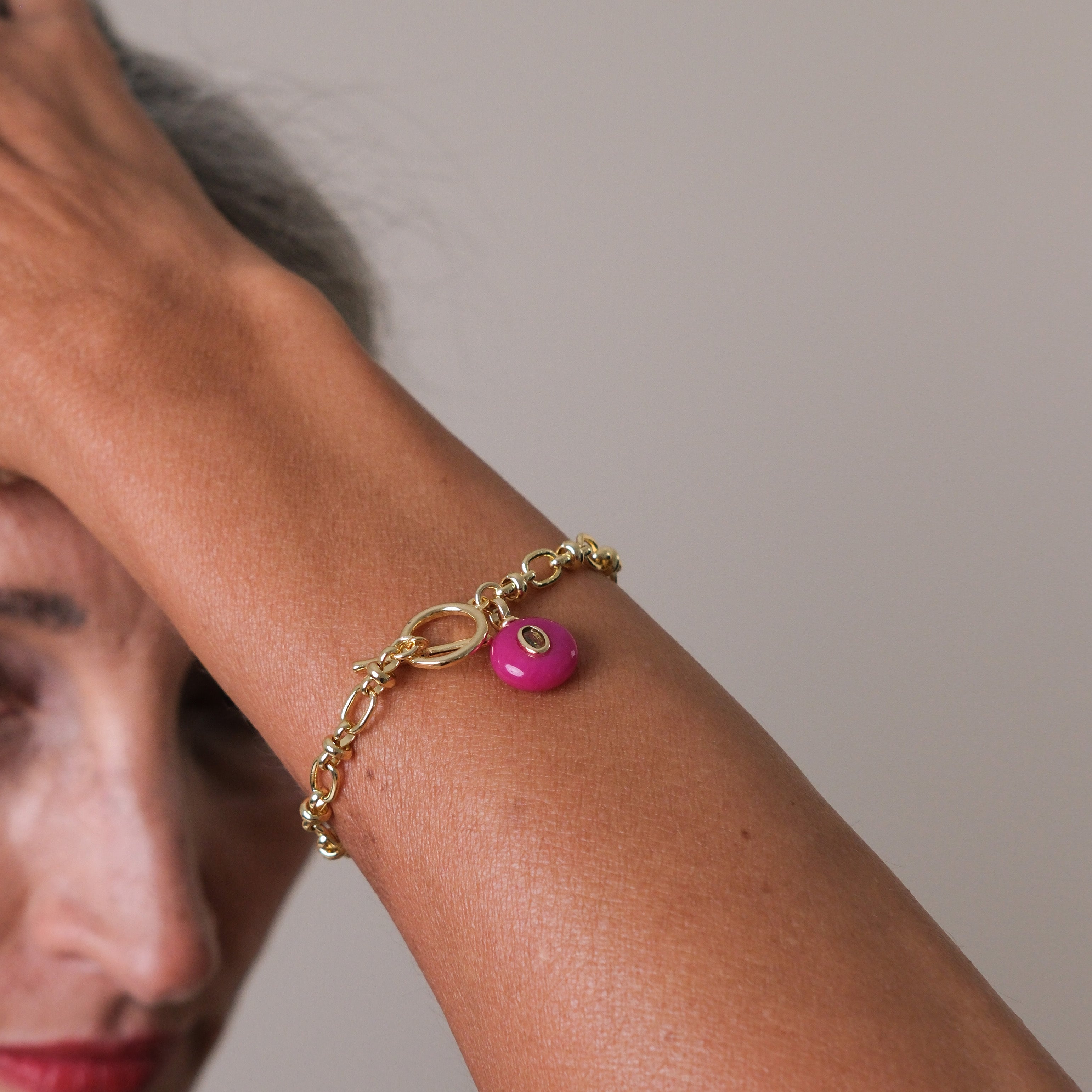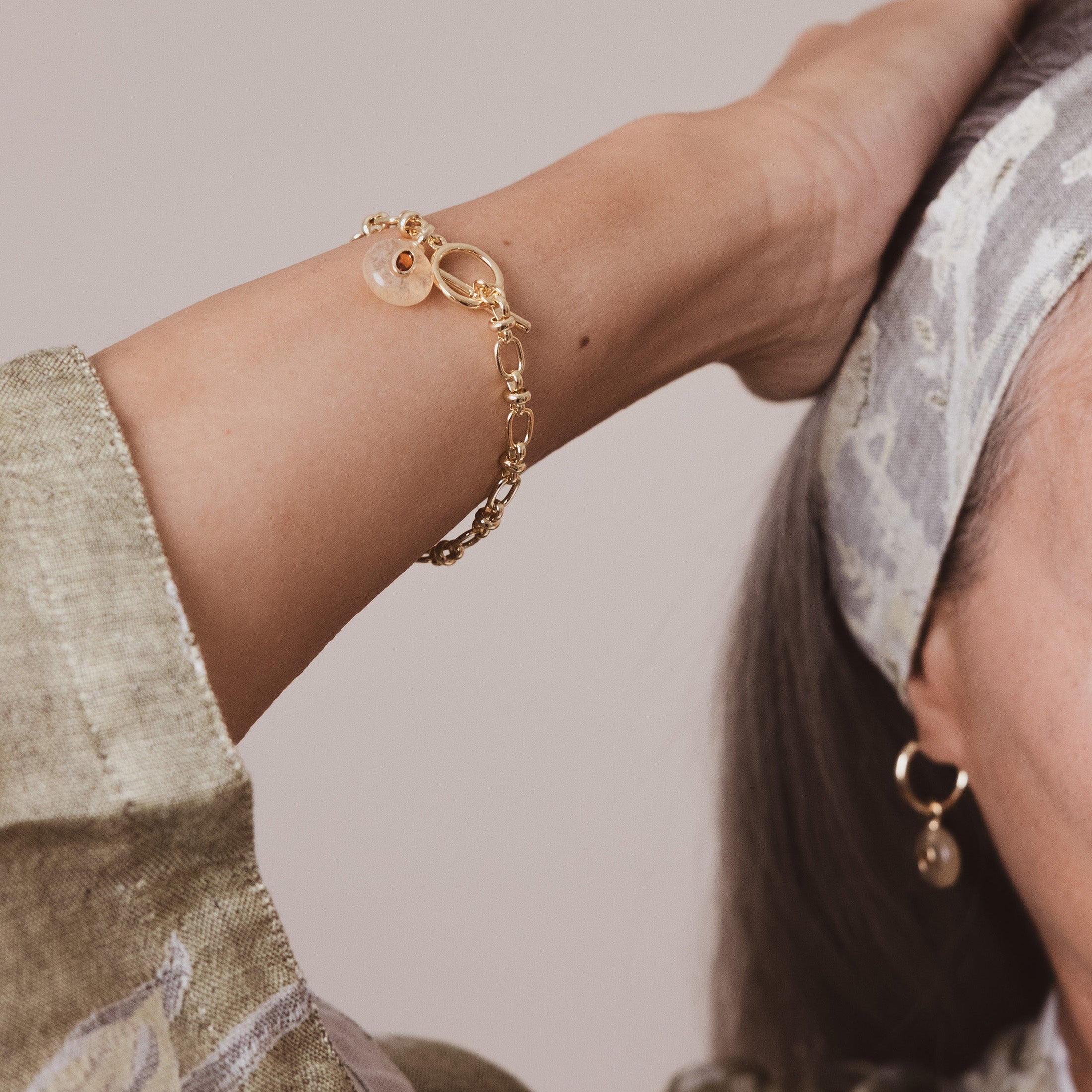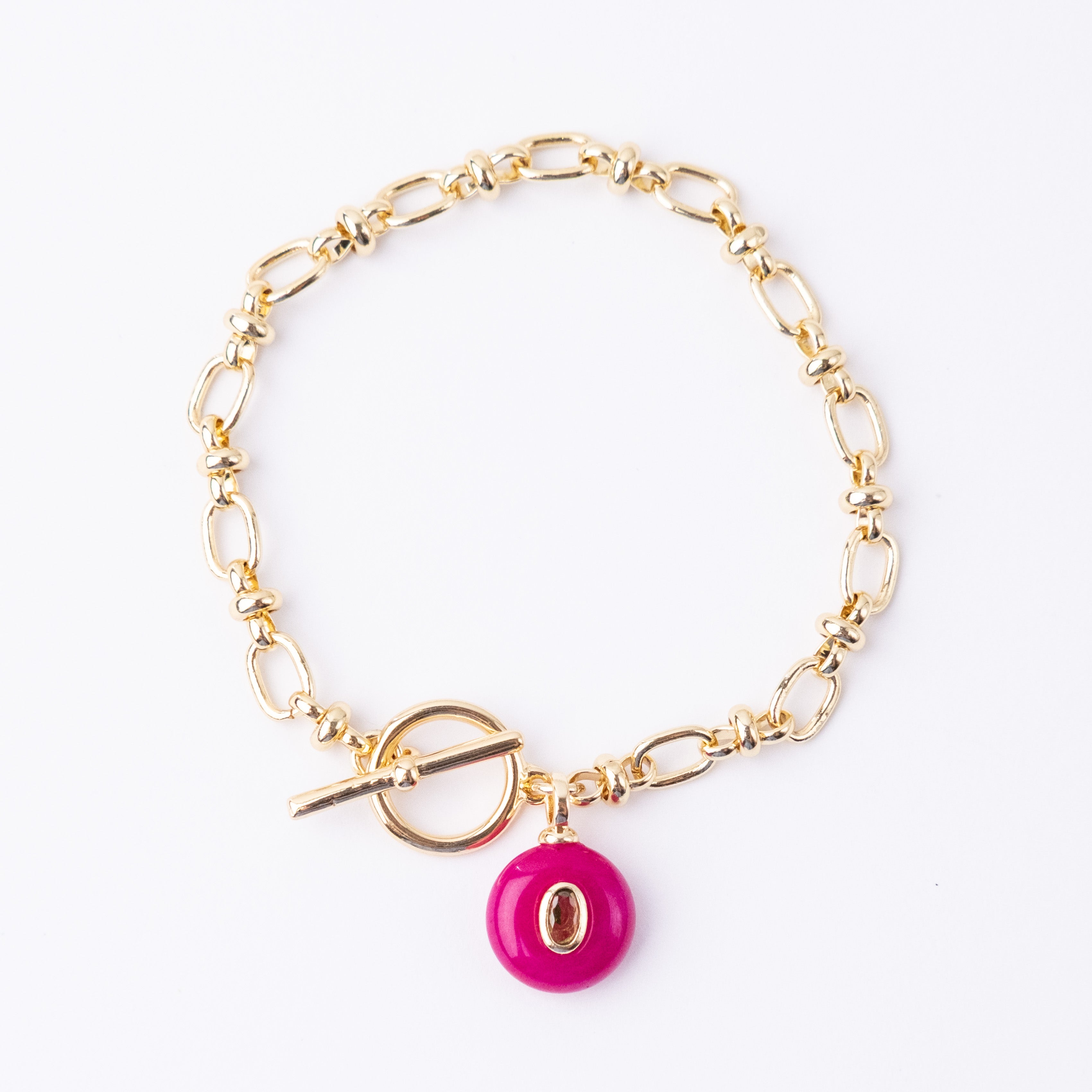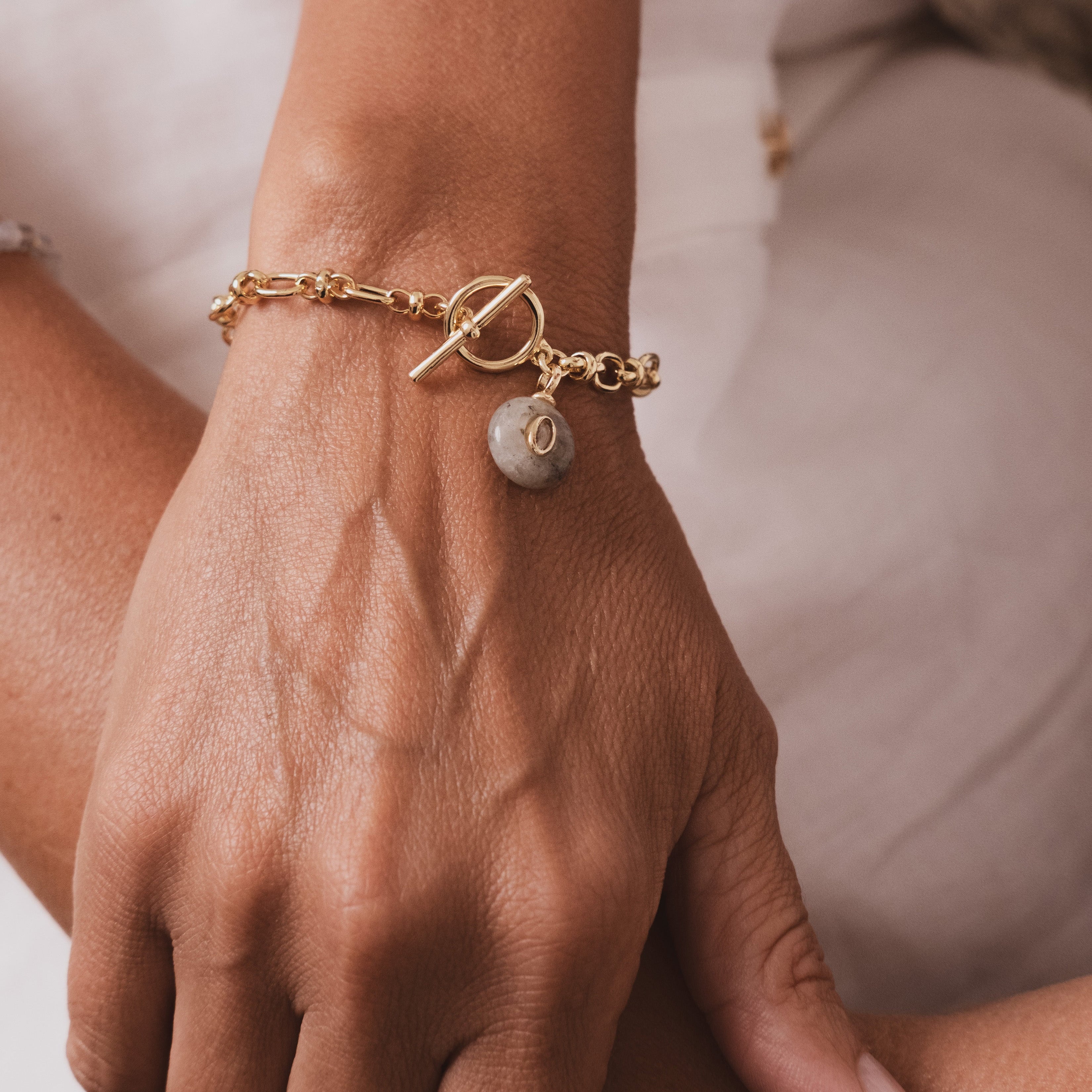 Gold plated chain with semi-precious stone charm with a CZ detail. Fastened with a Fob