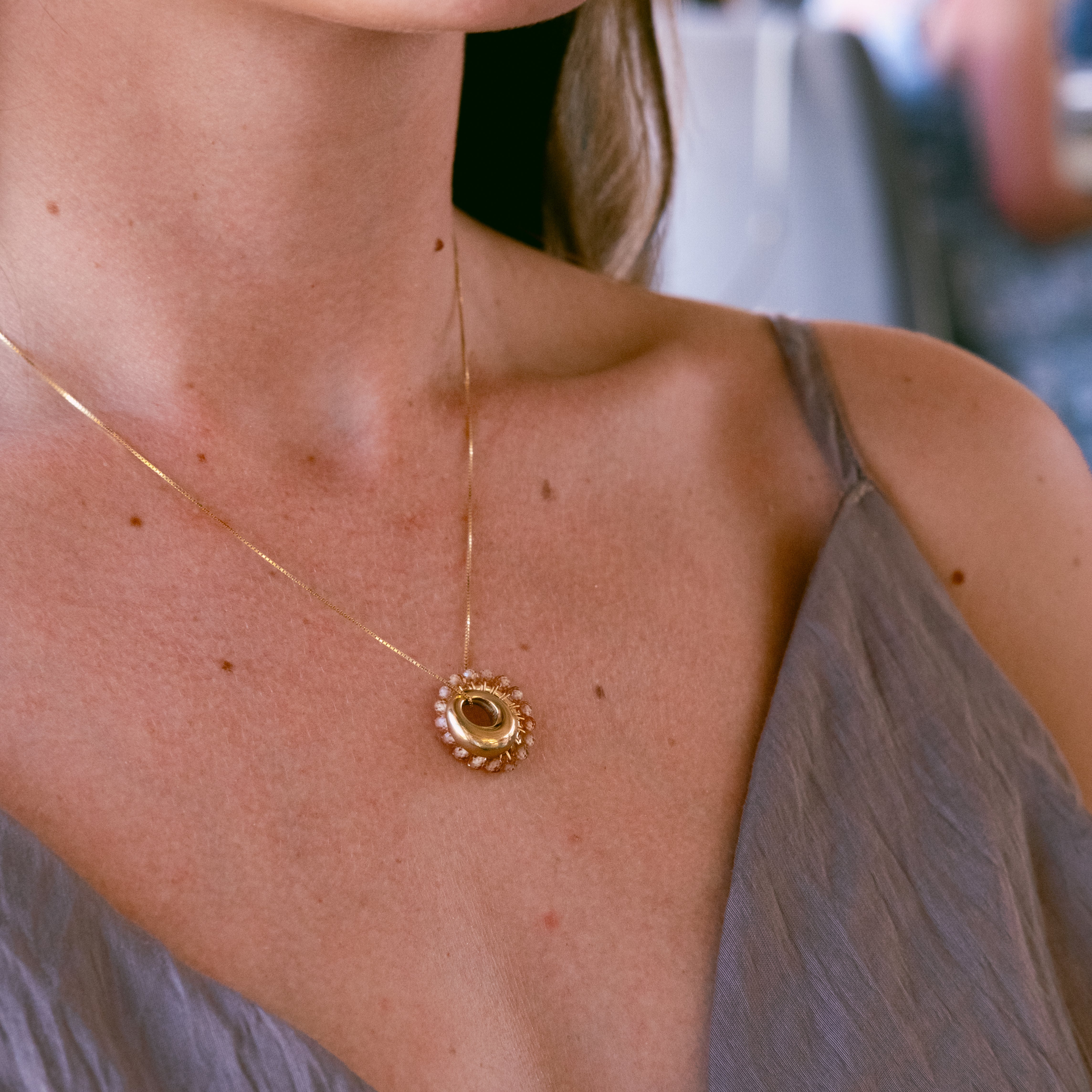 Delicate Sterling Silver Gold Plated chain with Faceted Champagne Quarts and a Gold Plated Nugget