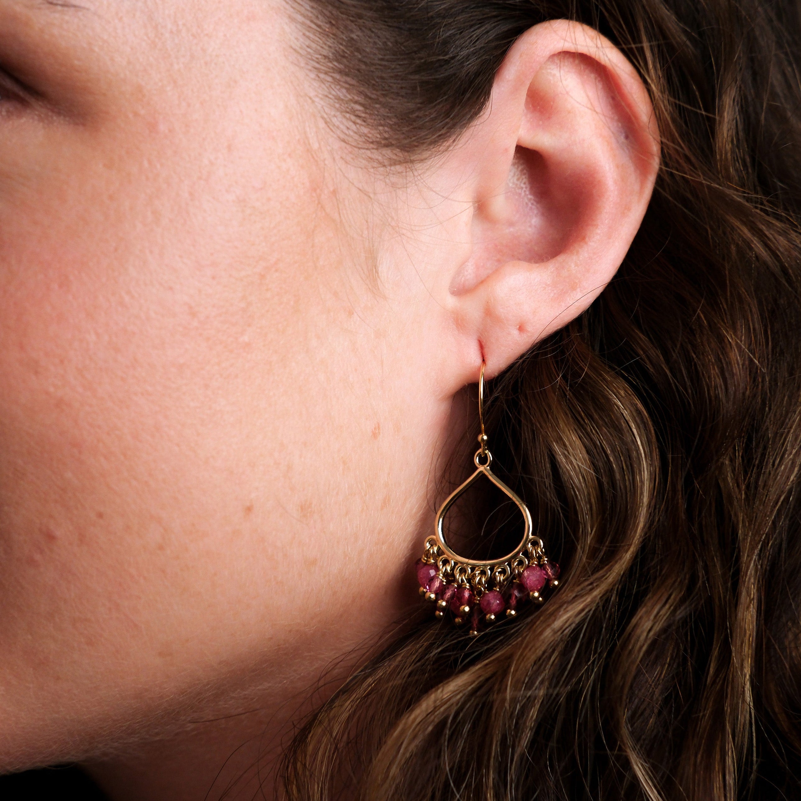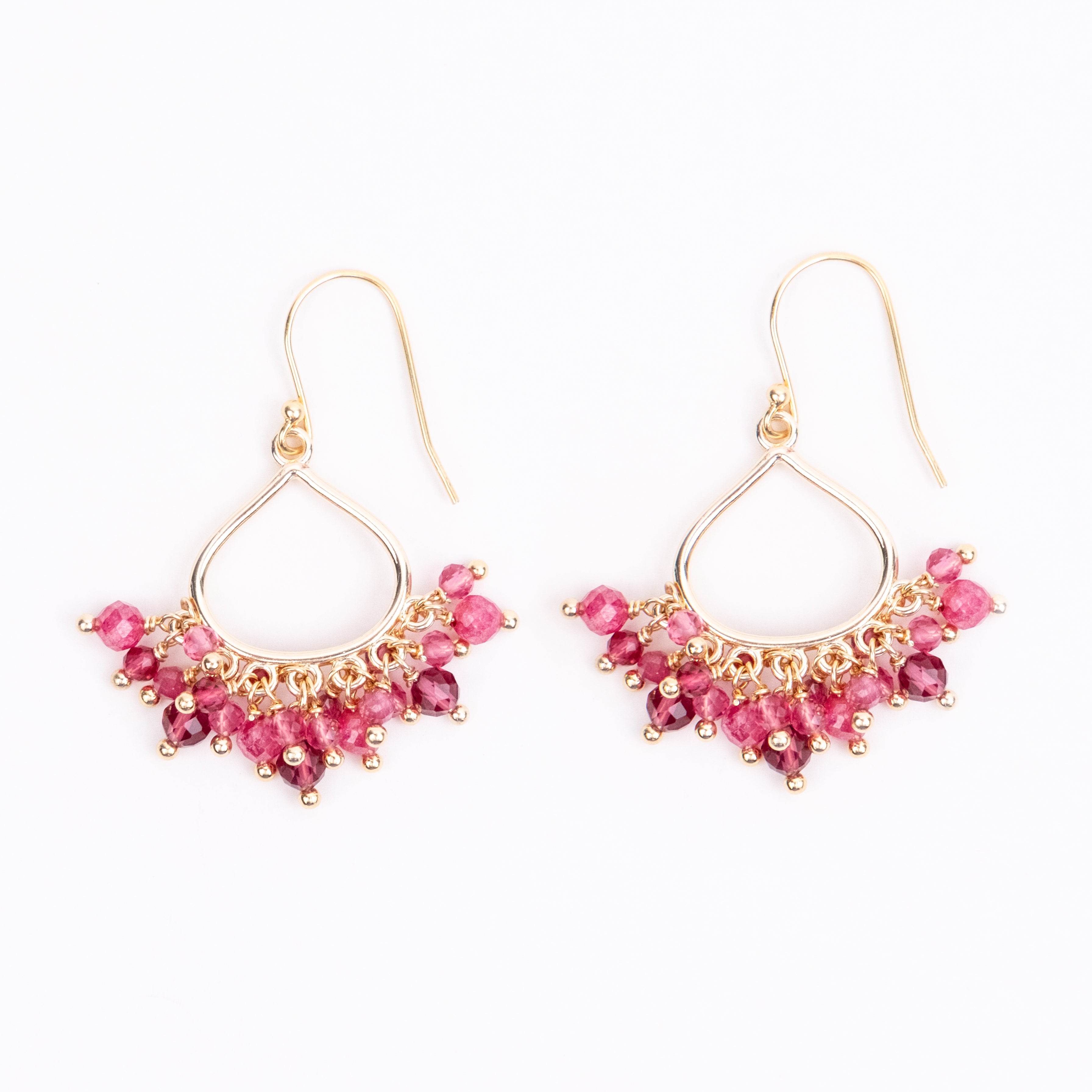 Clusters of Faceted Pink Tourmaline and Garnet Chandelier Earrings