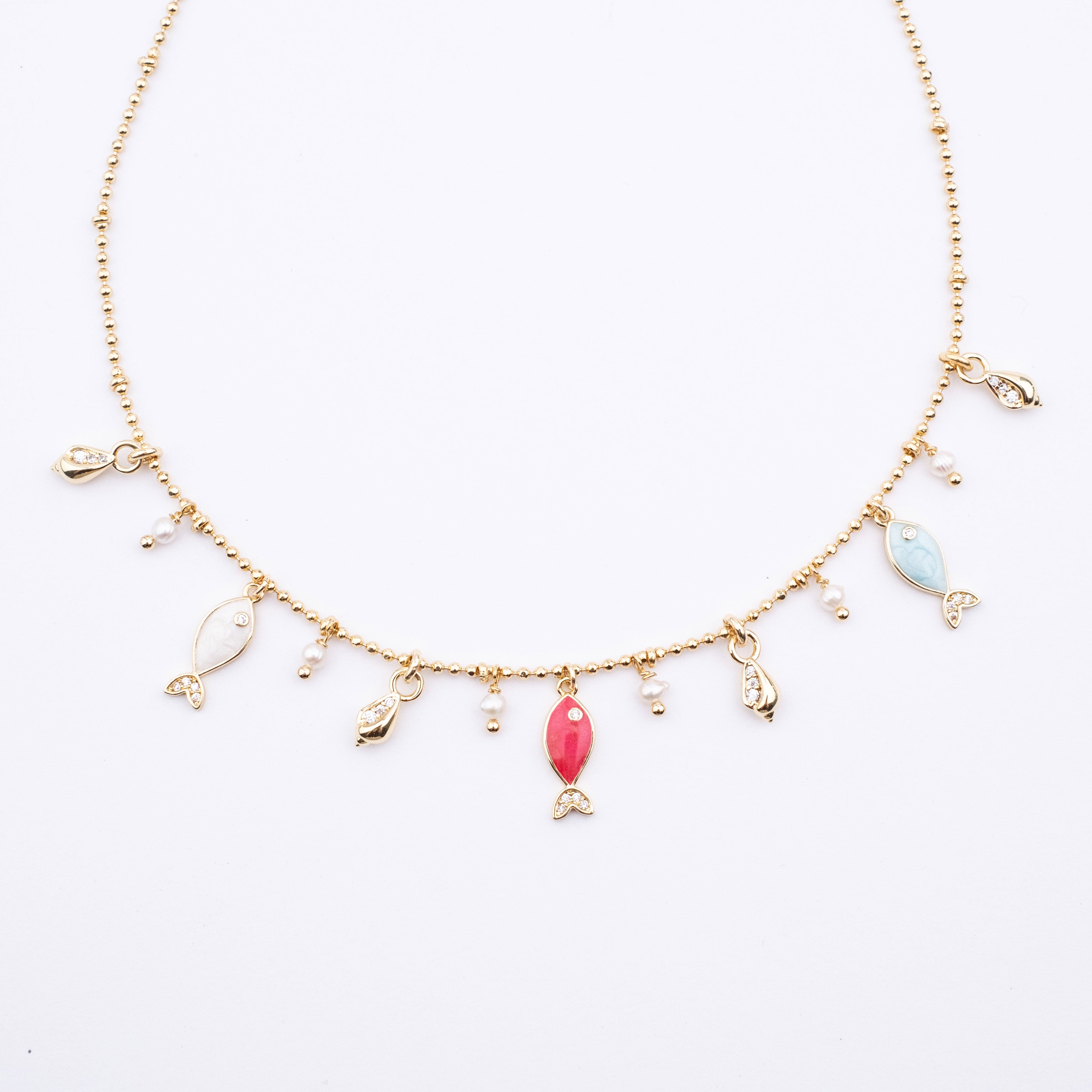 Colourful Enamel Fish Charms with Freshwater Pearl