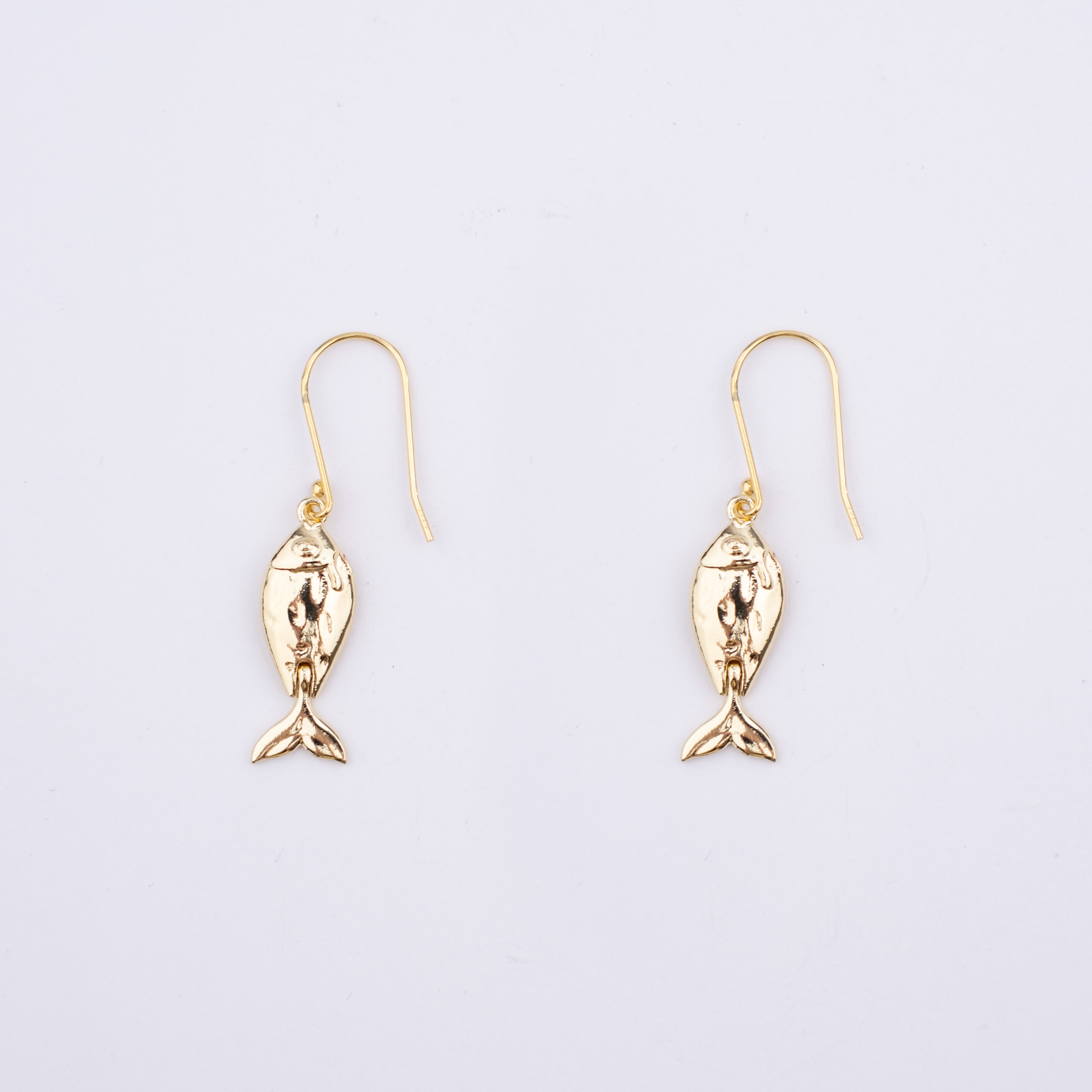 Flat Gold Plated detailed fish charm earrings with a moving tail