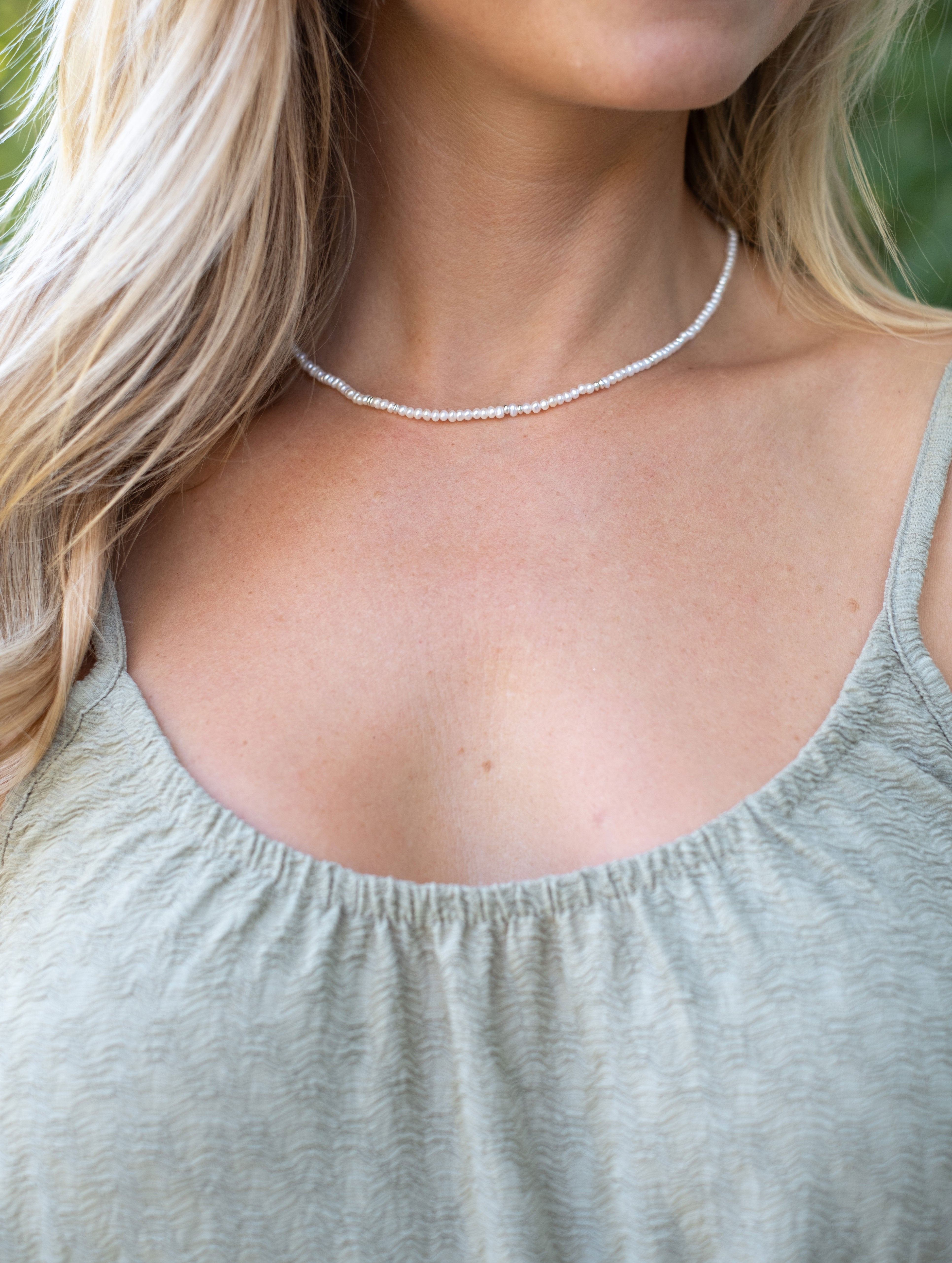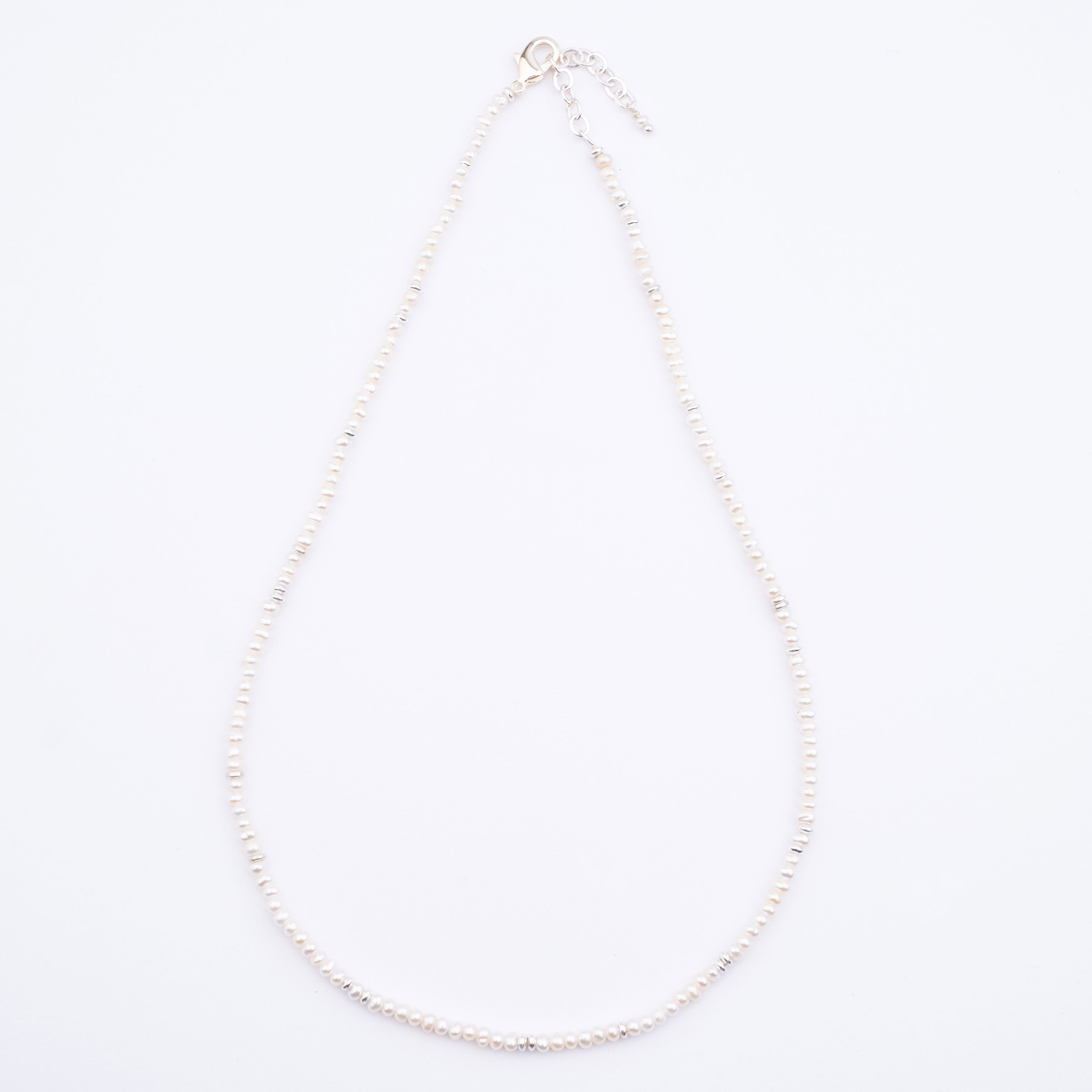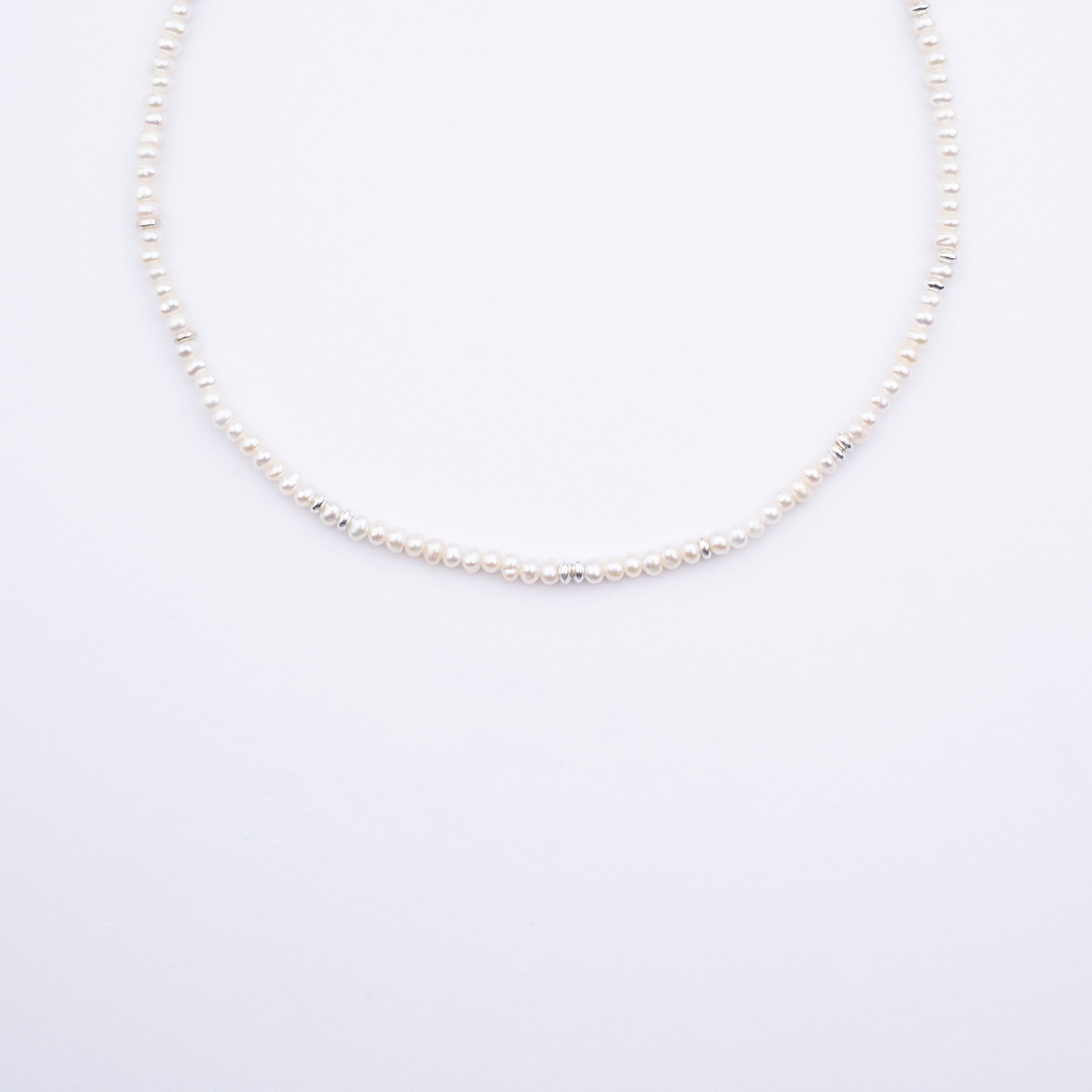 Classic Single Strand of Freshwater Pearls and Silver Spacers.