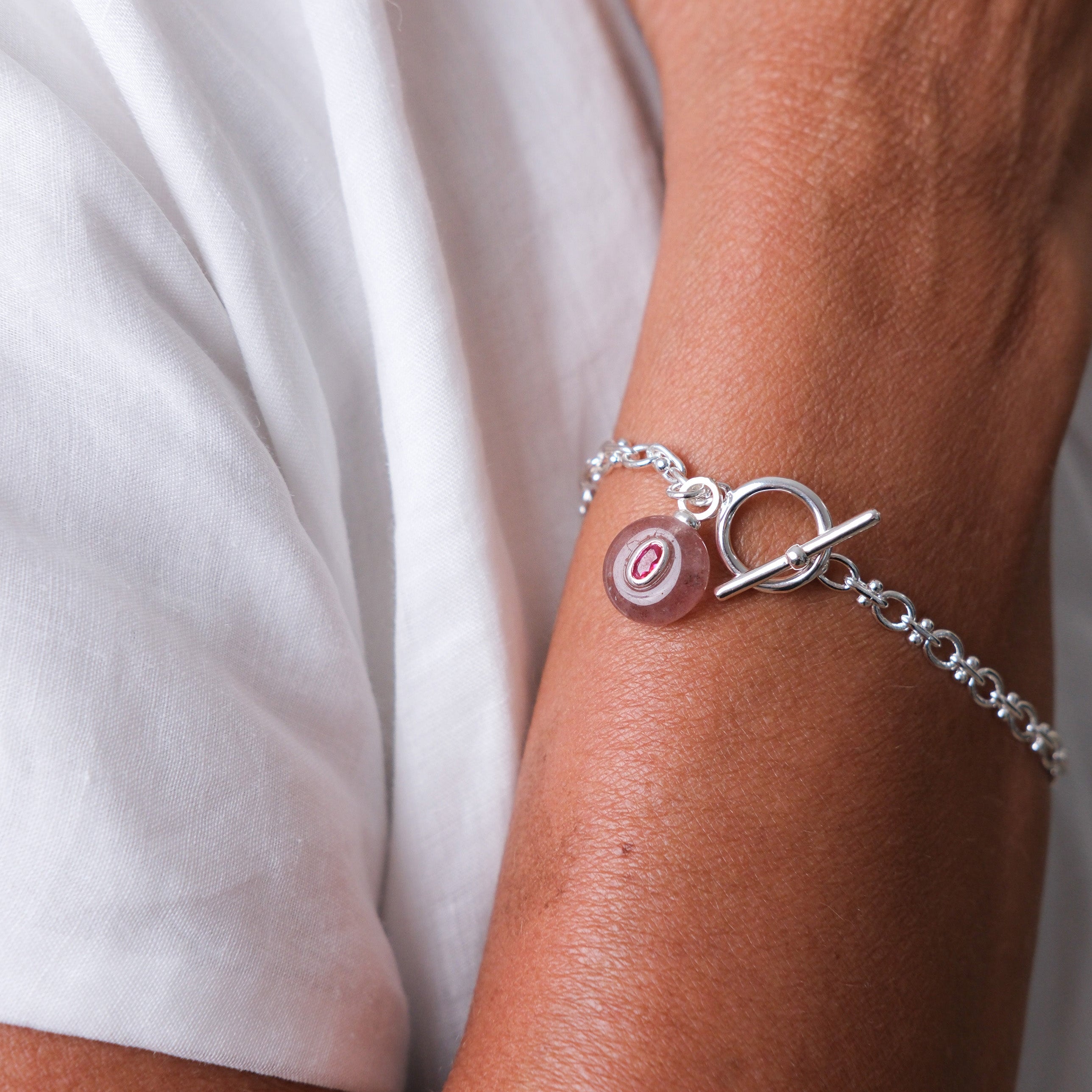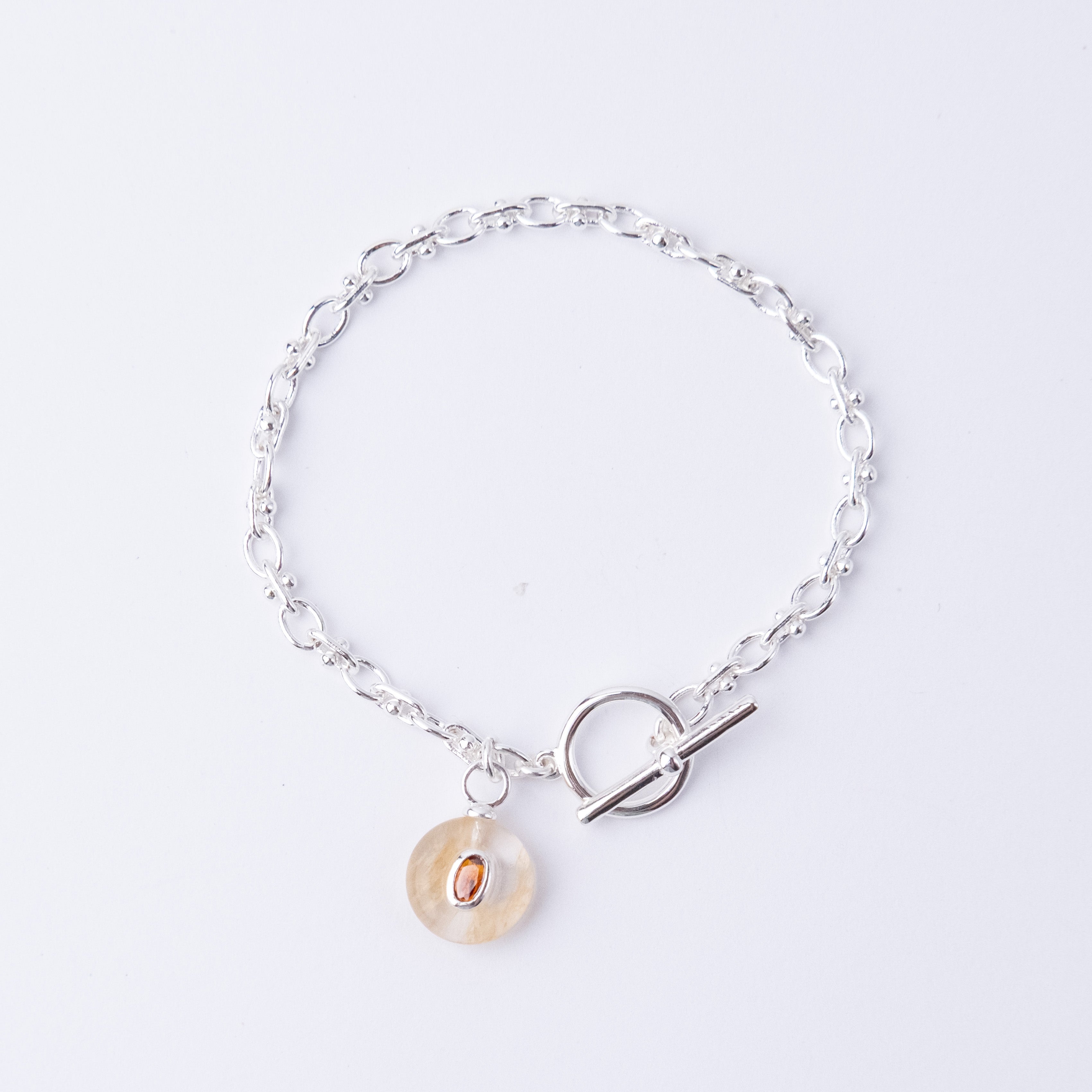 Silver Plated Chain with Semi-Precious Stone Charm and FOB fastening