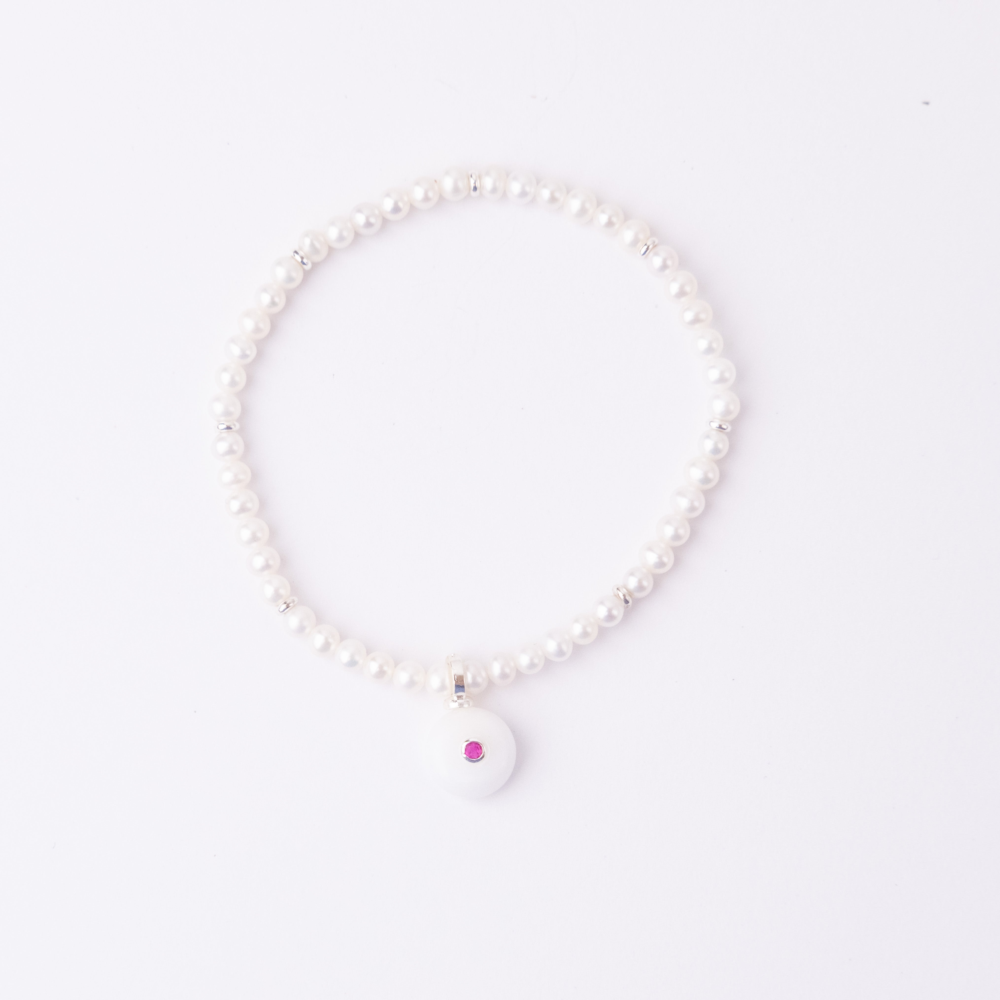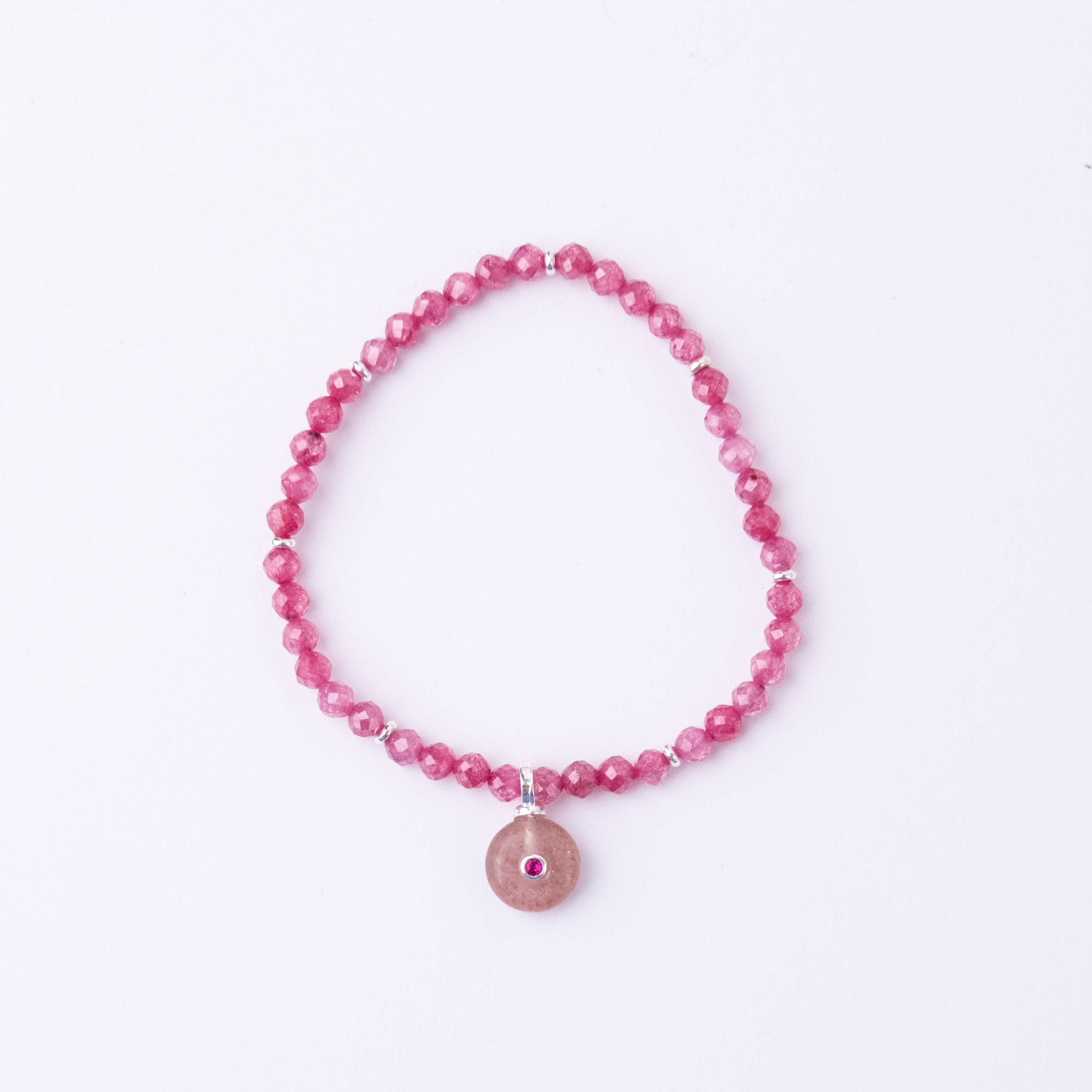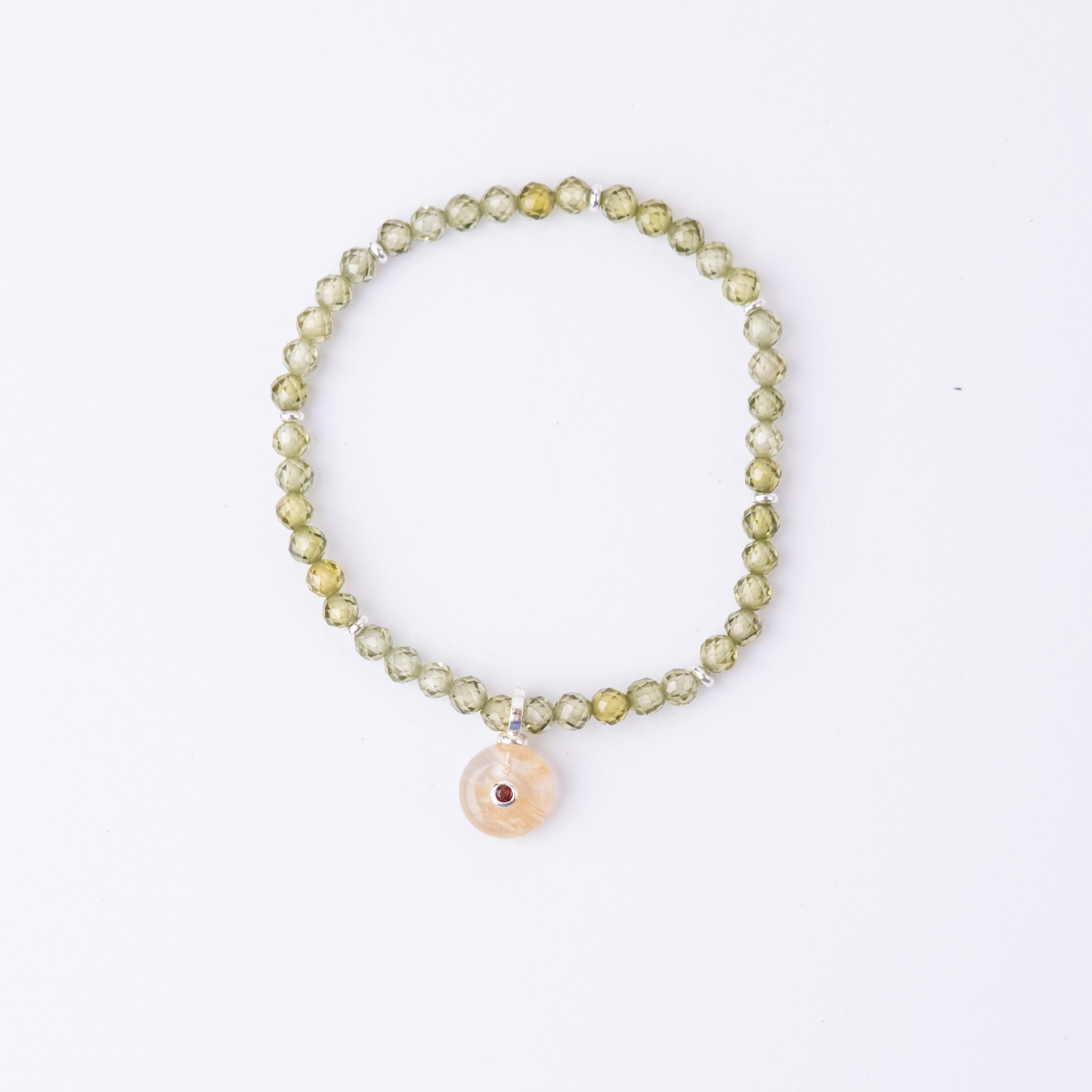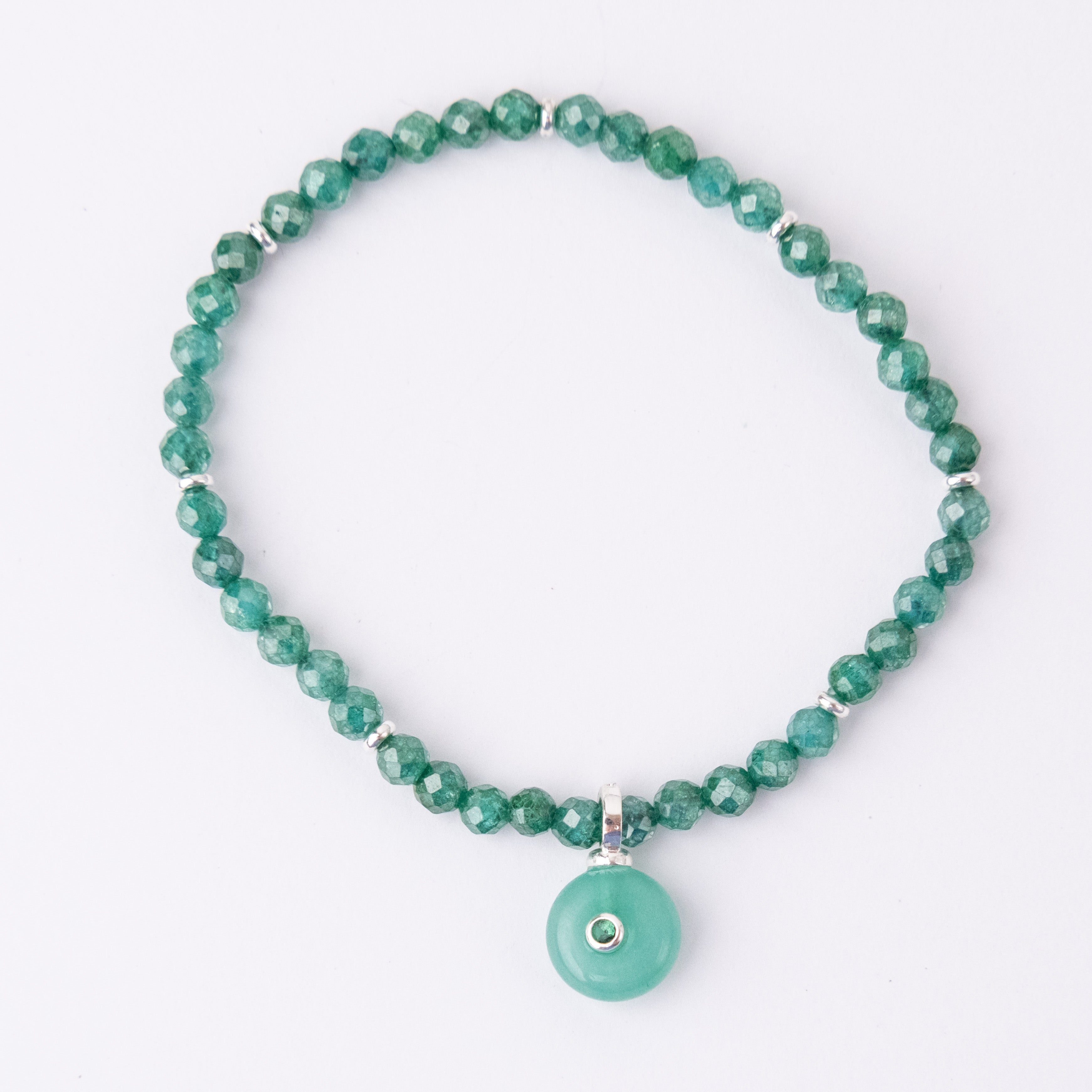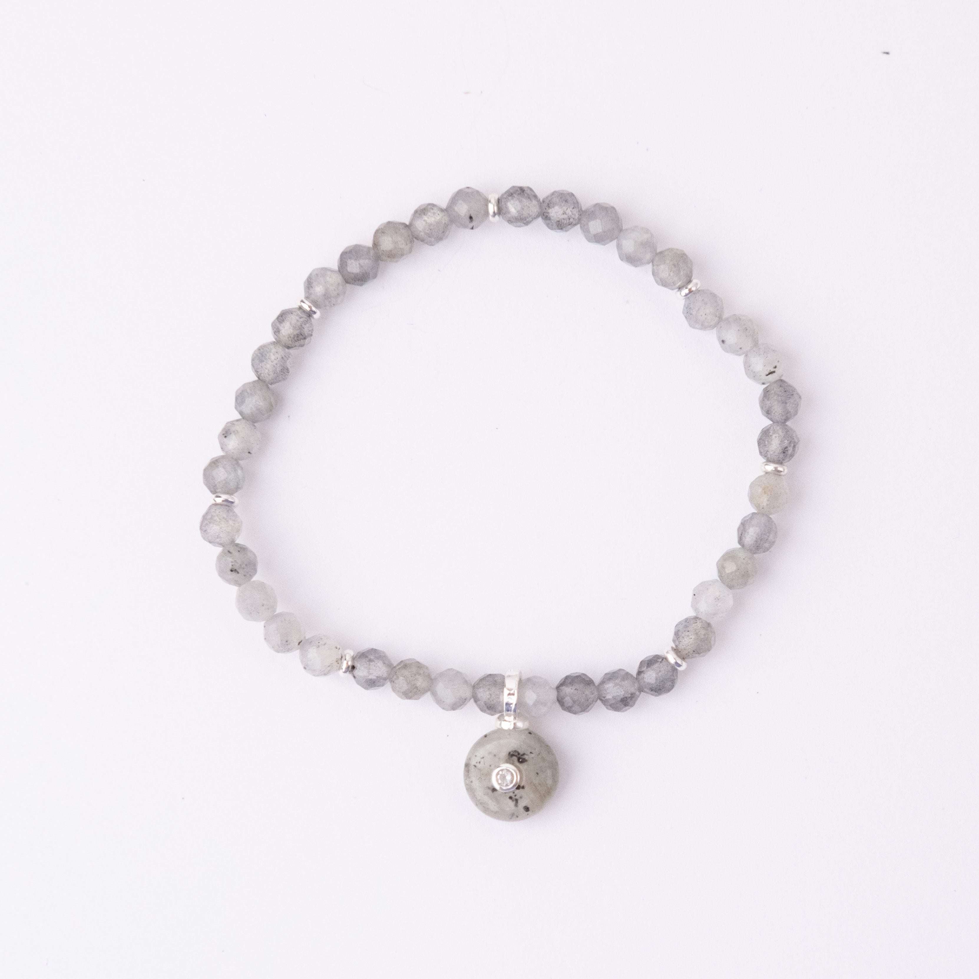 Semi-Precious Stone stretch bracelet with Gemstone pendant.