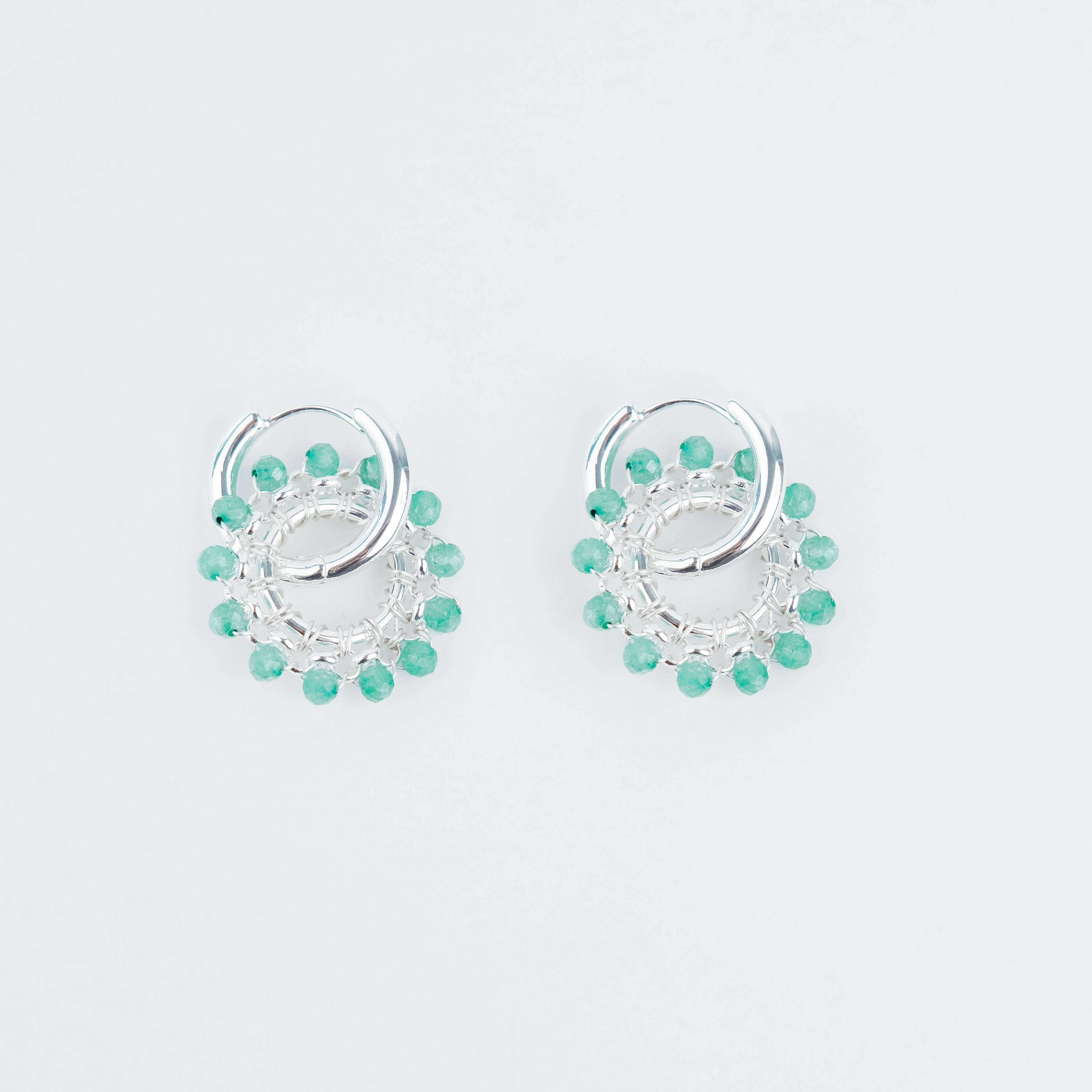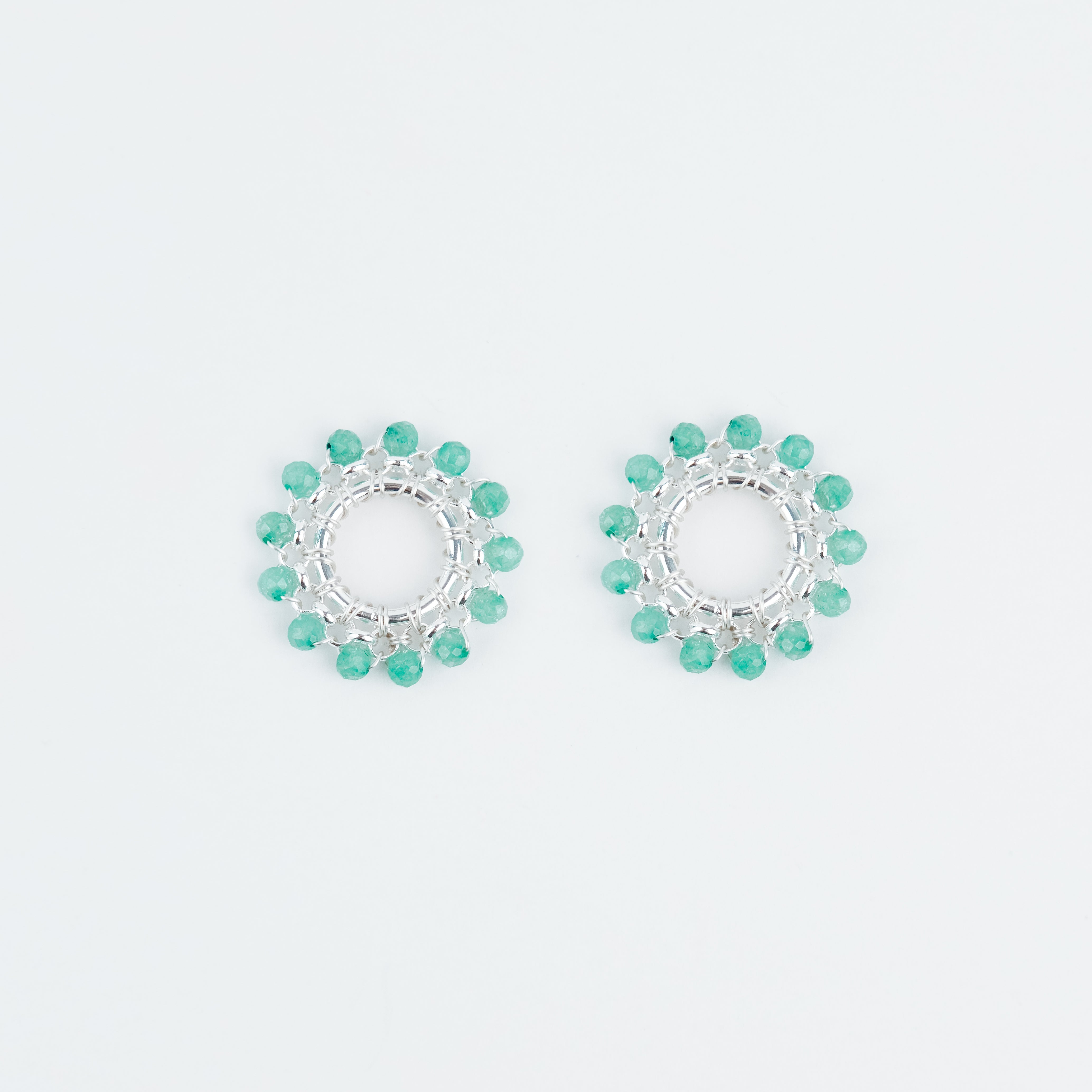 Silver plated ring with Rolo chain and faceted Jade