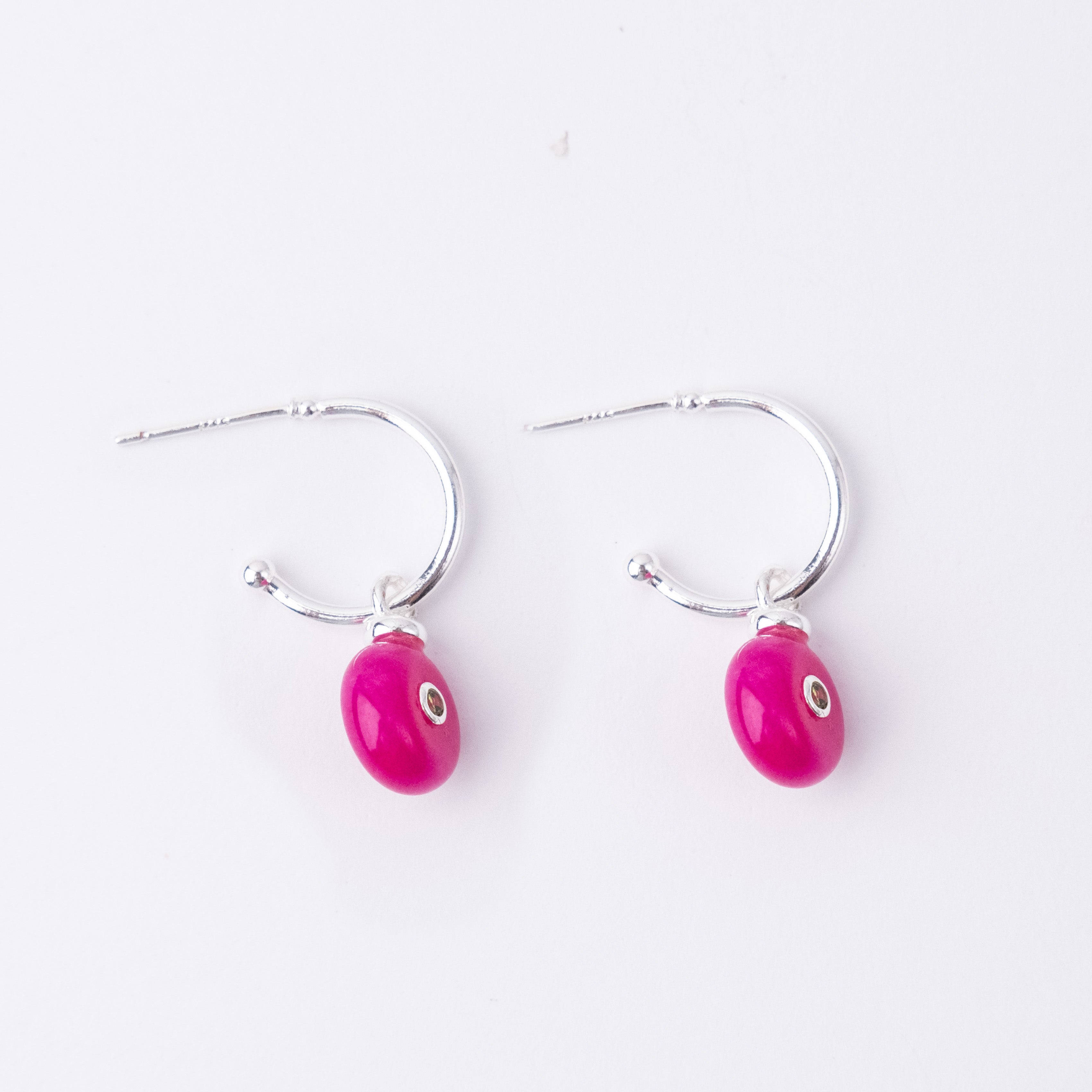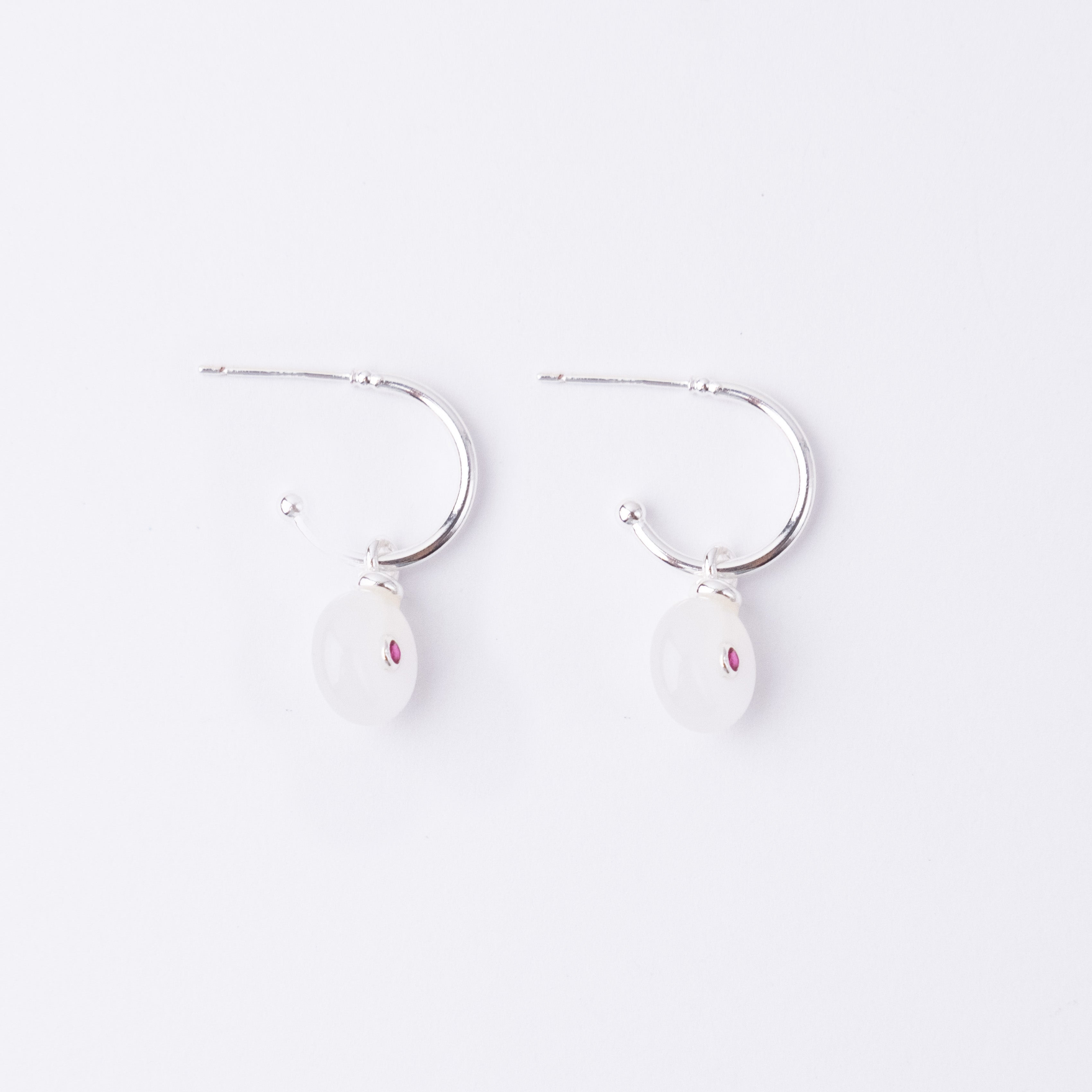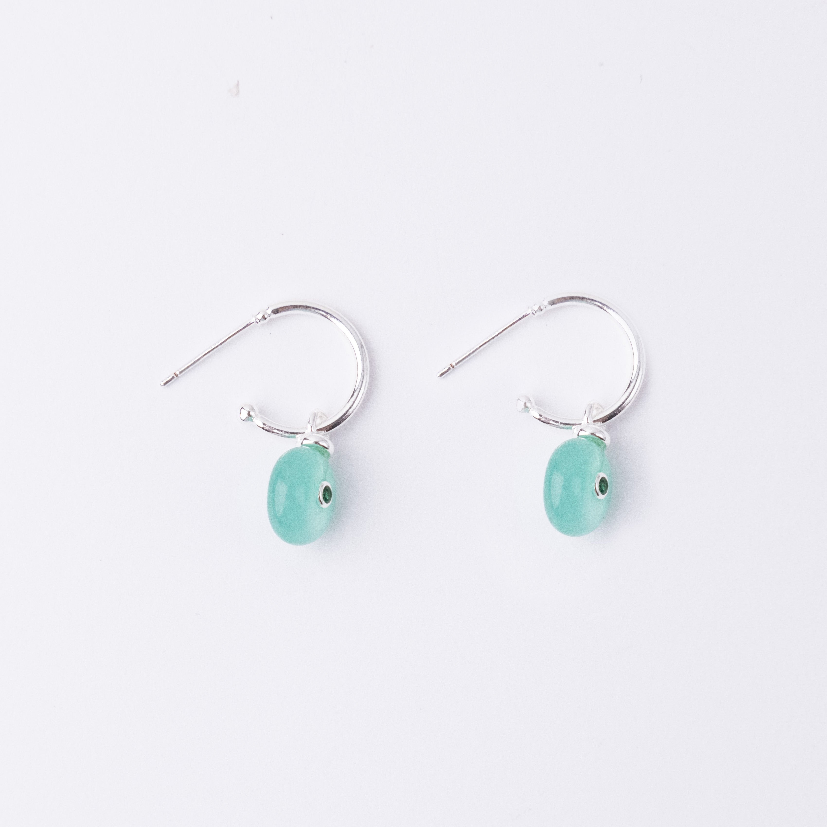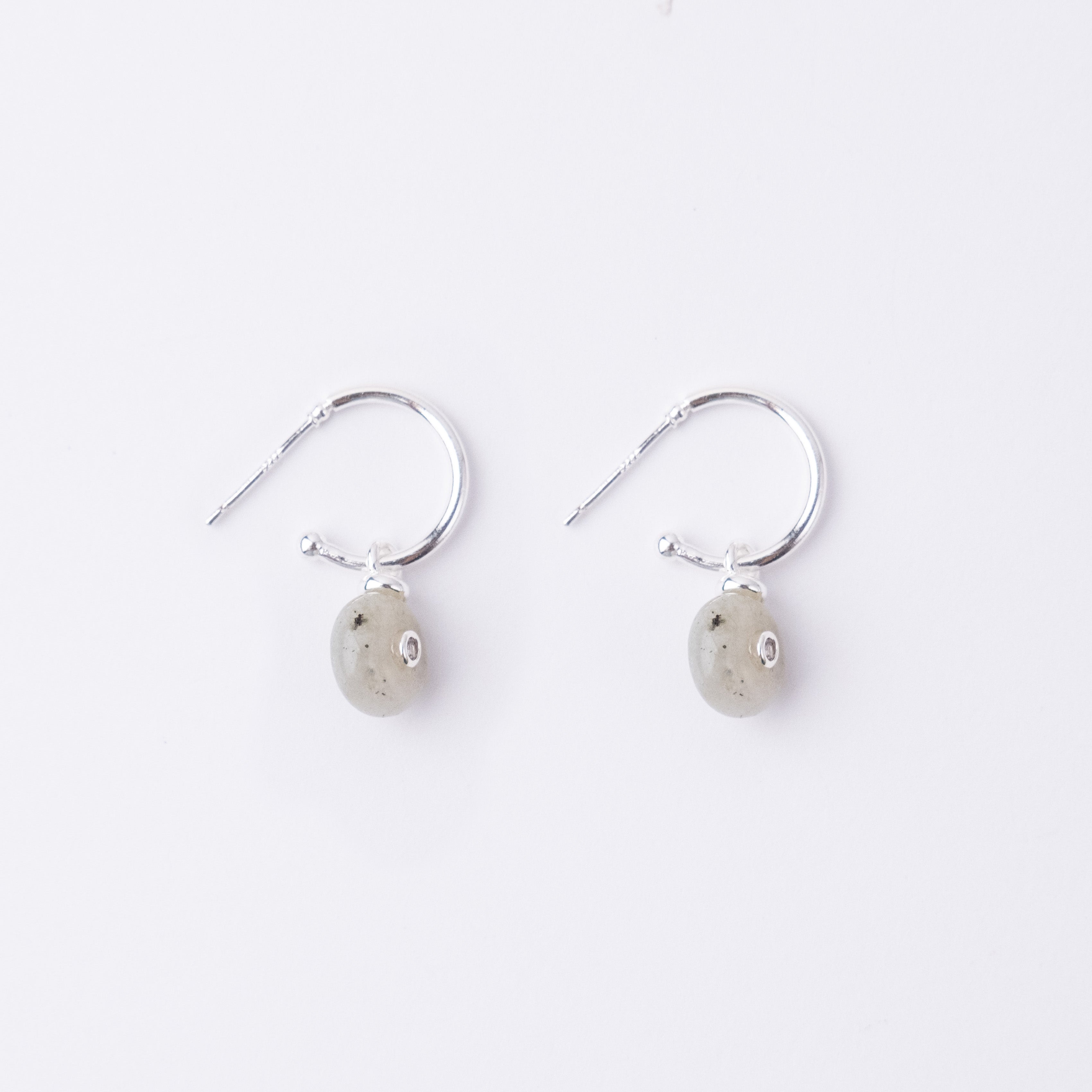 Silver Plated Huggies with a Semi-Precious Stone charms