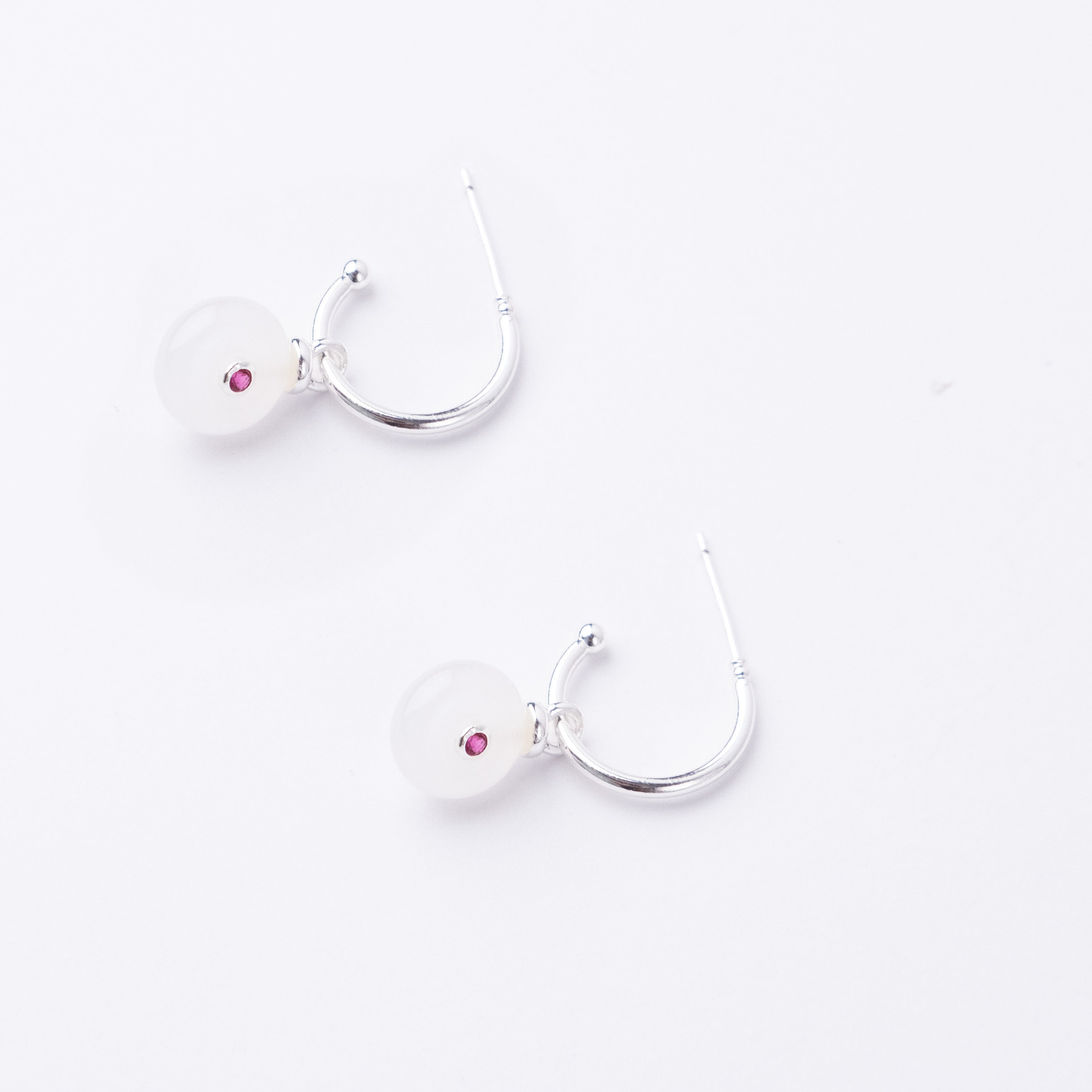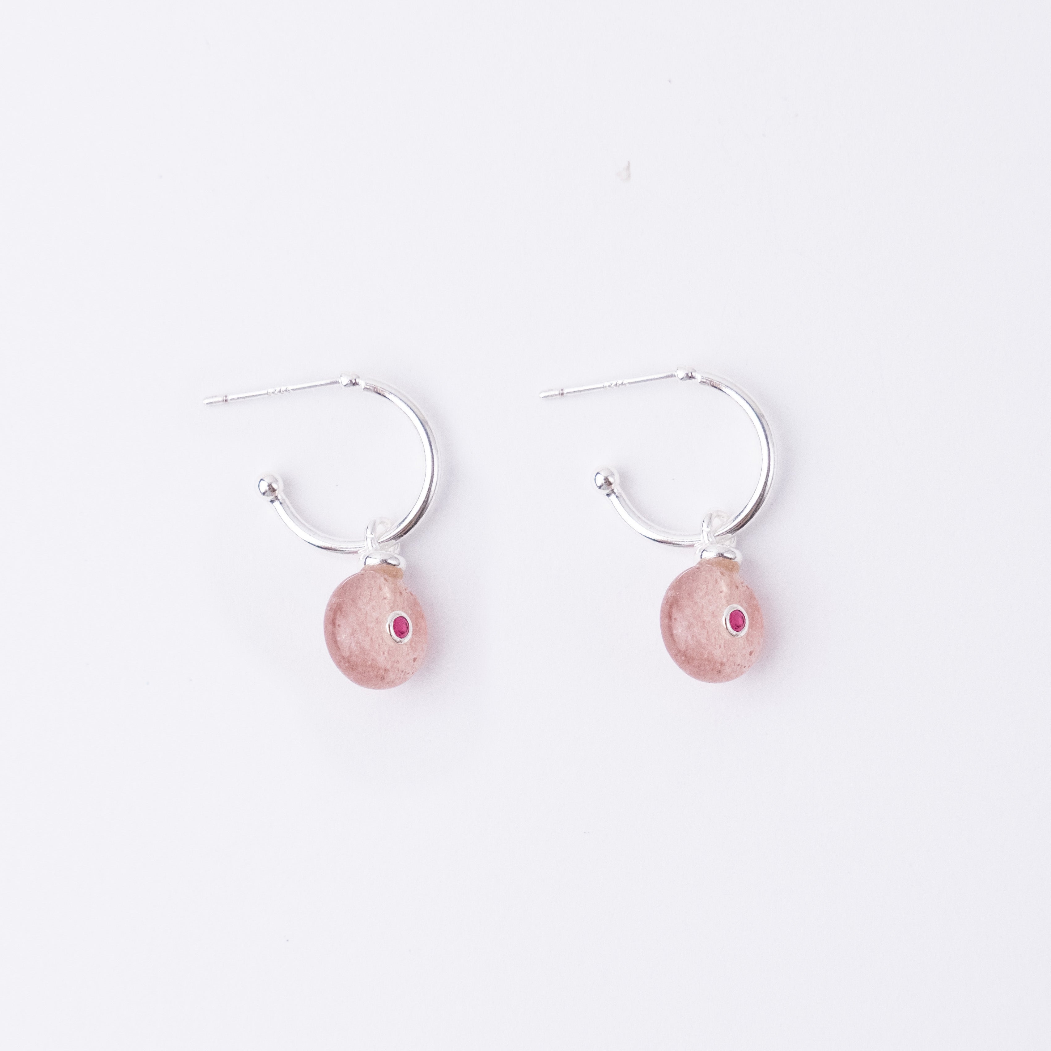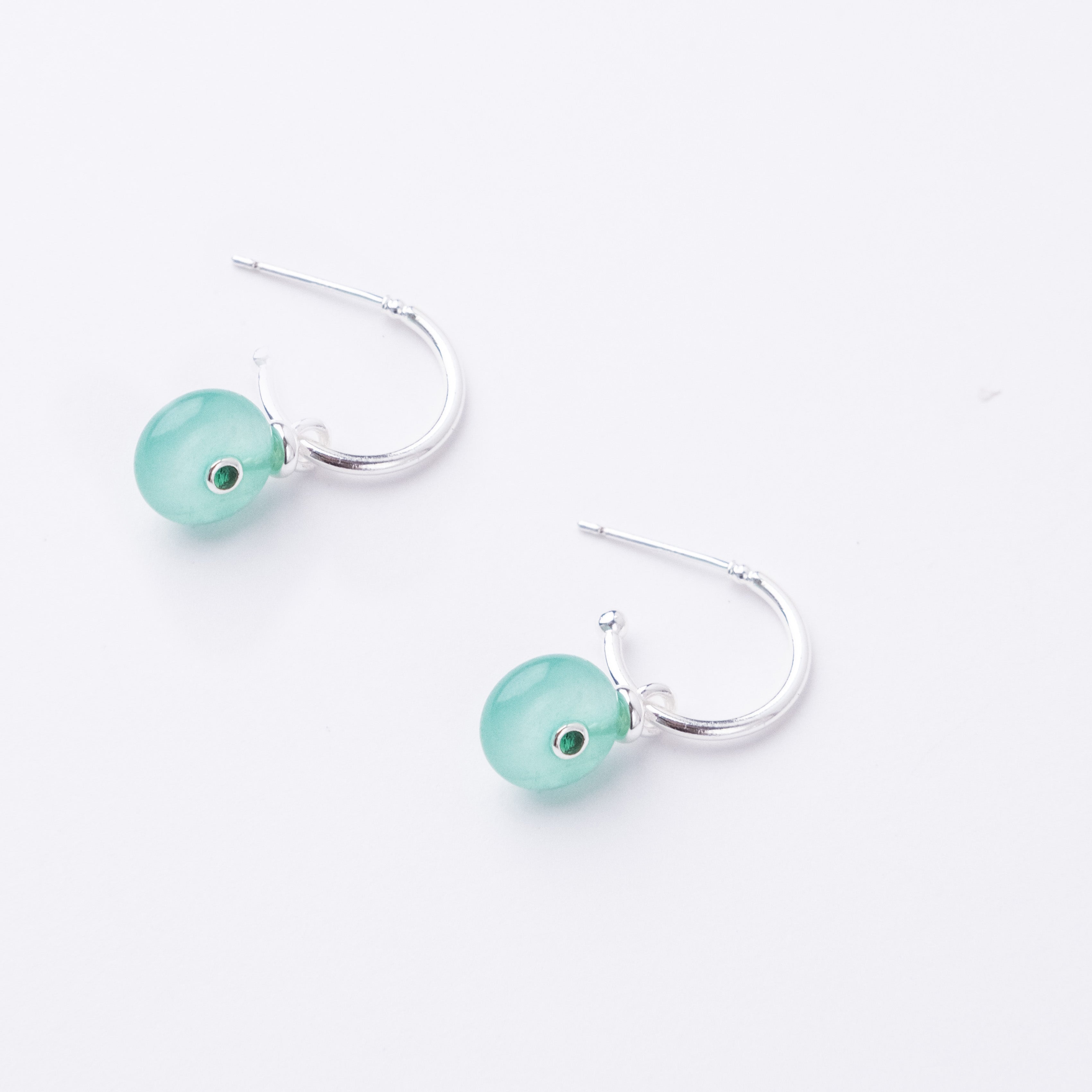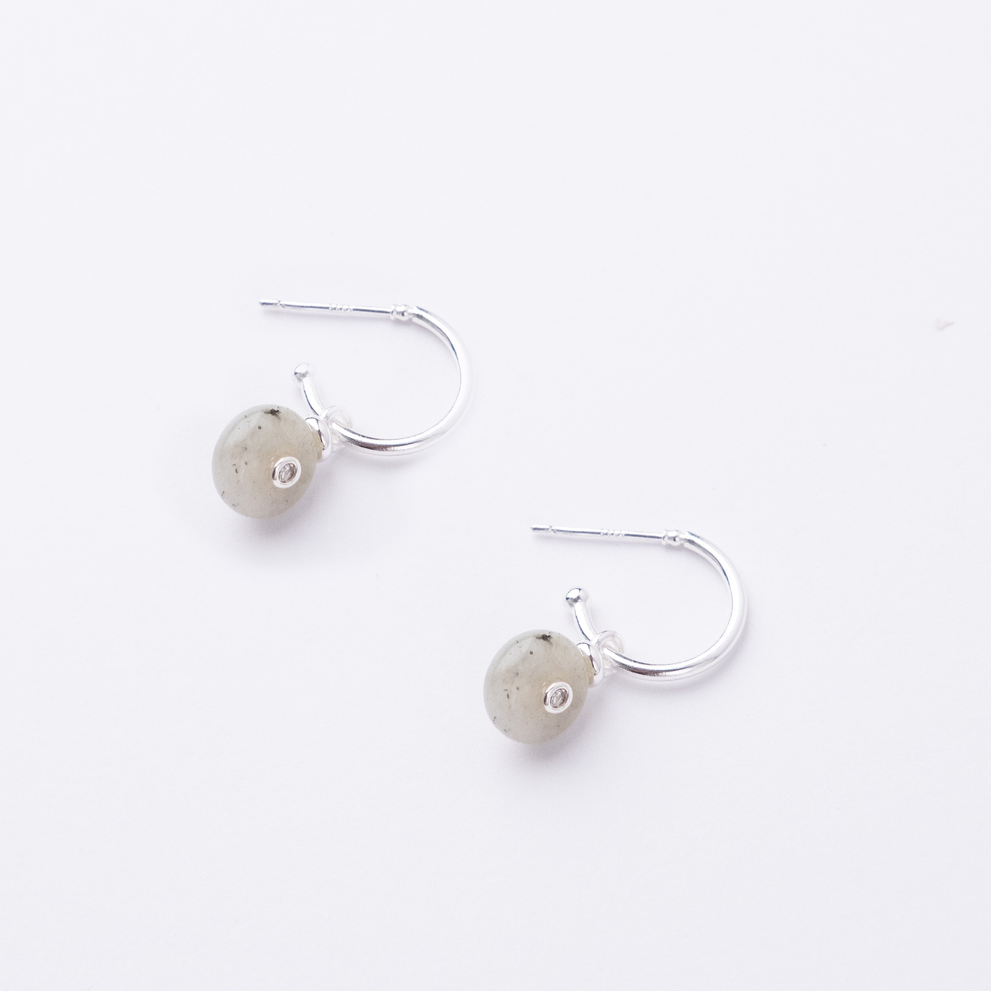 Silver Plated Huggies with a Semi-Precious Stone charms