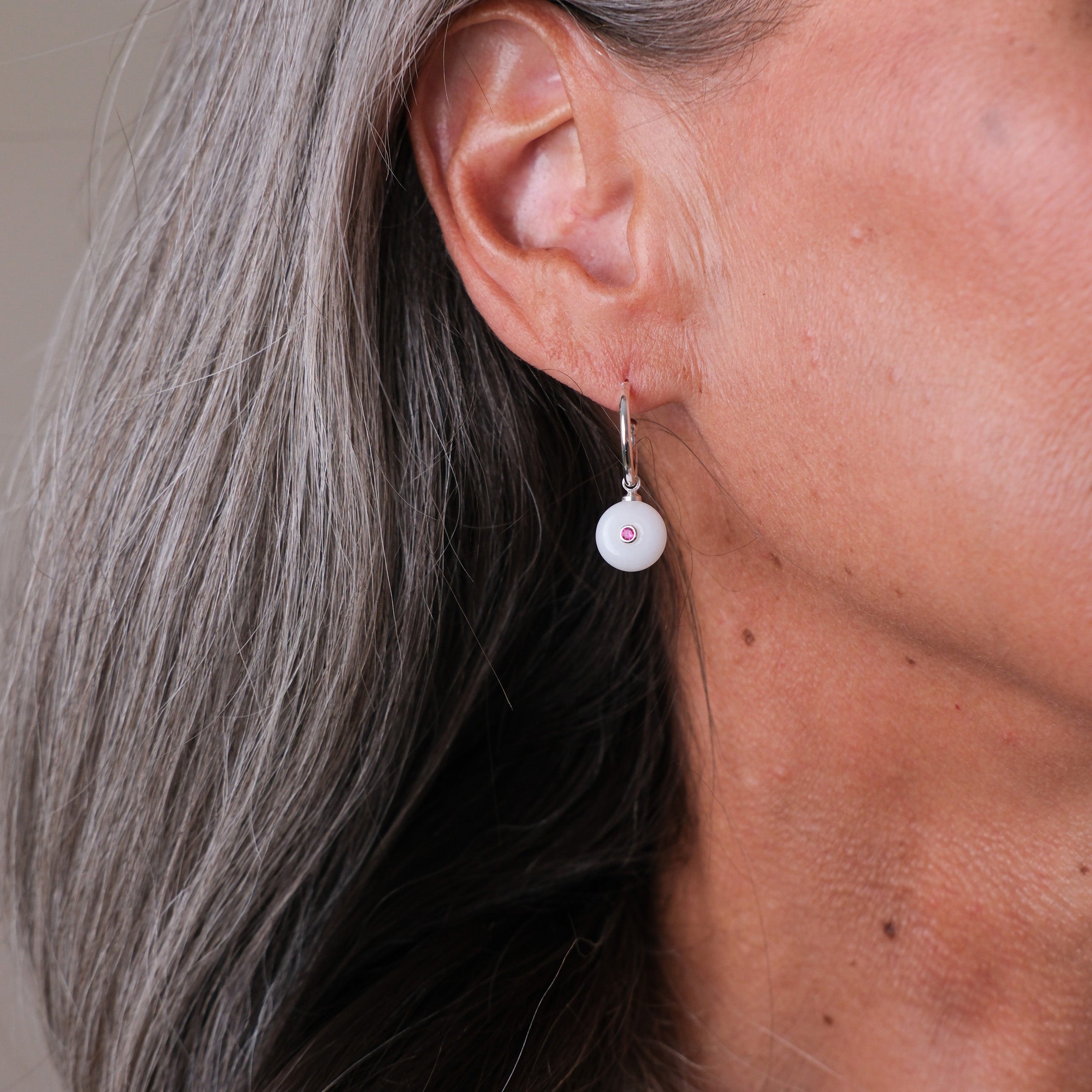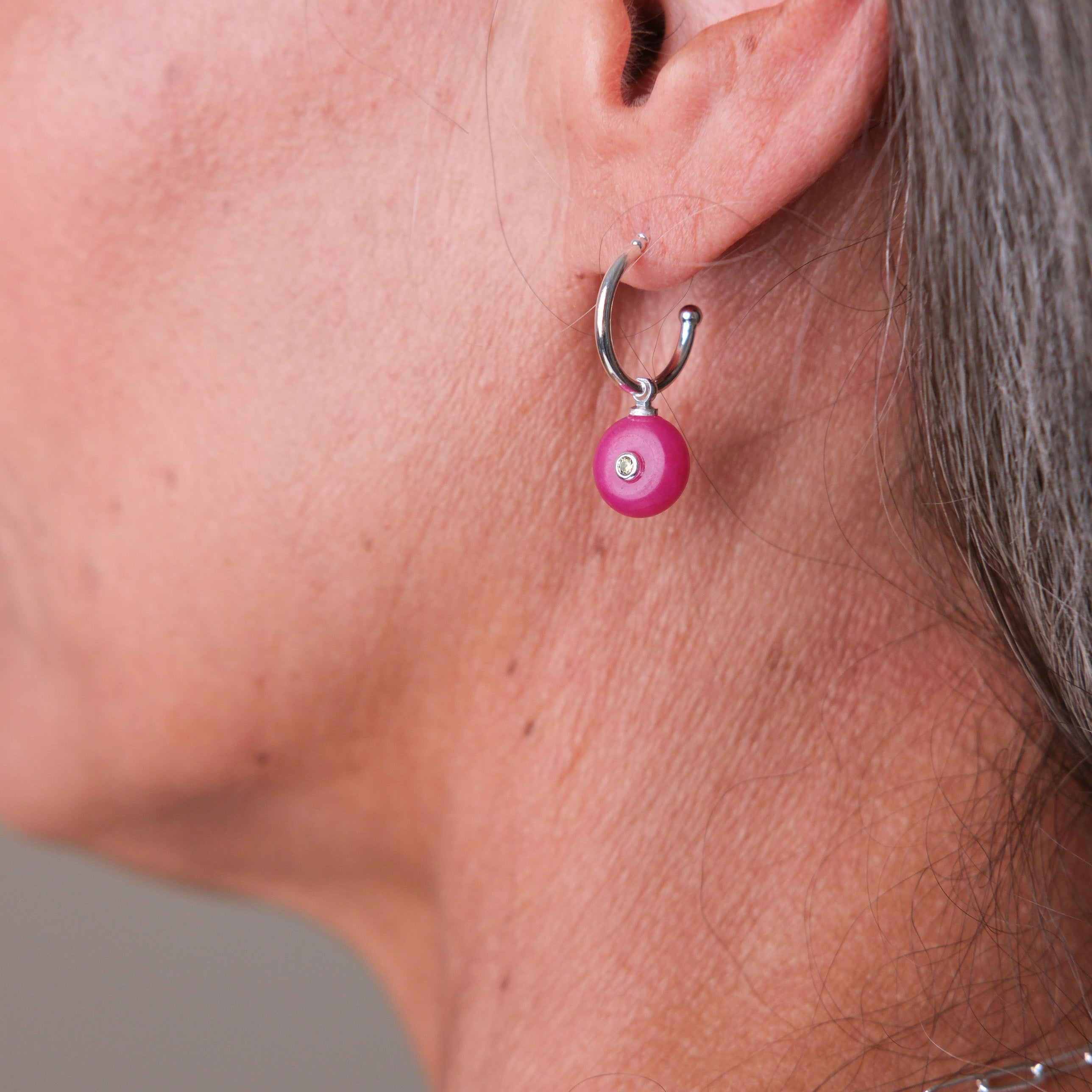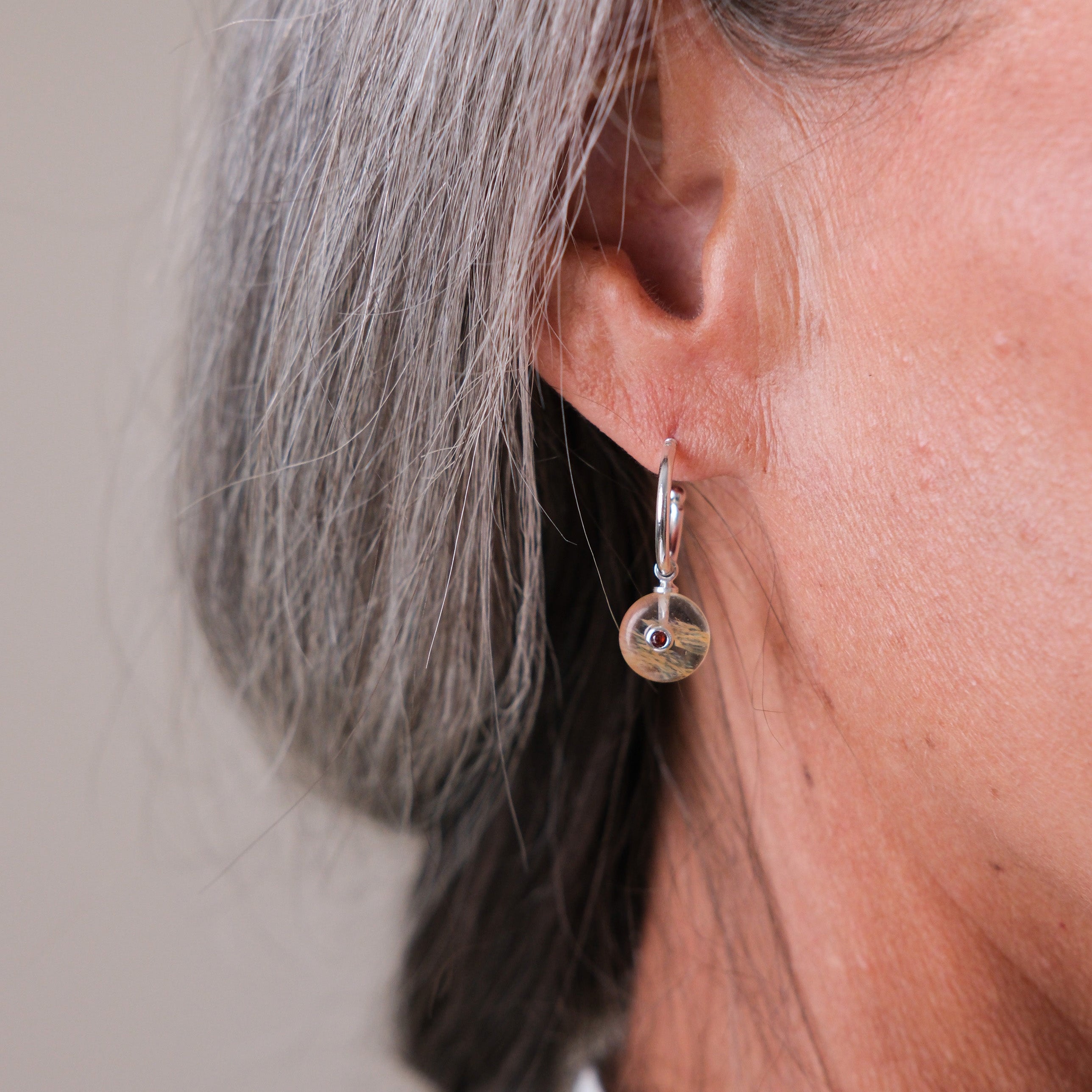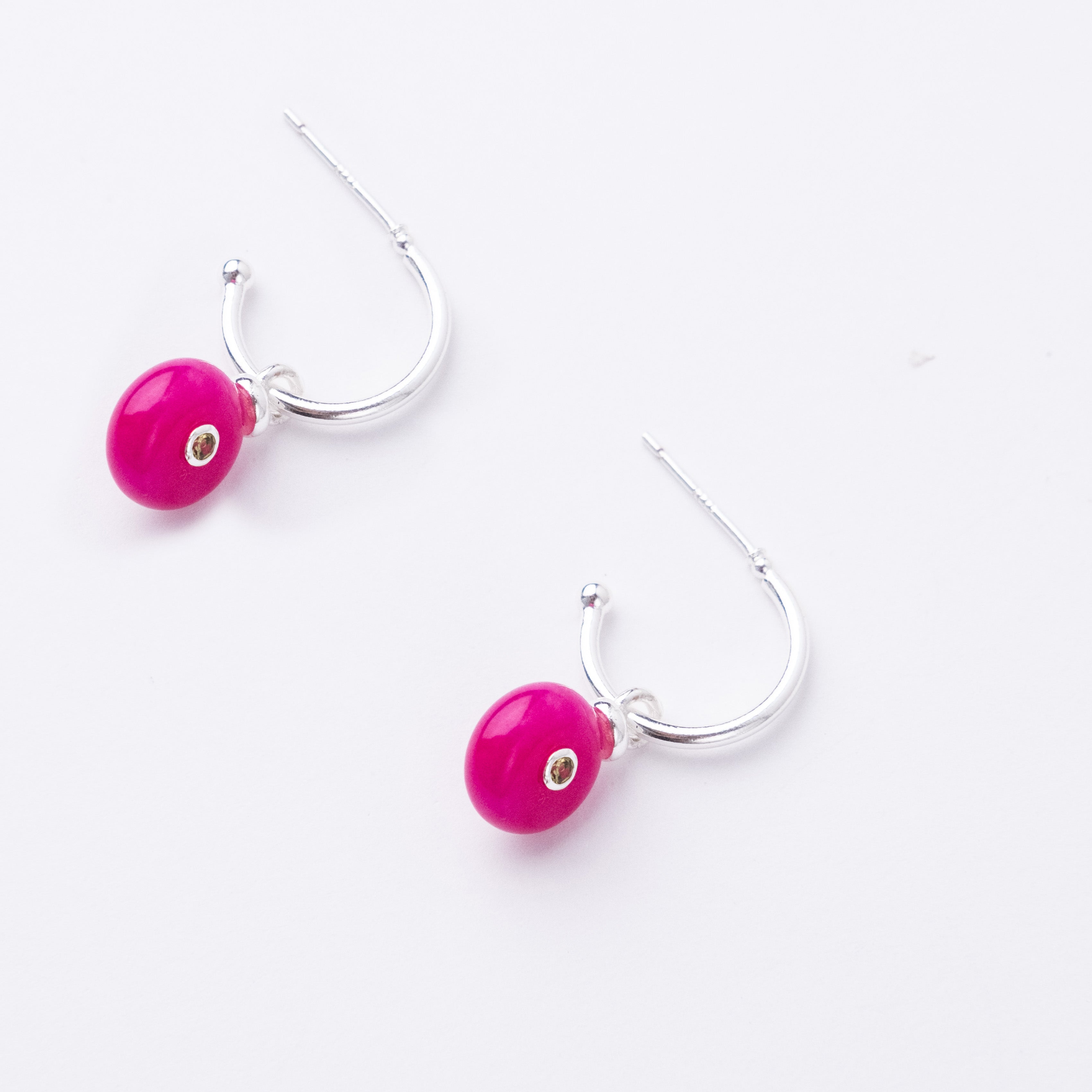 Silver Plated Huggies with a Semi-Precious Stone charms