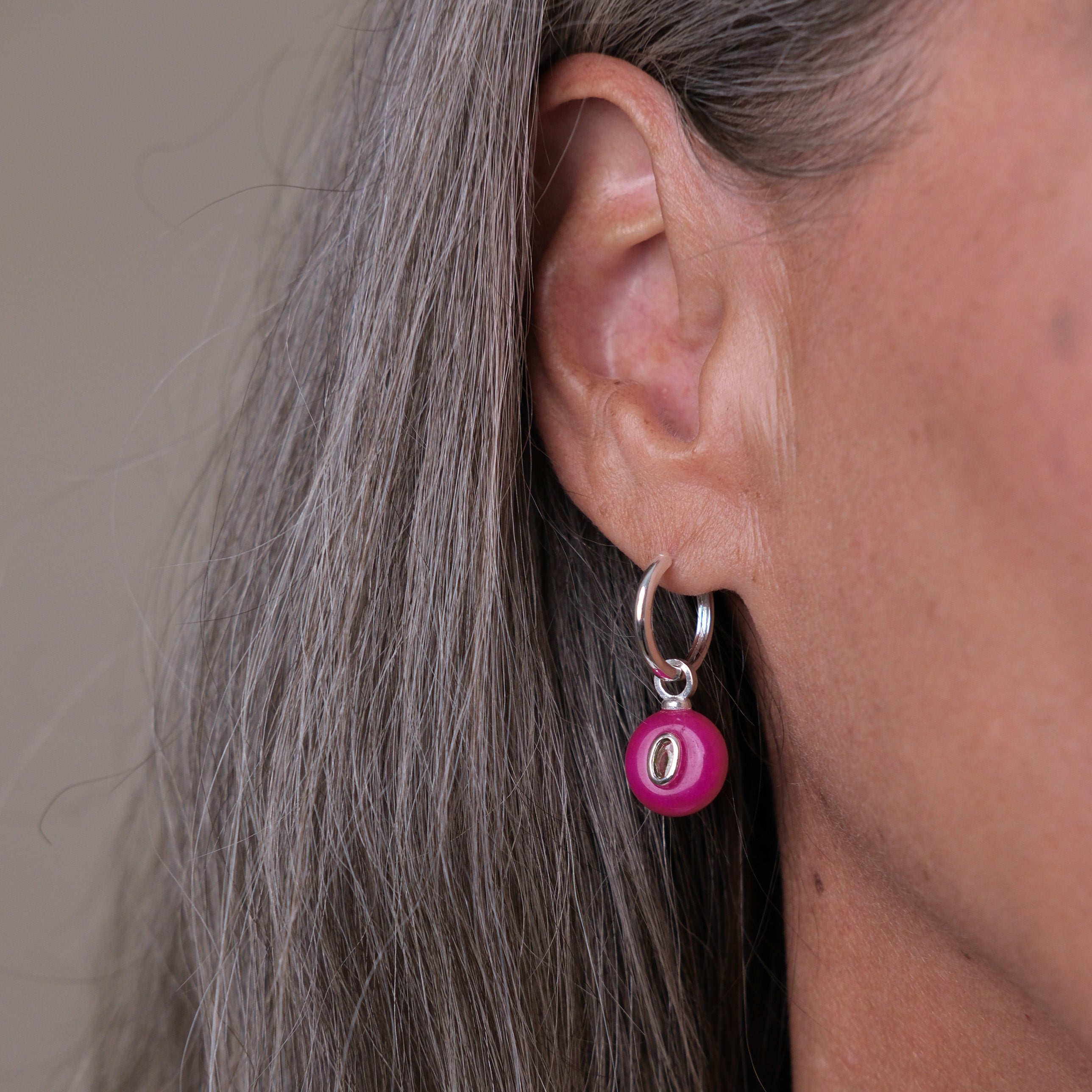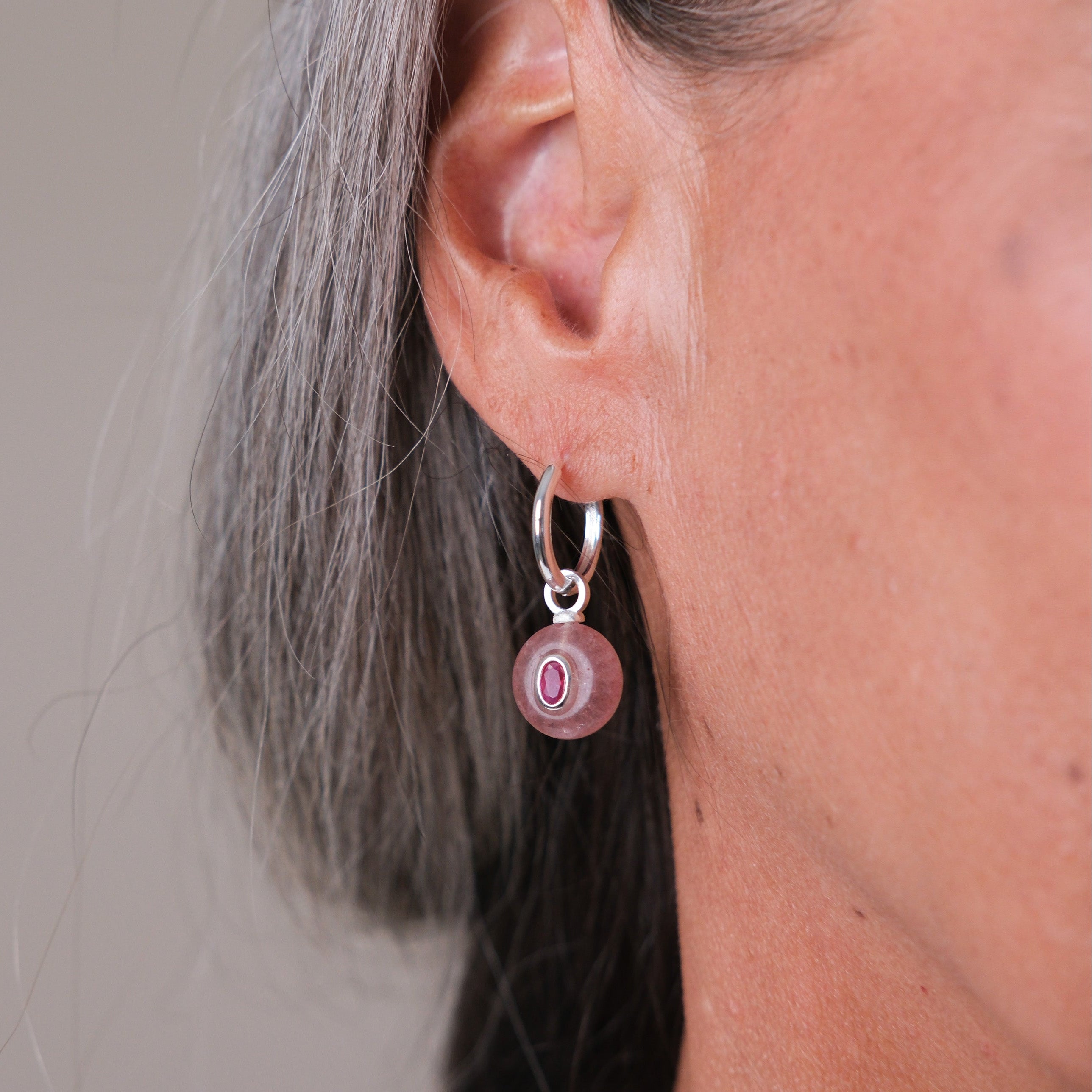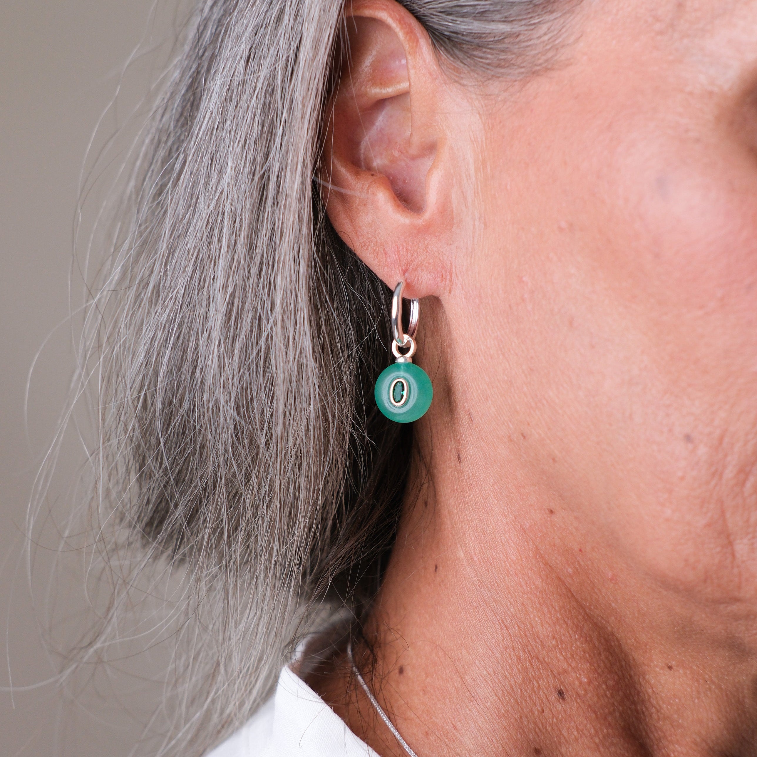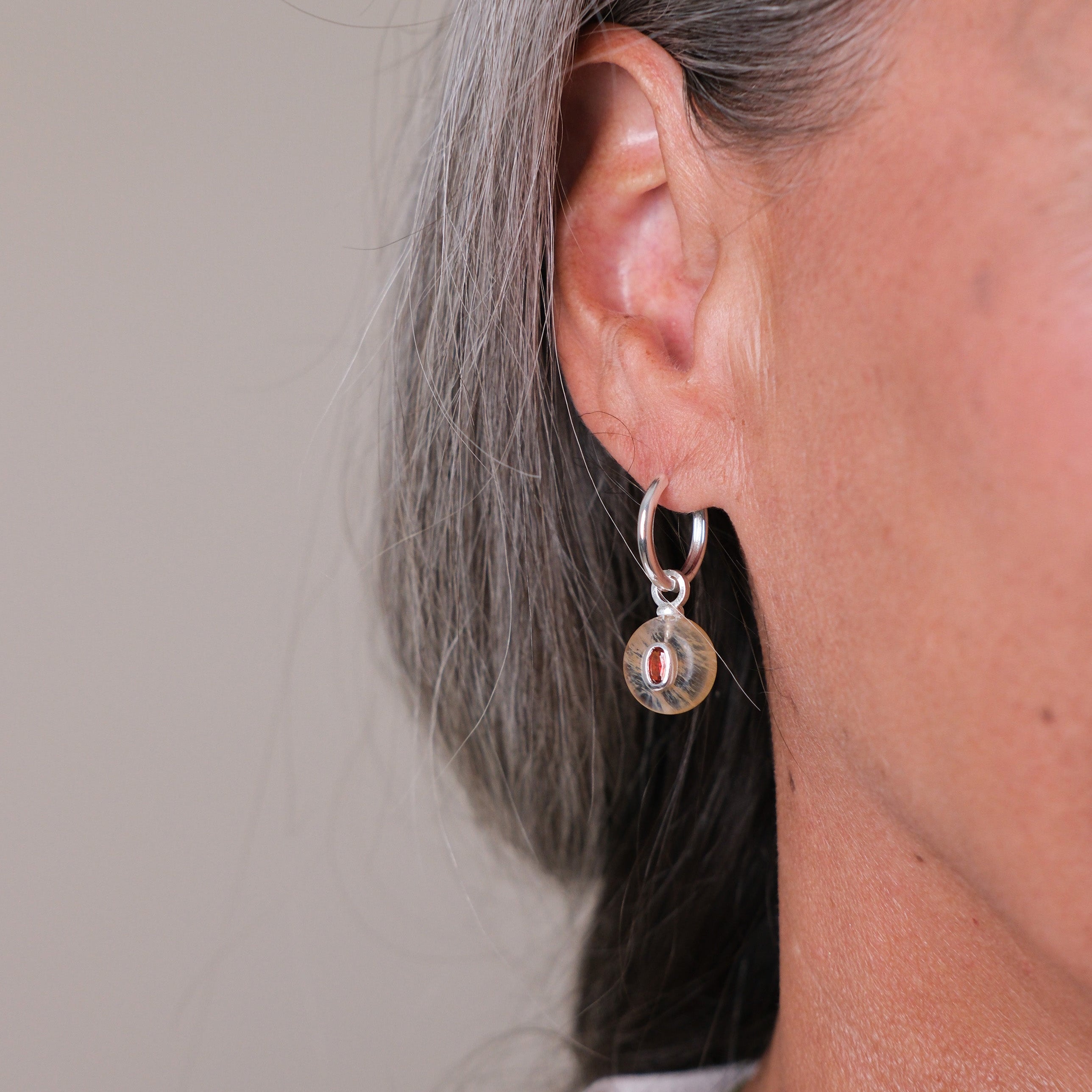 Silver Plated Huggie with a Semi-Precious Stone Charm