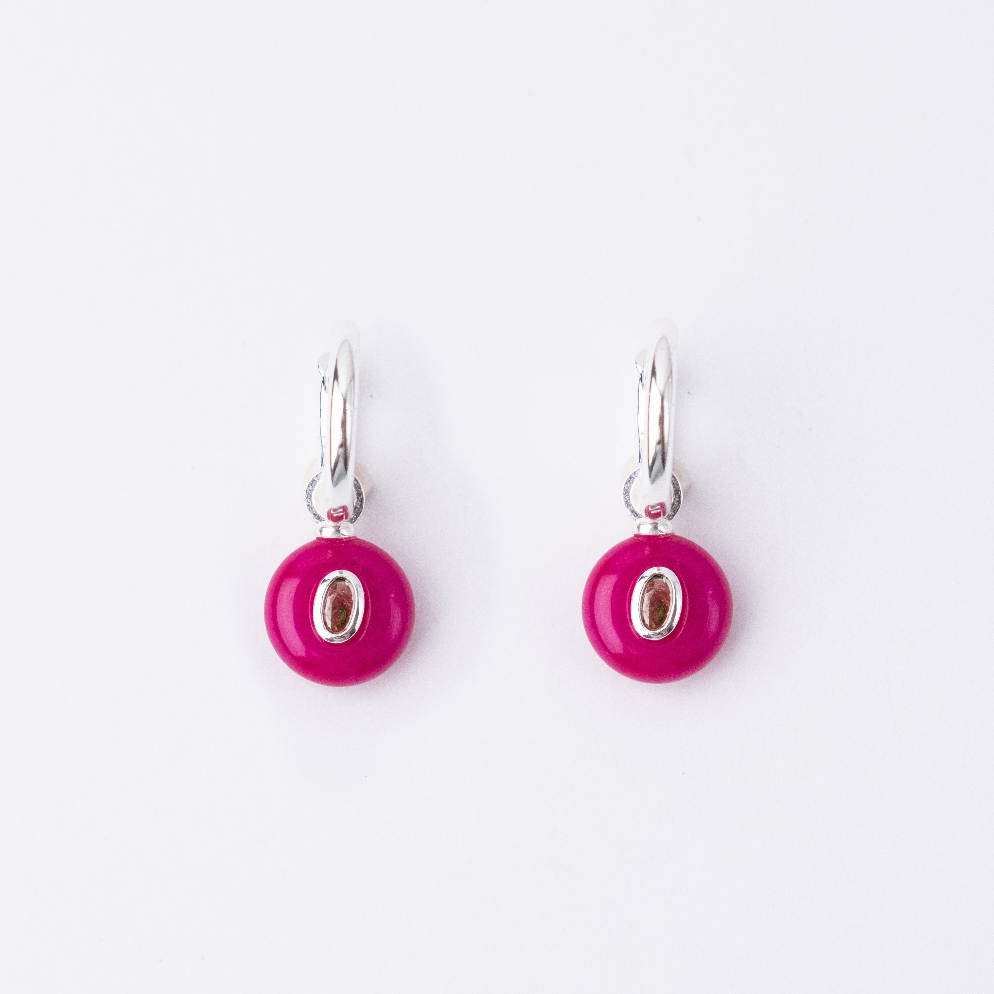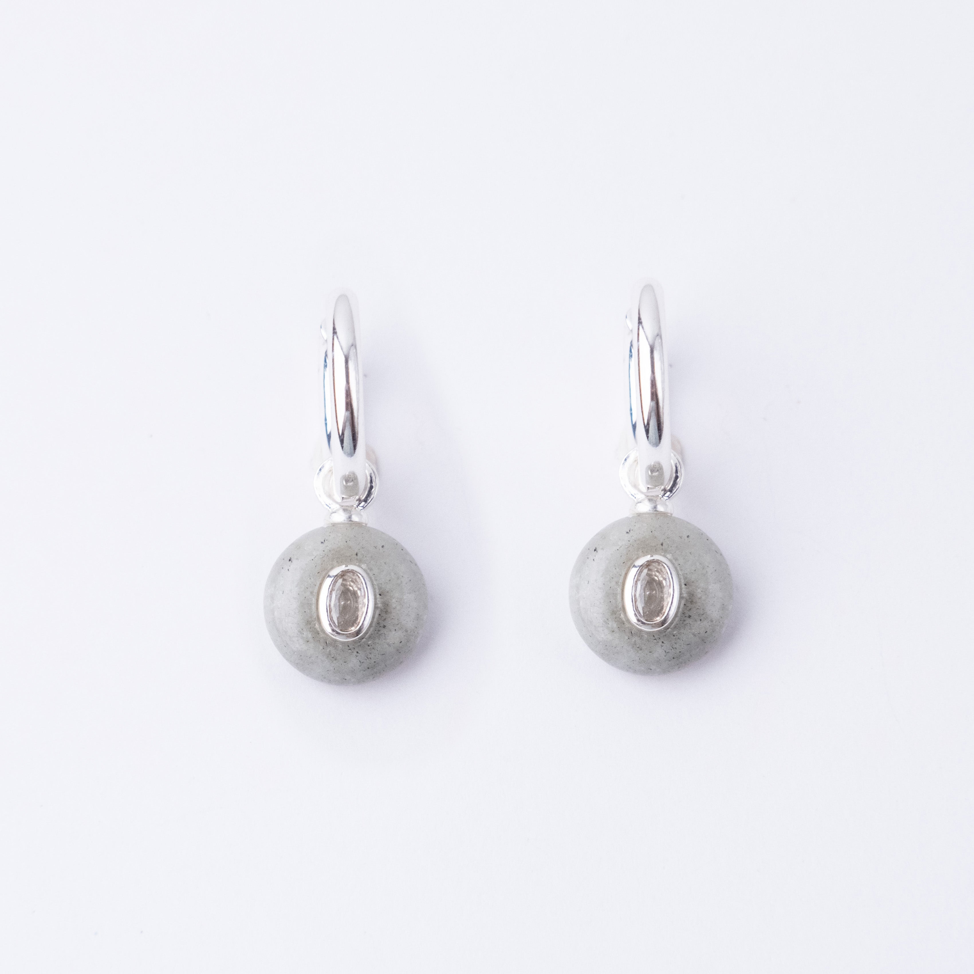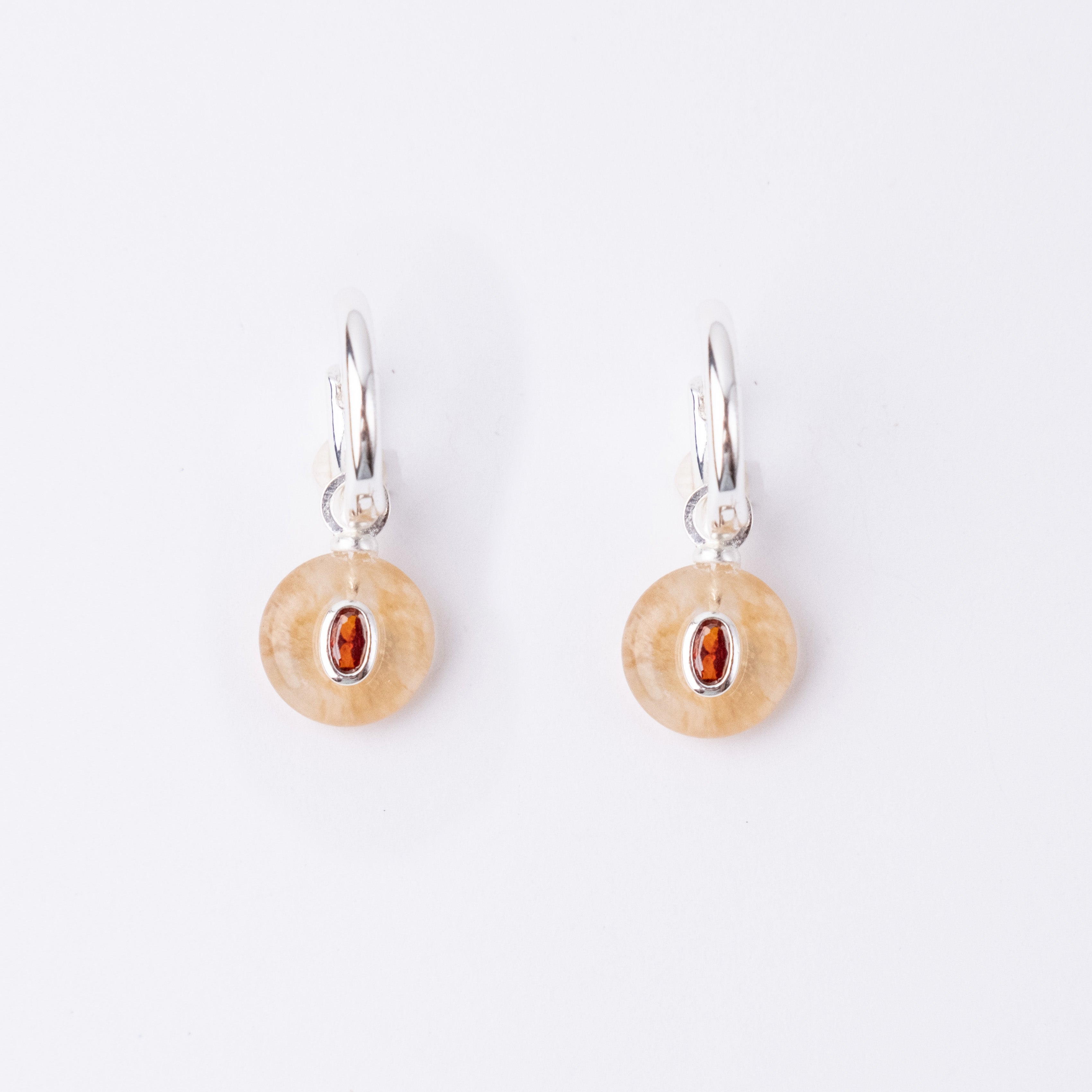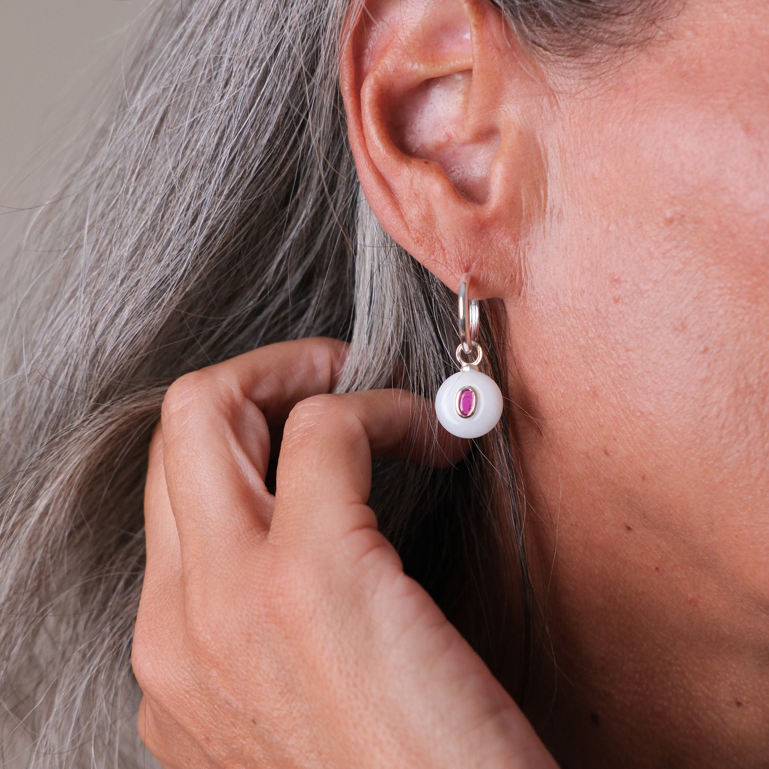 Silver Plated Huggie with a Semi-Precious Stone Charm