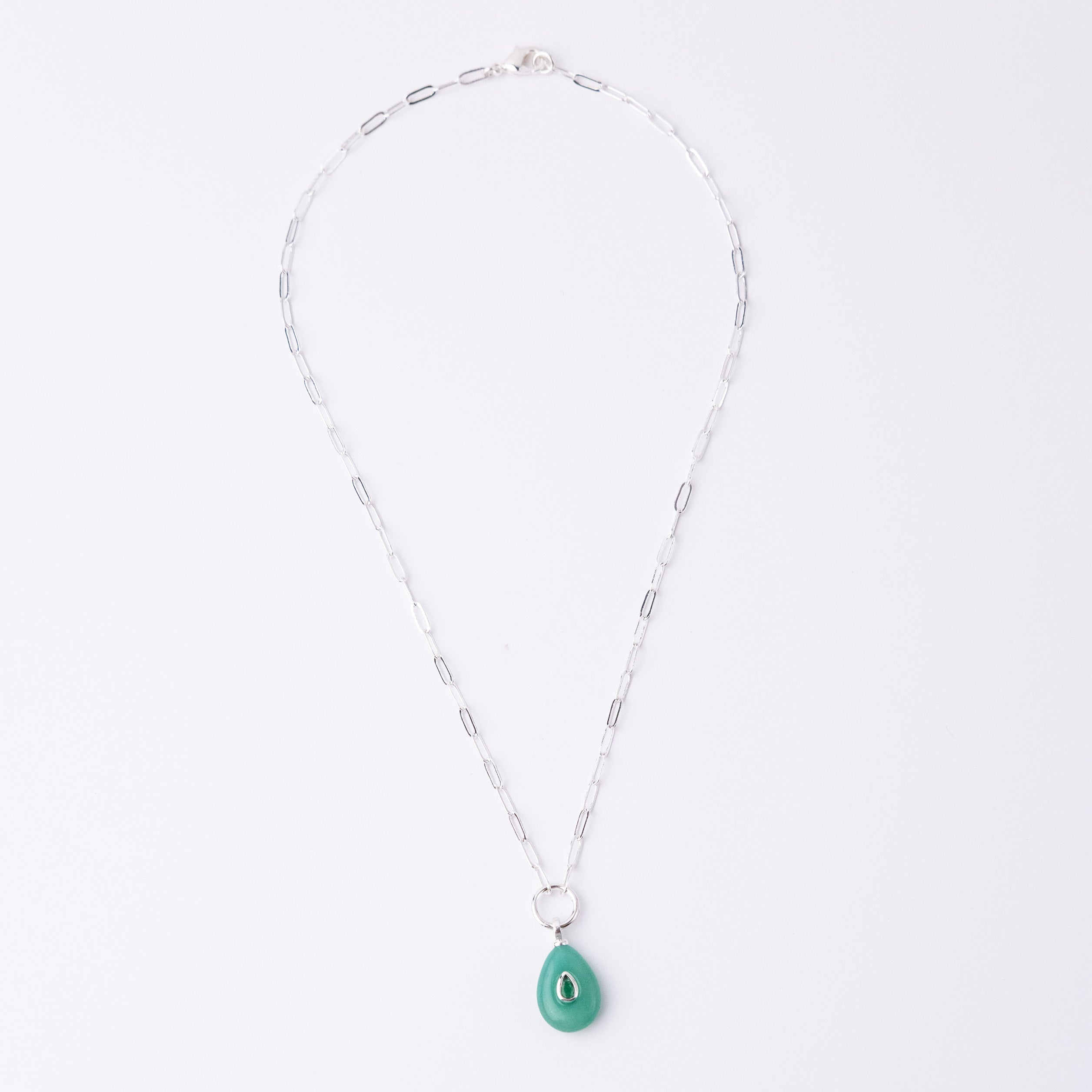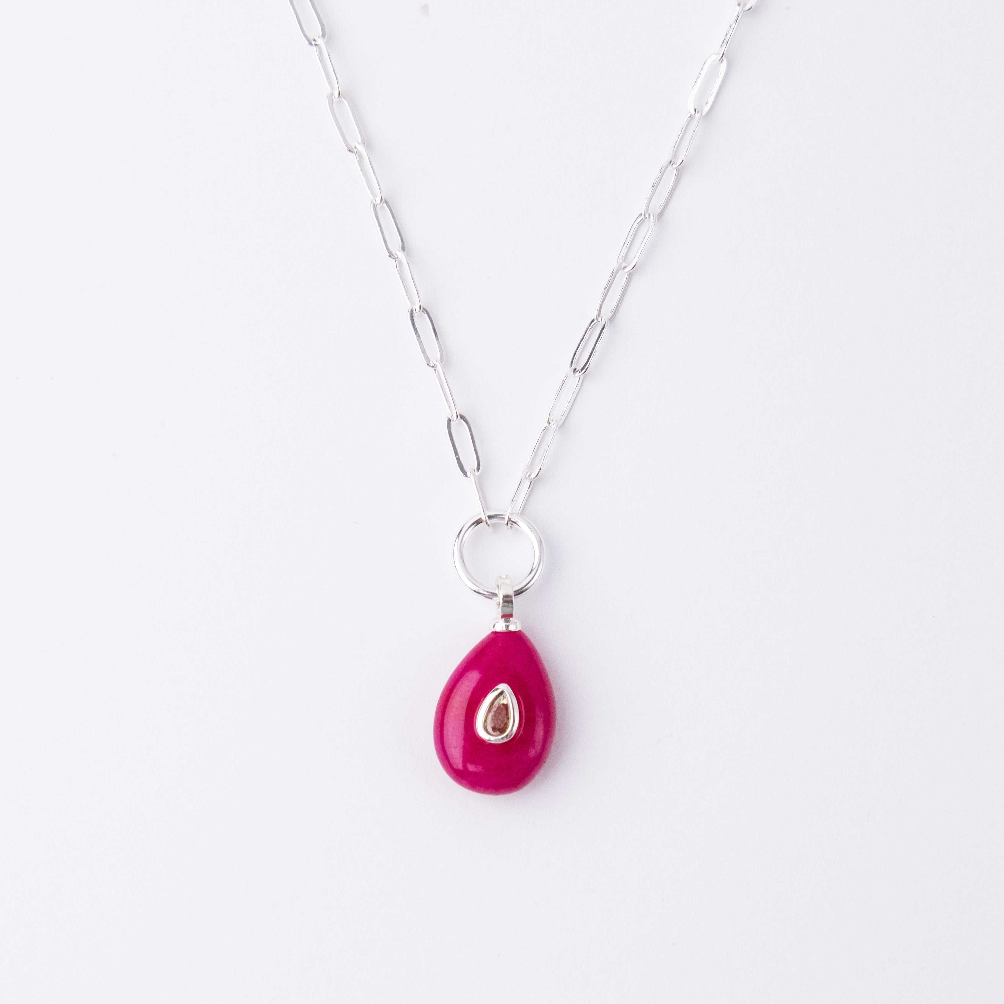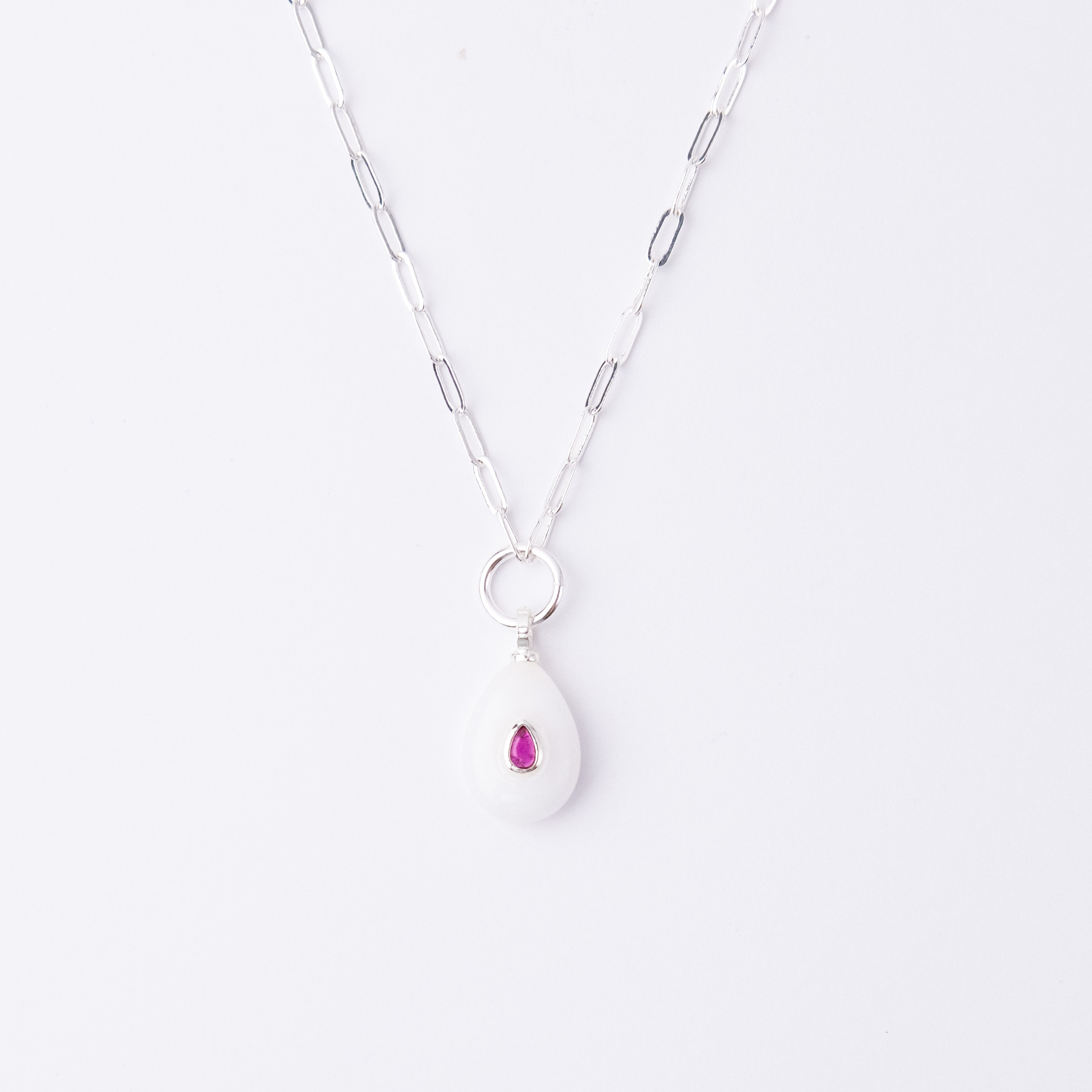 Silver Plated Chain with a Semi-Precious Stone Charm