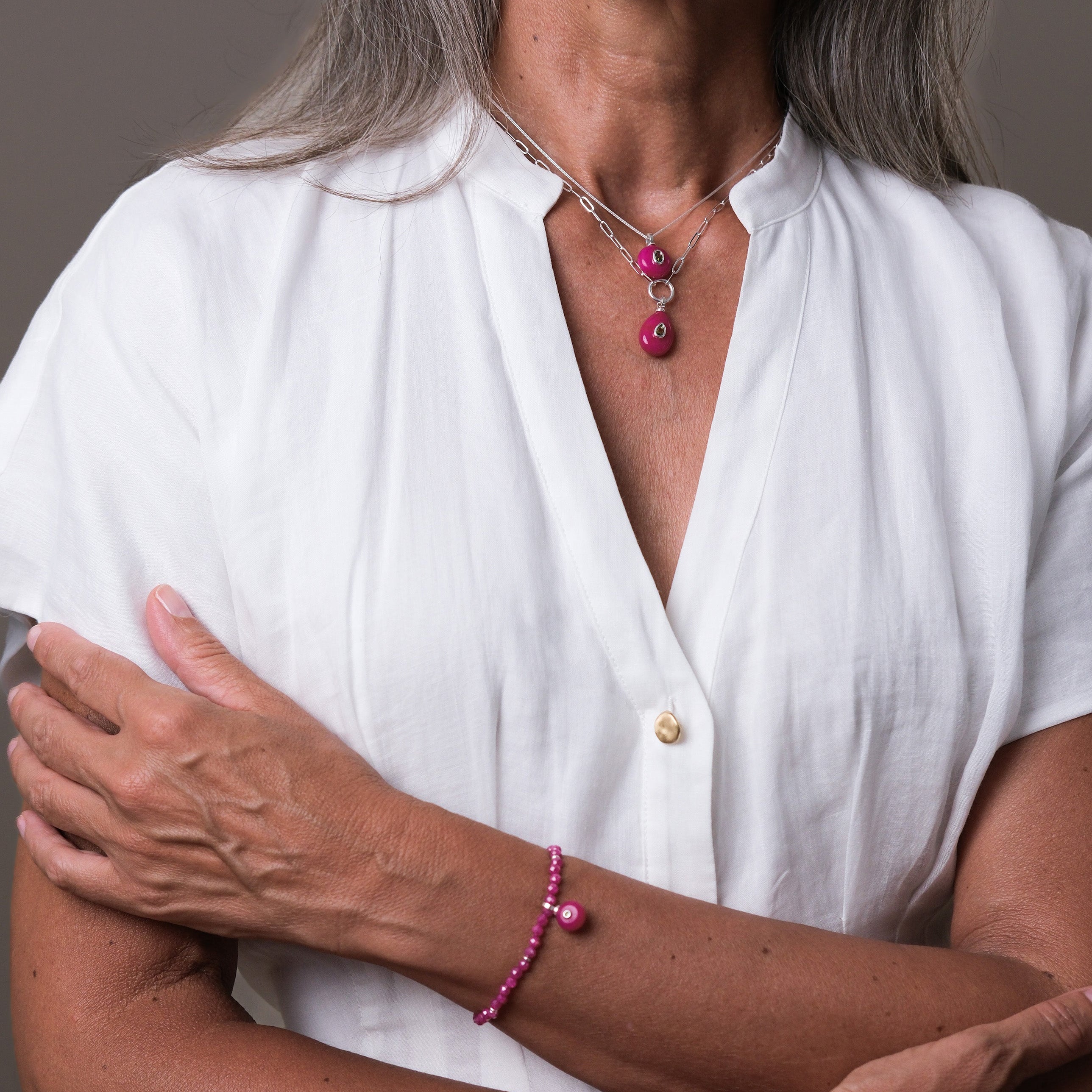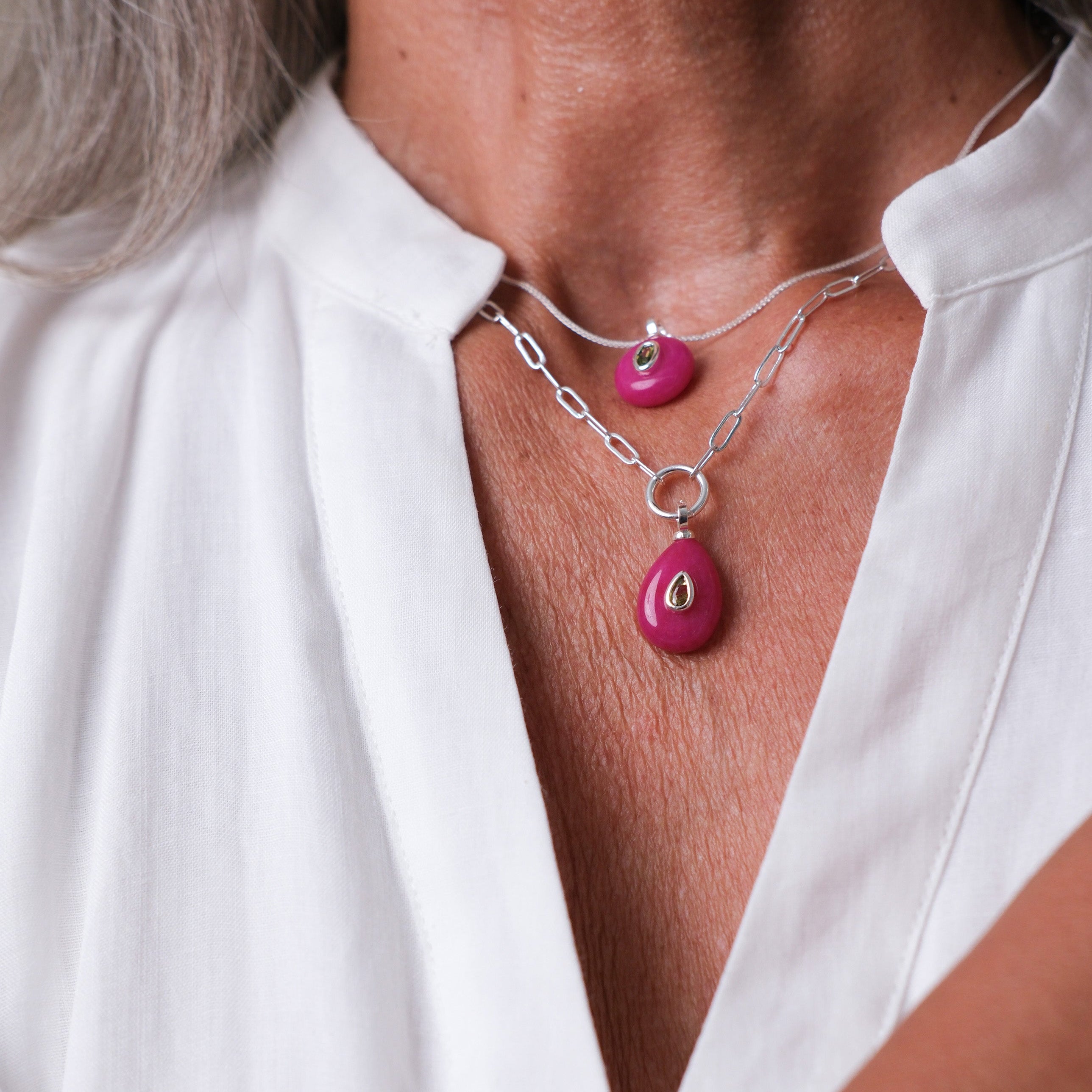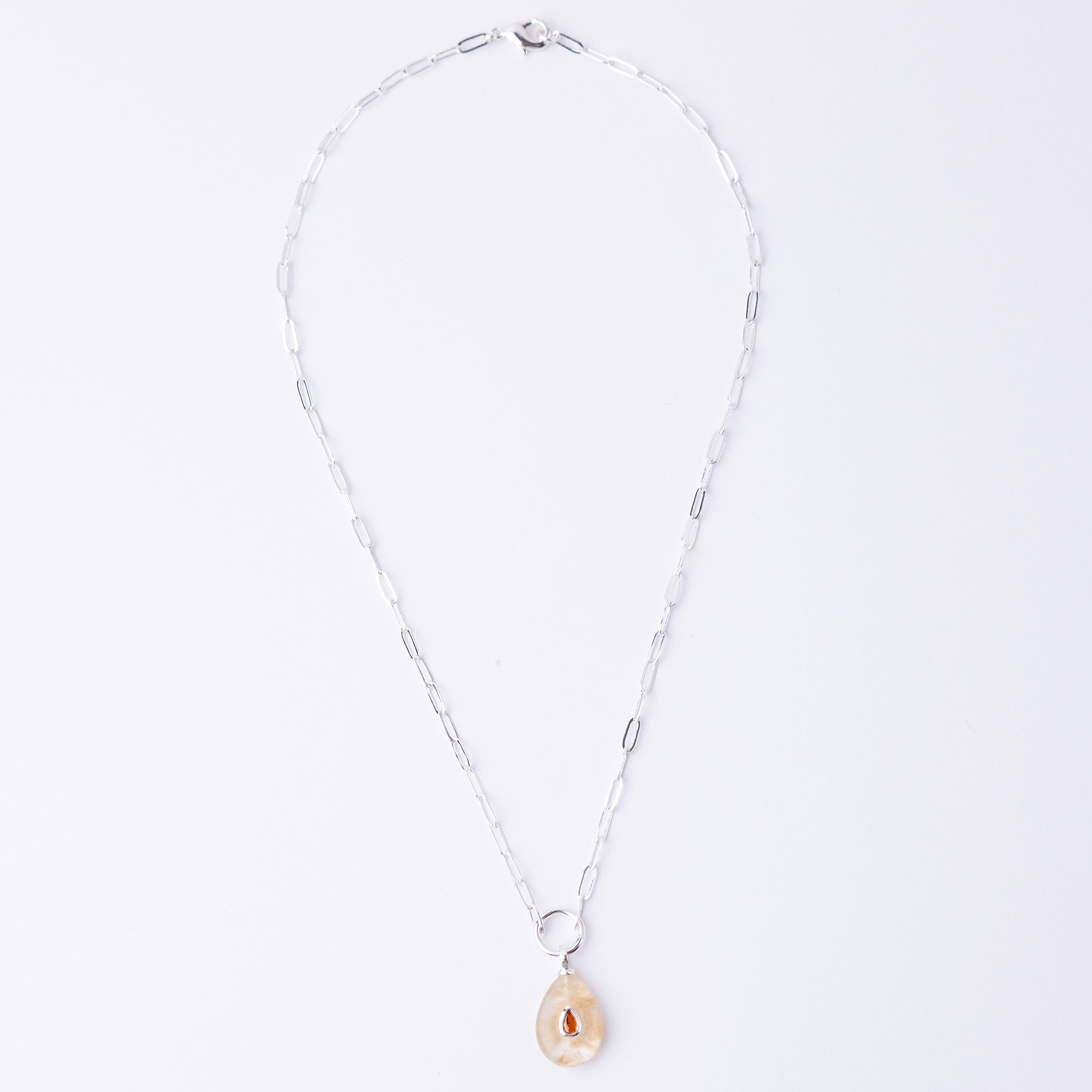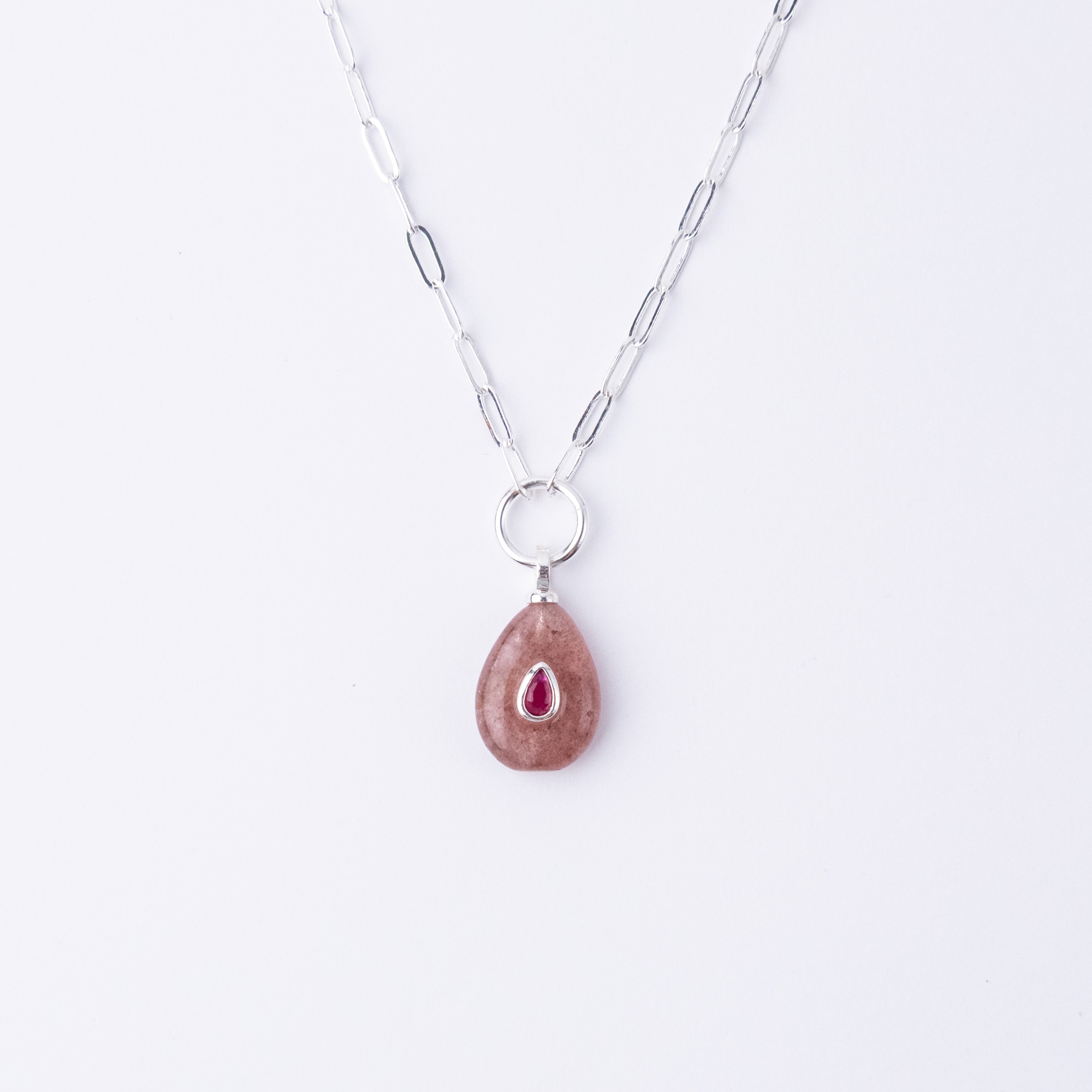 Silver Plated Chain with a Semi-Precious Stone Charm