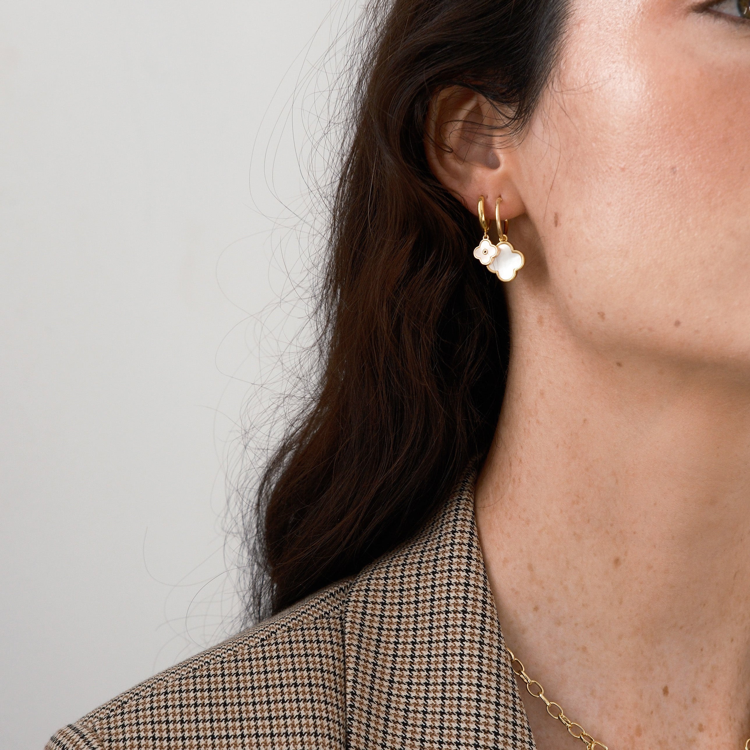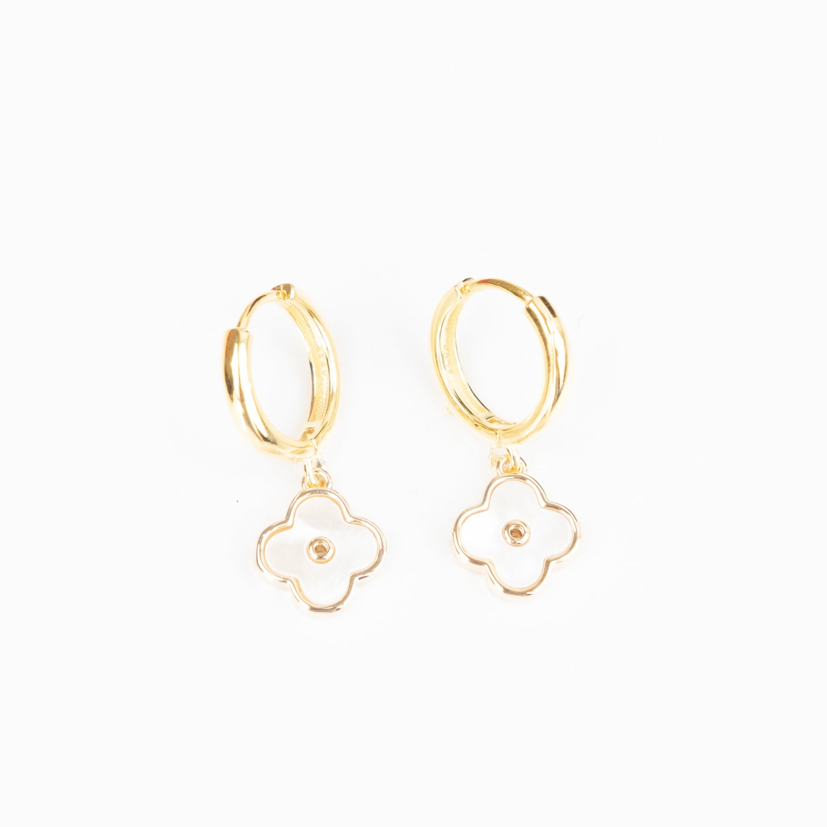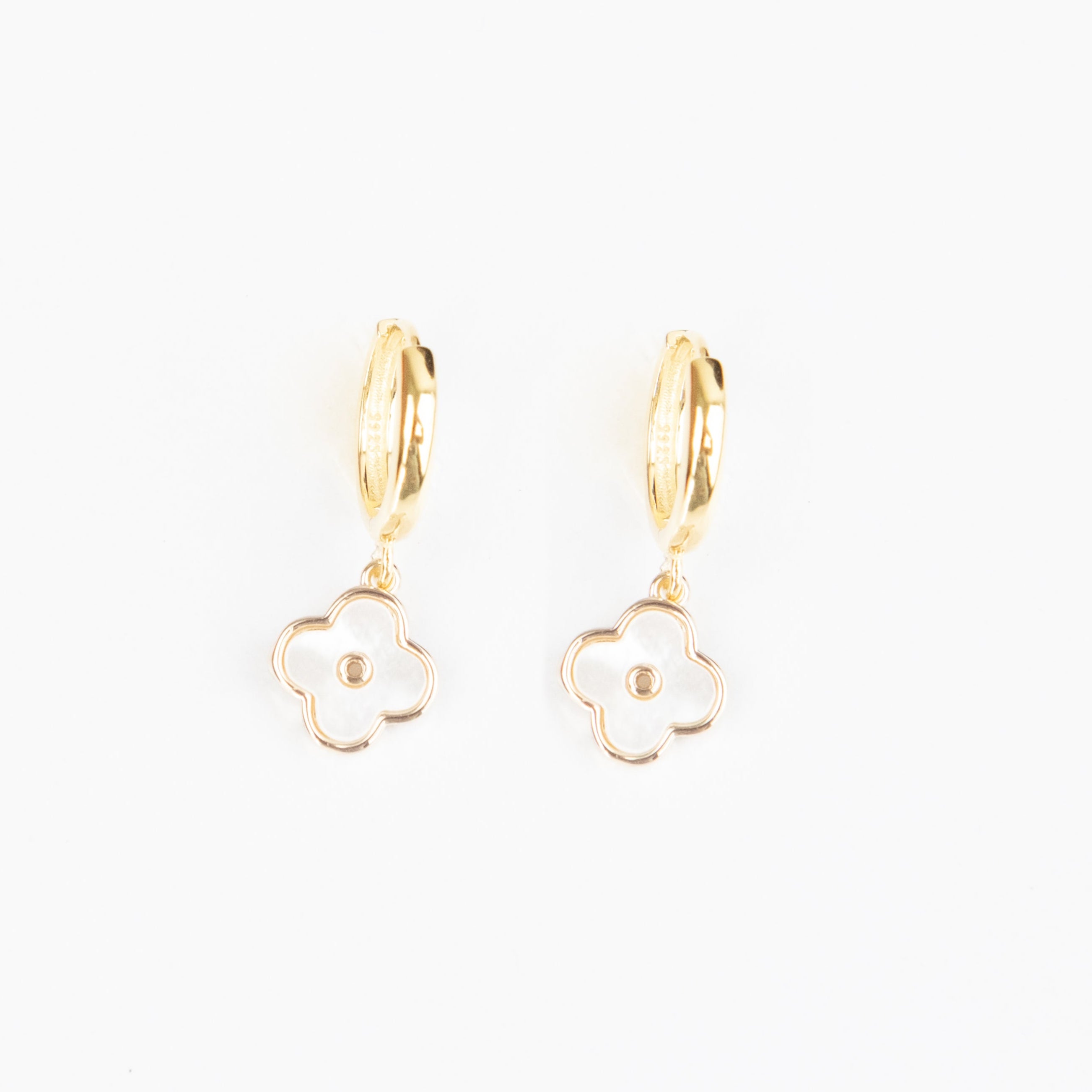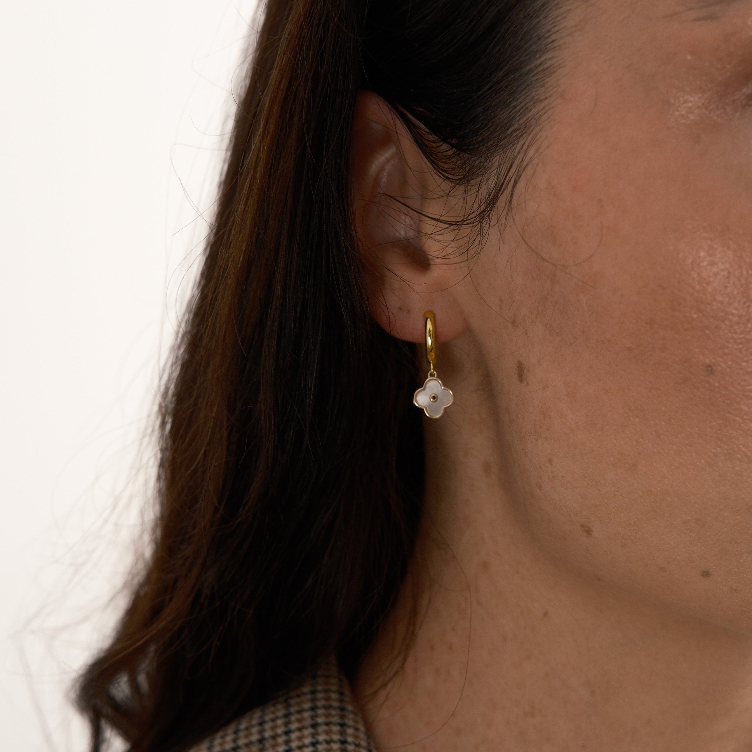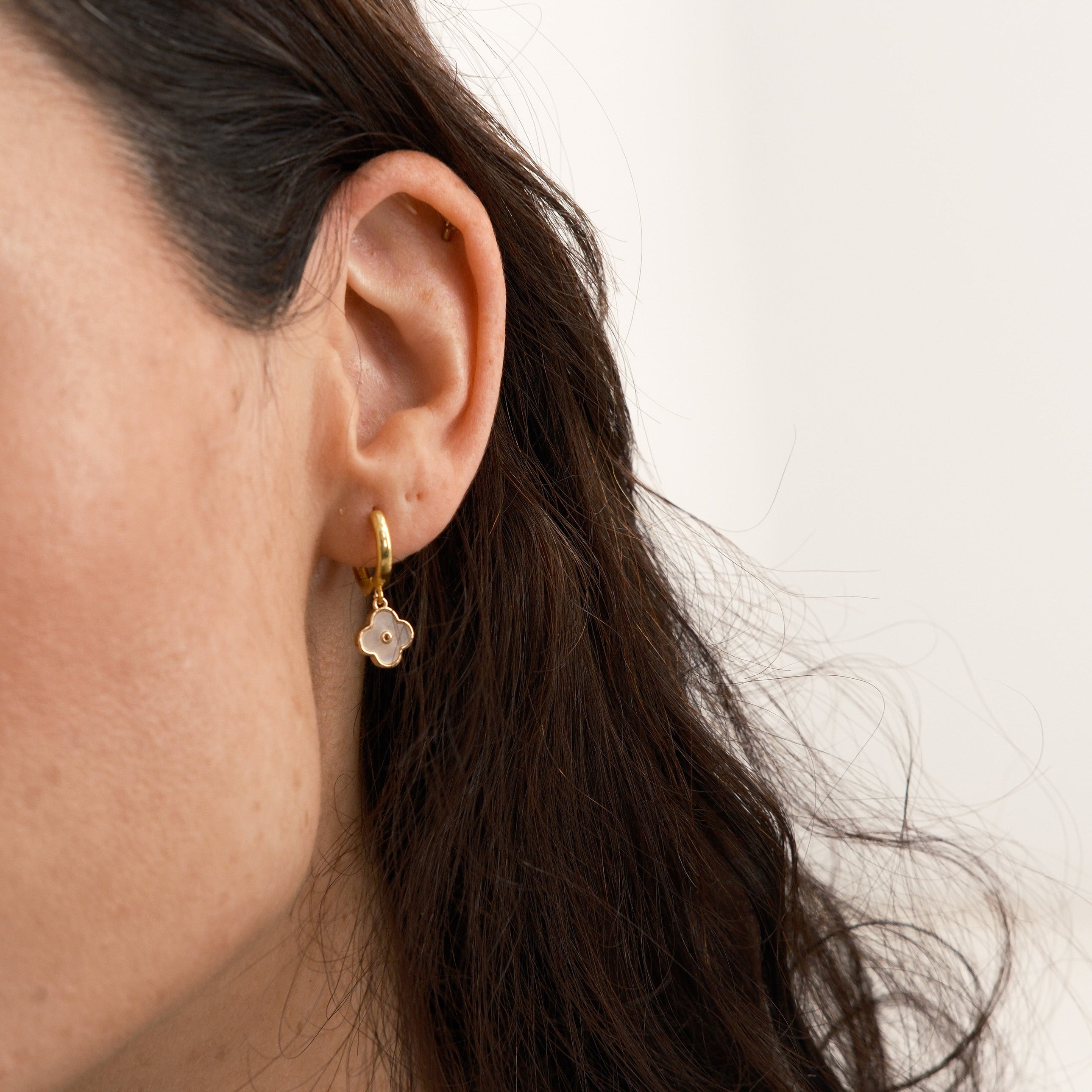 Gold Plated Sterling Silver Huggies with a Mother Of Pearl Fleur Charm