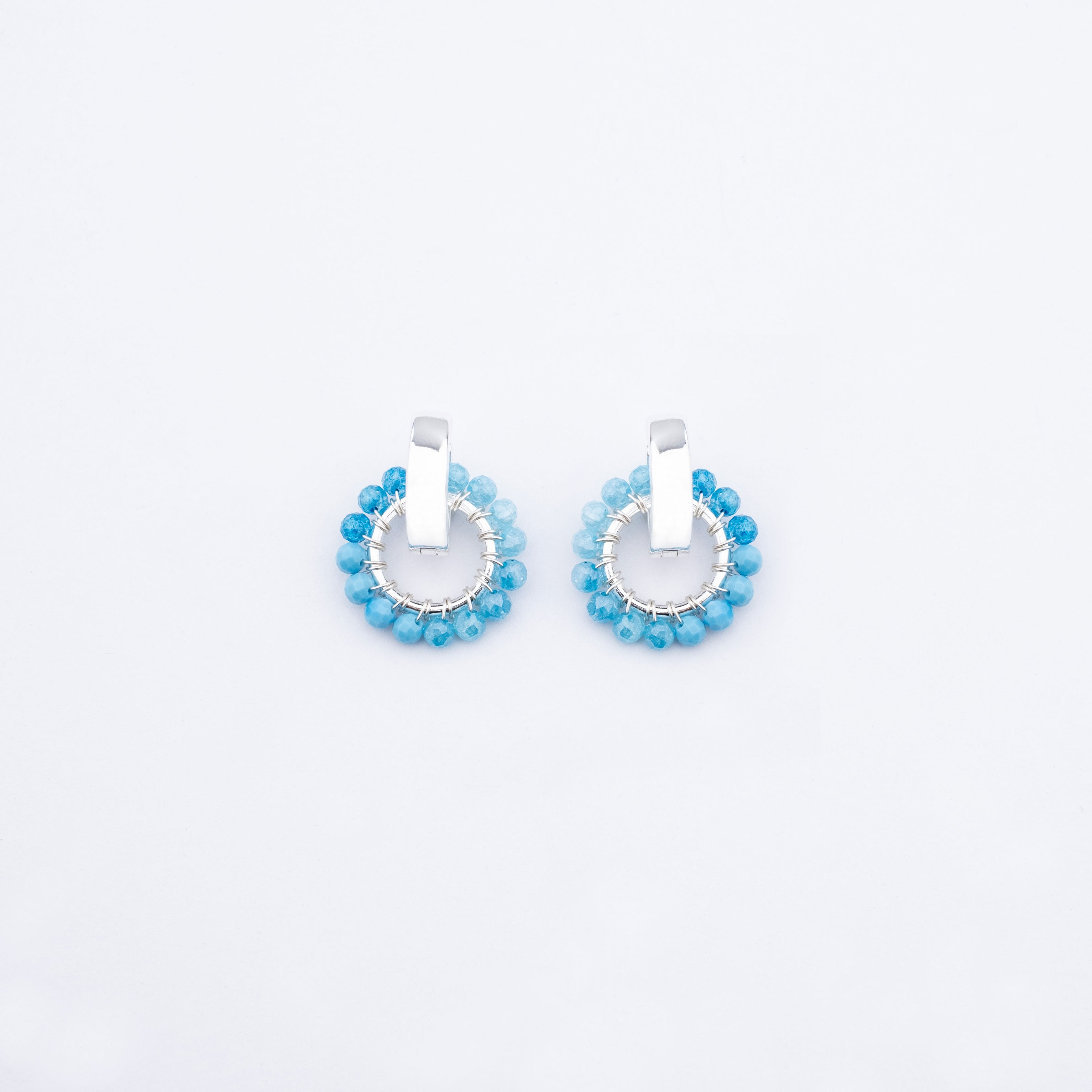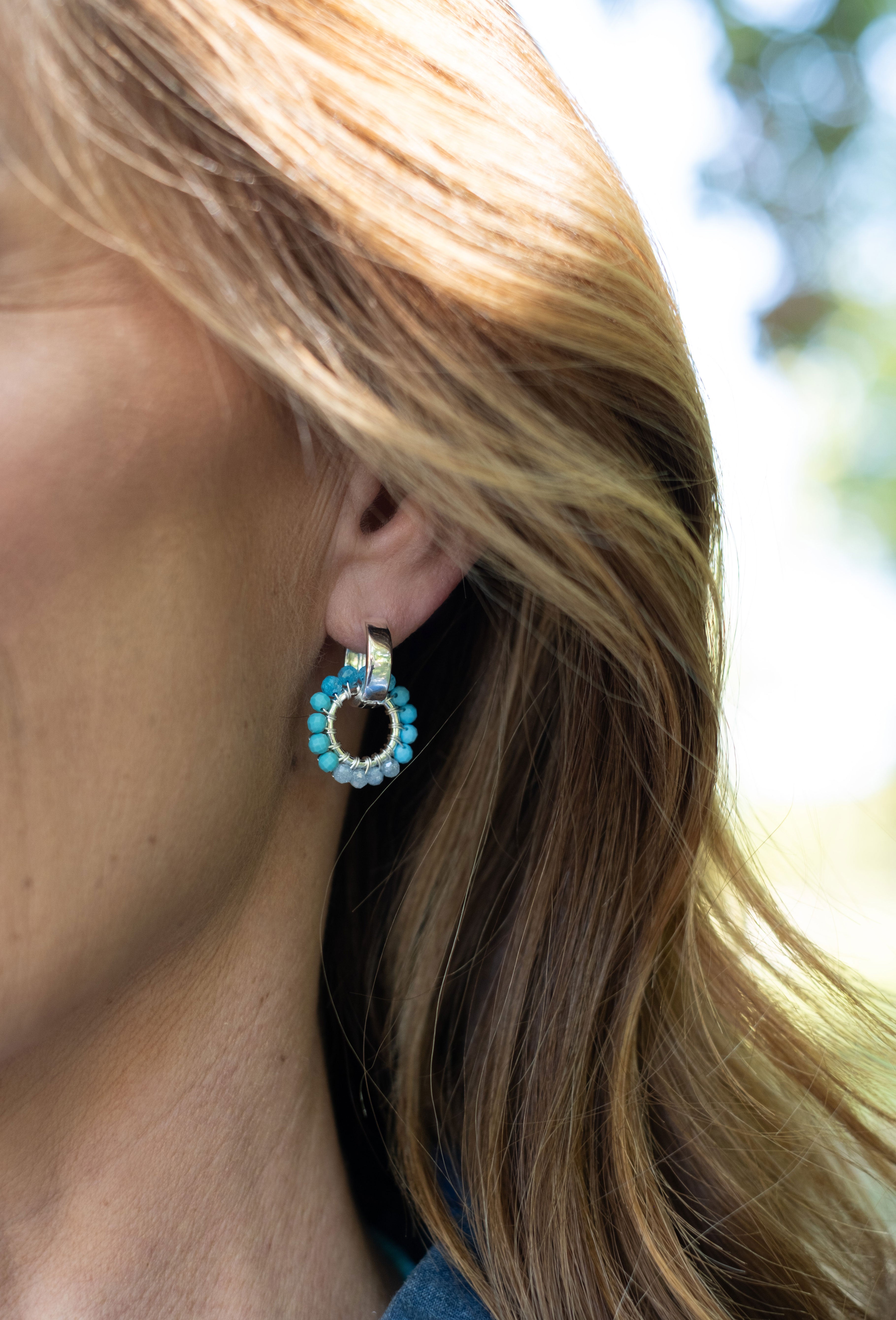 Blue Semi Precious Stone Ombre Earrings with Chunky Silver Huggie