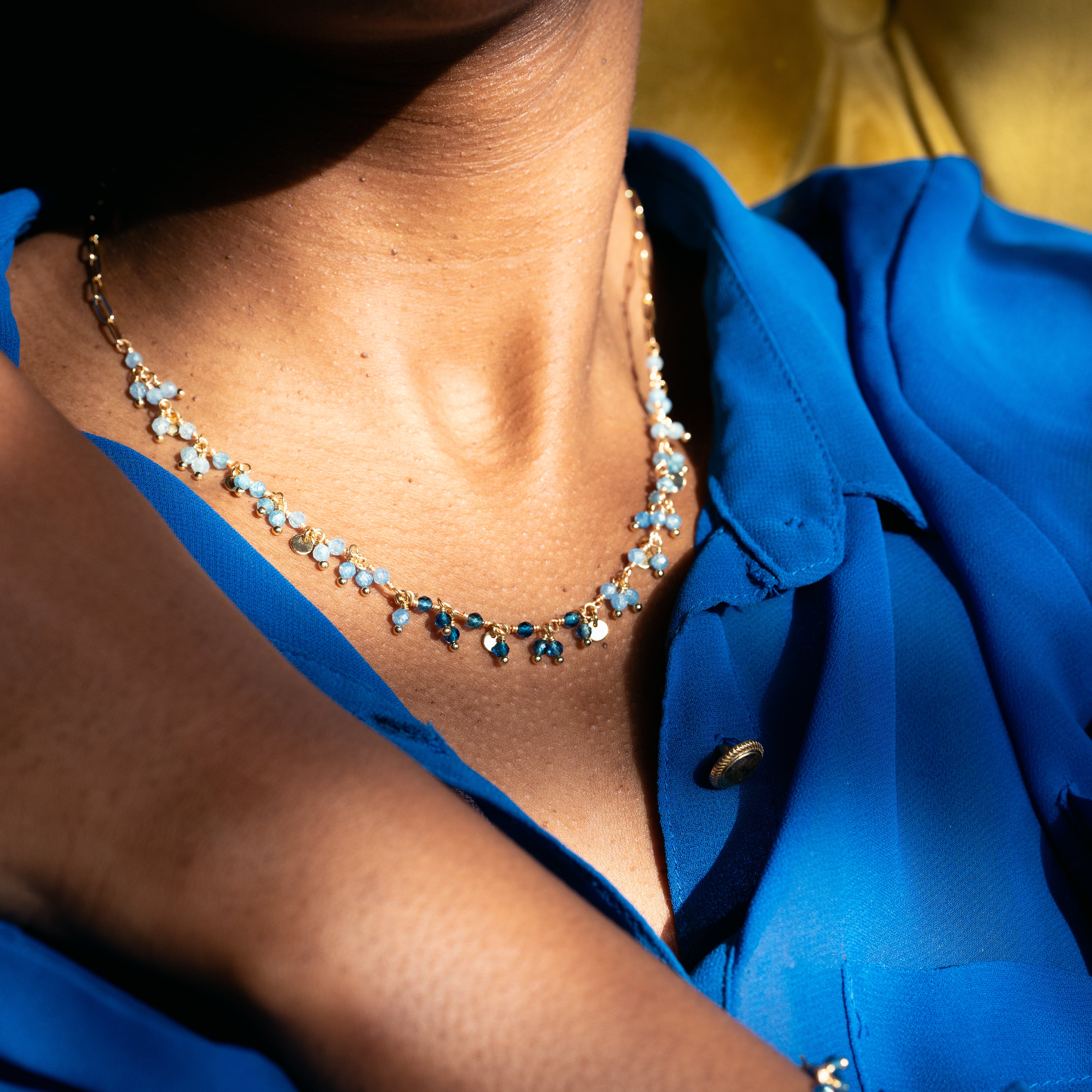 Clusters of Faceted Blue Topaz on a hand wrapped chain (Shades Of Blue)