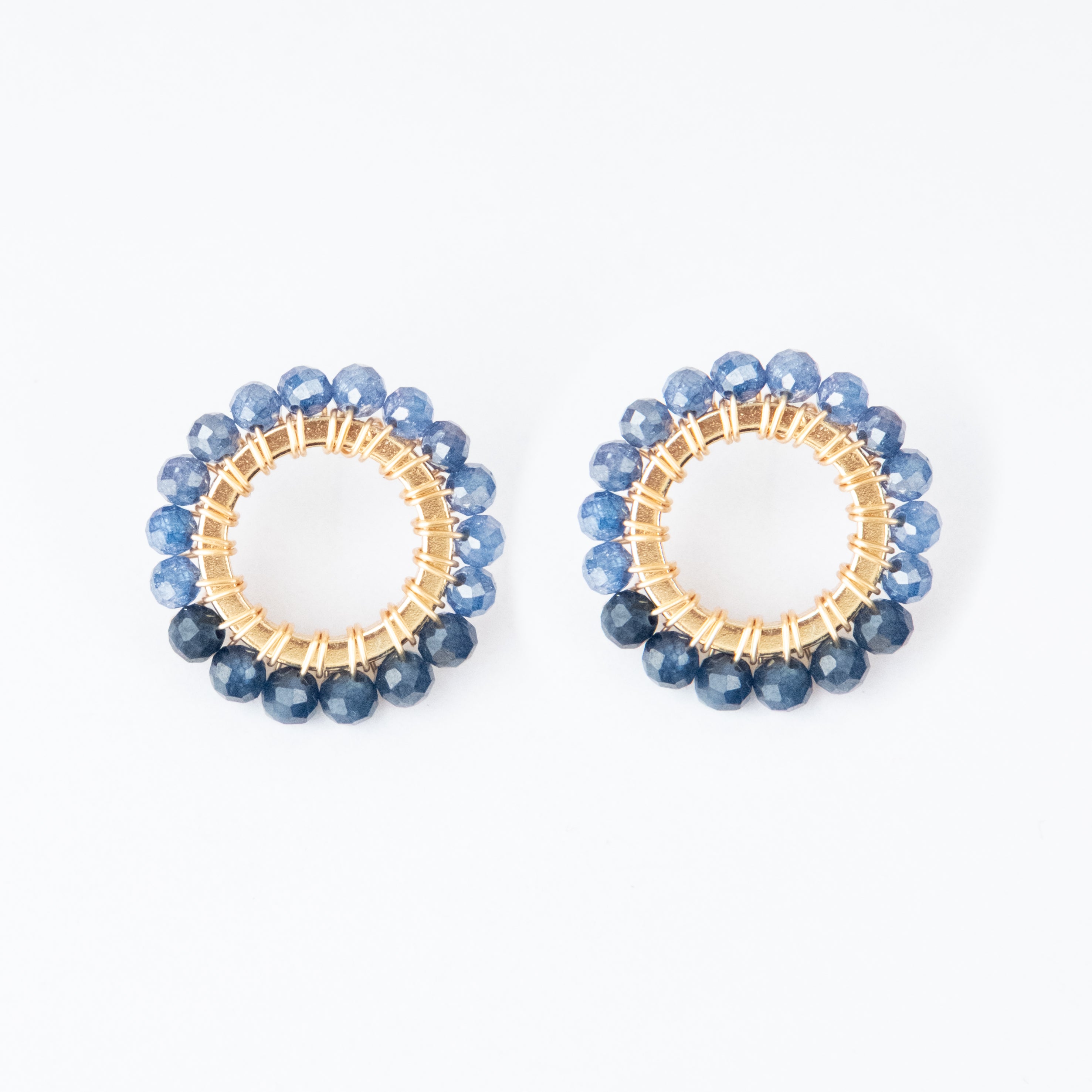 Iolite Gemstones handwoven onto Gold Plated circle studs